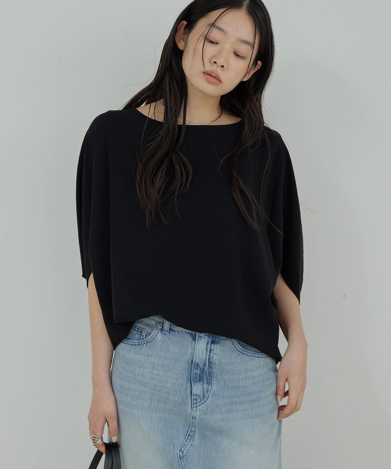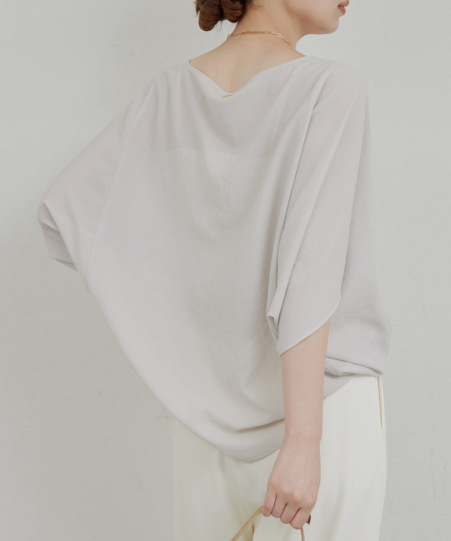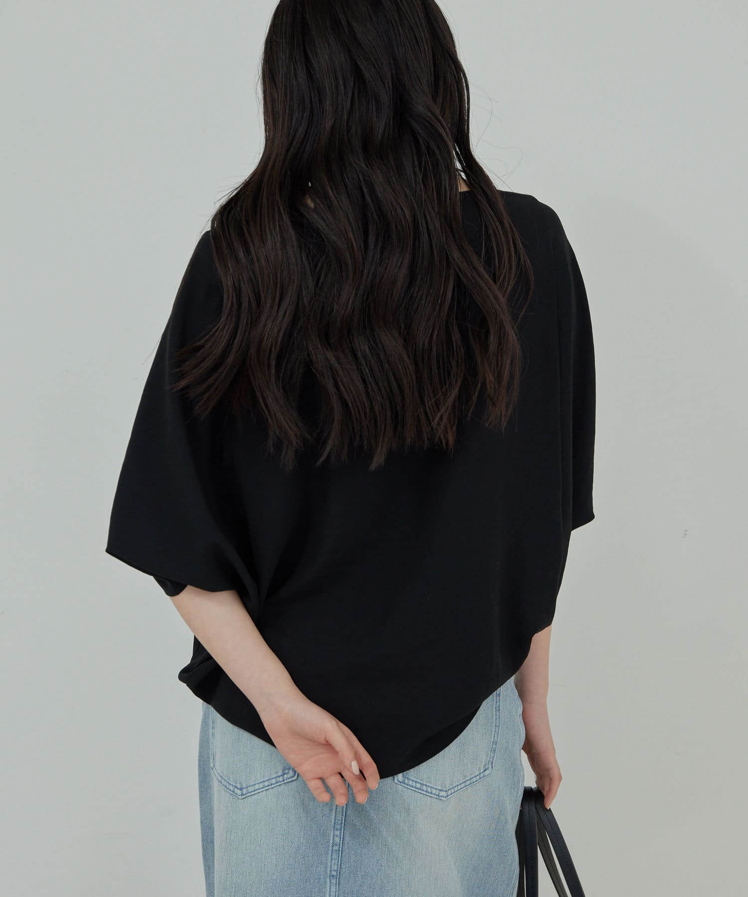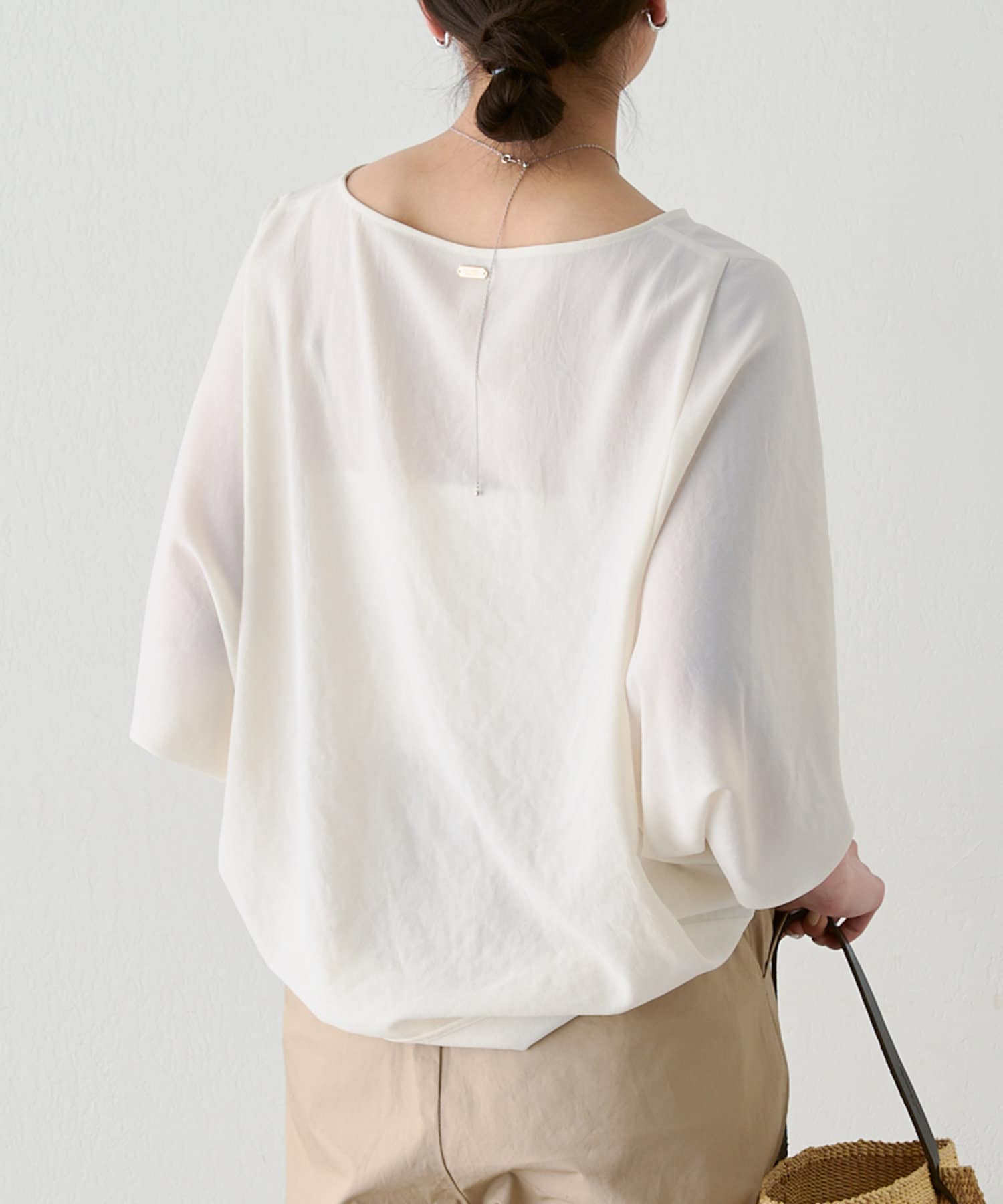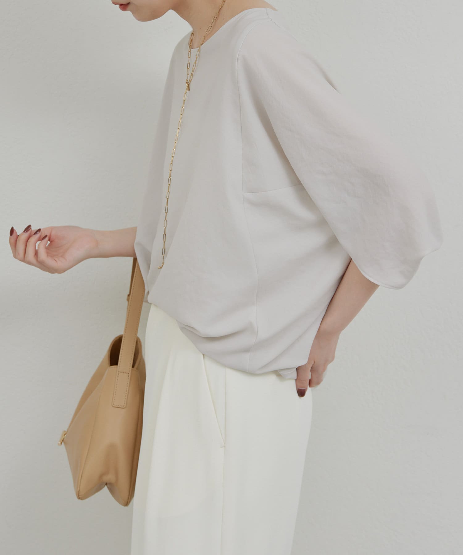 ●二の腕と肘をカバーする五分丈のドルマンスリーブ。