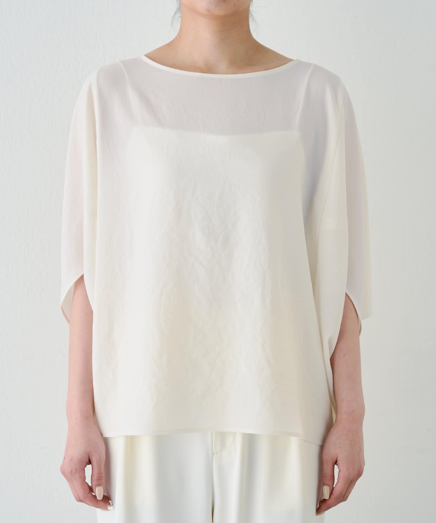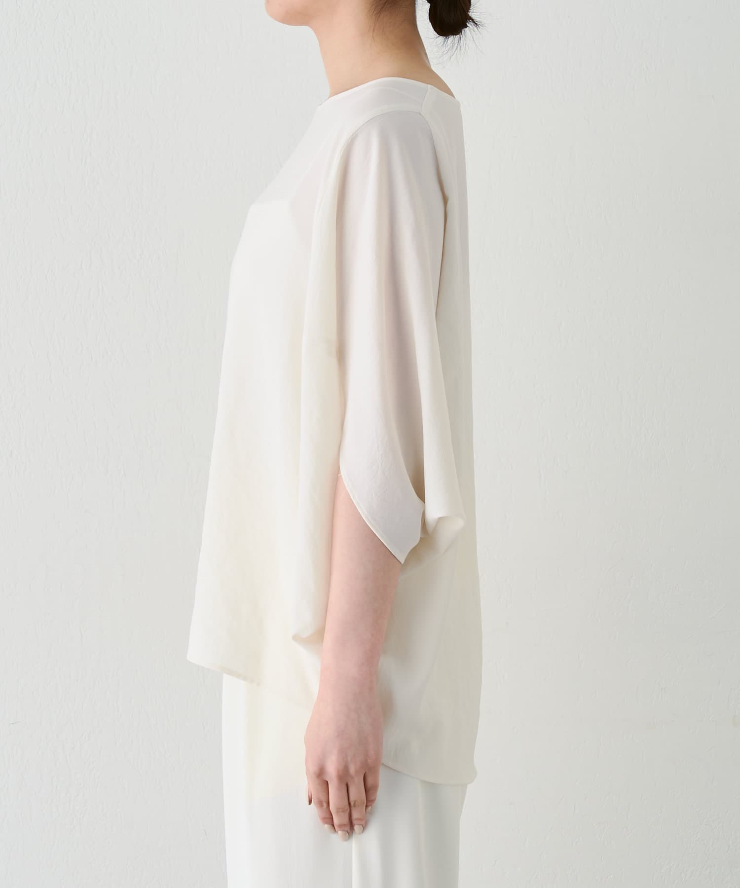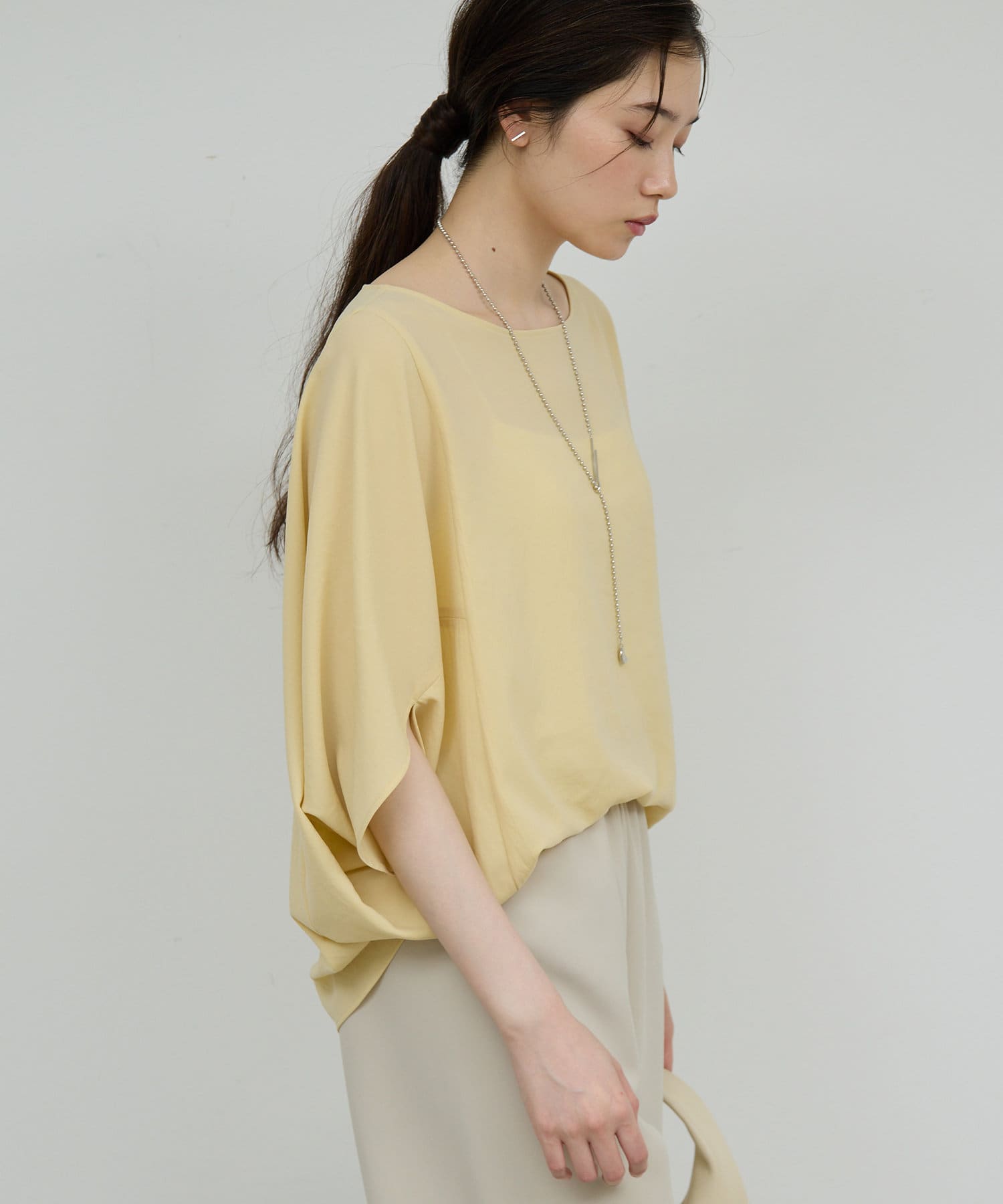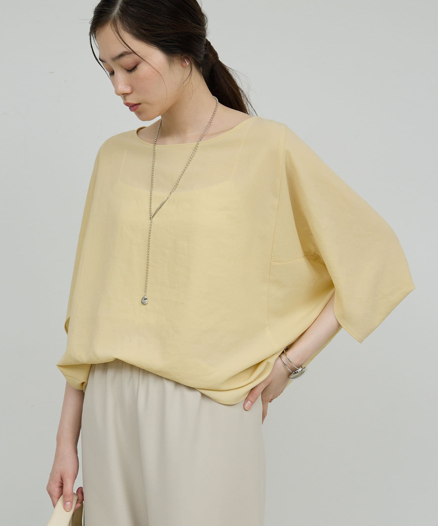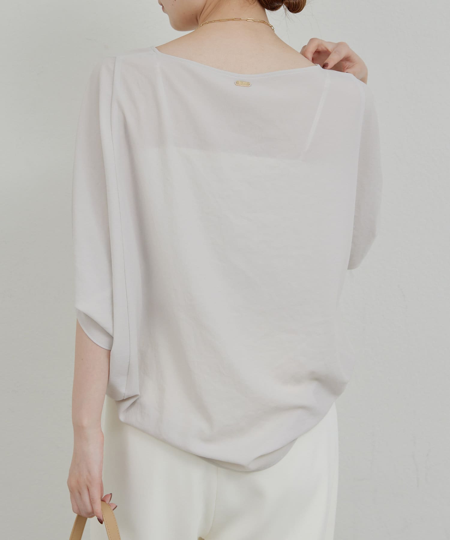 ●二の腕と肘をカバーする五分丈のドルマンスリーブ。