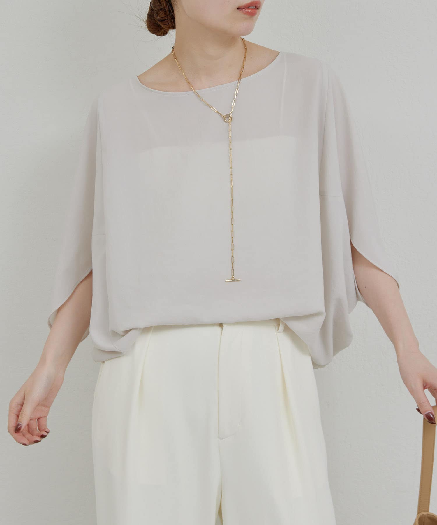●スリットのようなデザインの袖口は、着用するとアシンメトリー風で上品な見え感に。