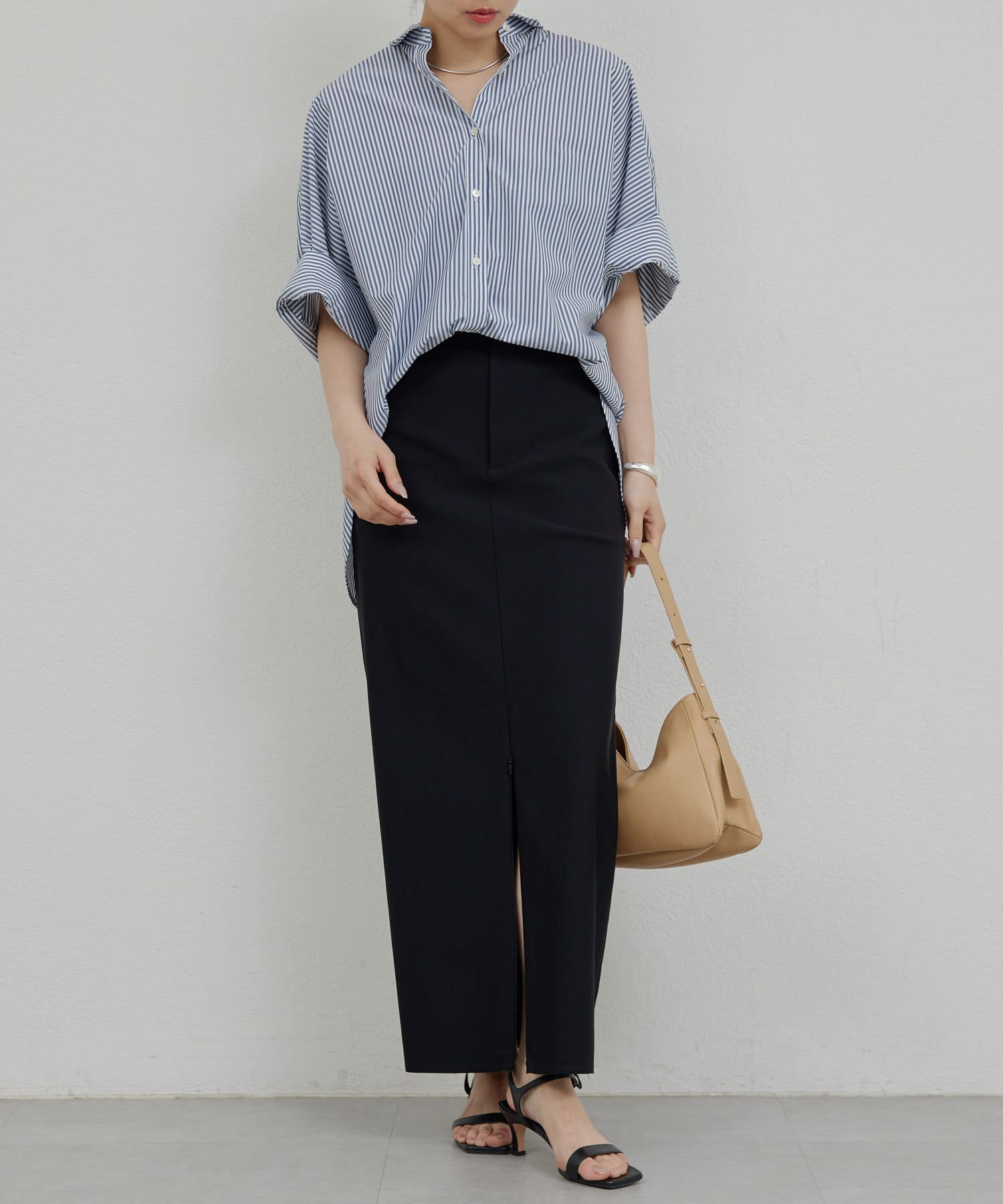 ●前後差をつけたスリット入りの裾デザインが抜け感をプラス。