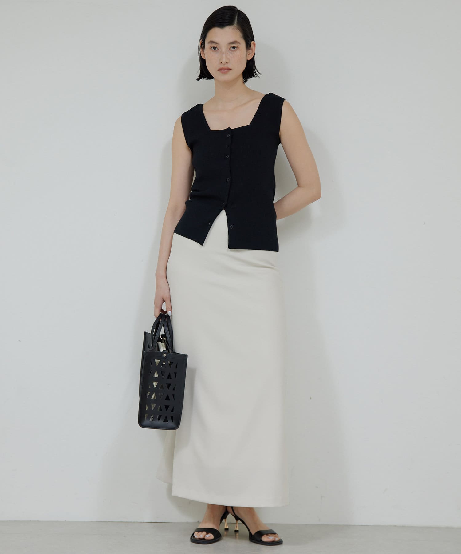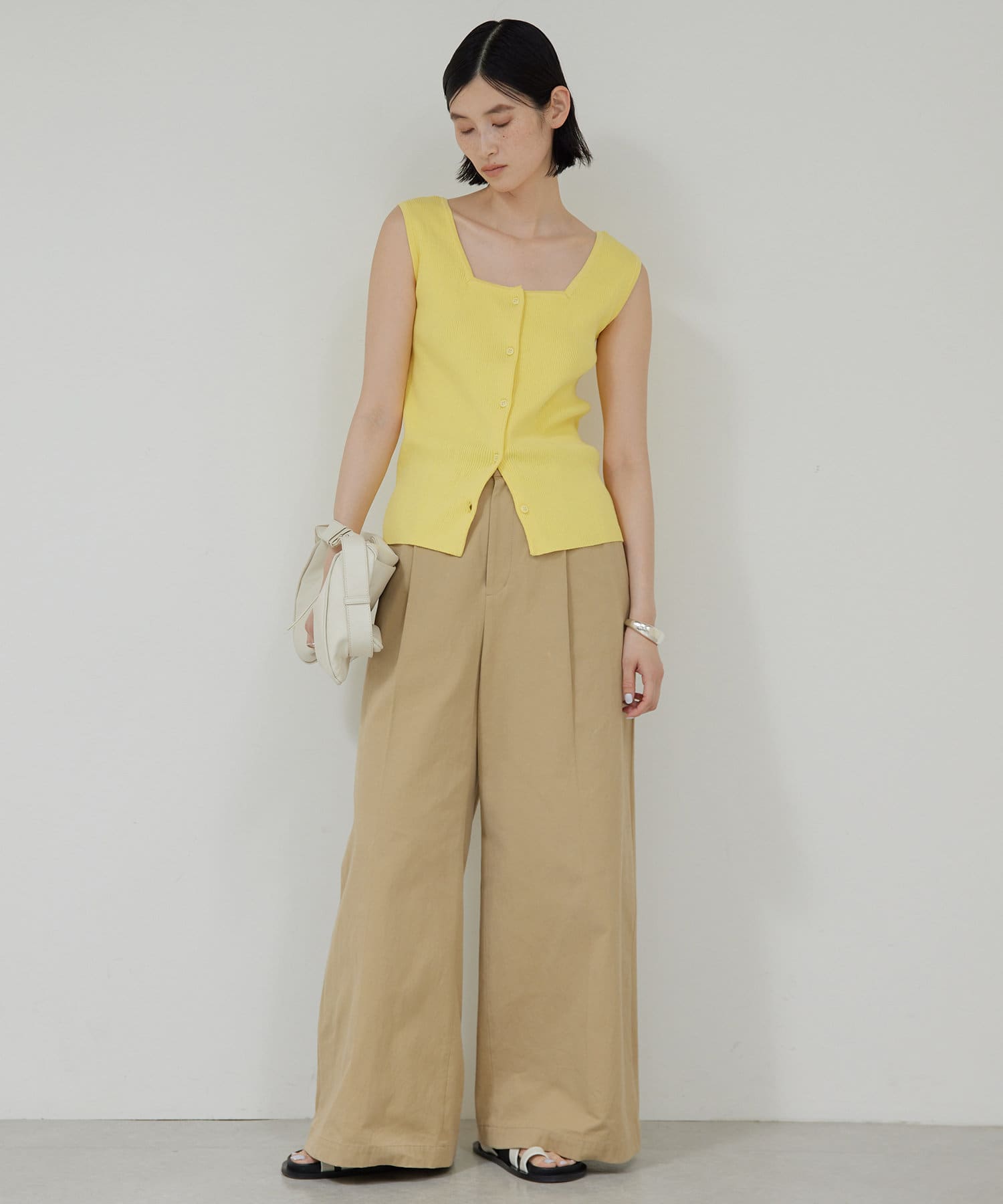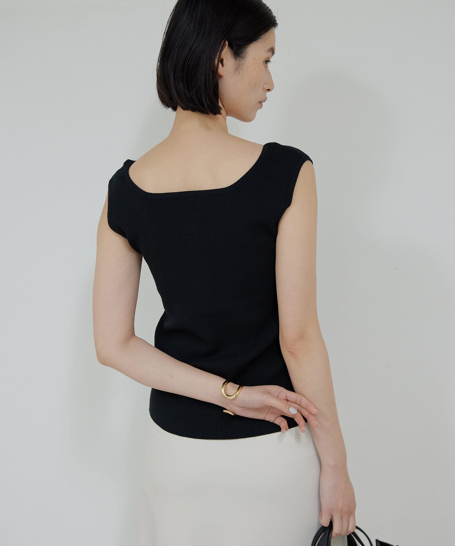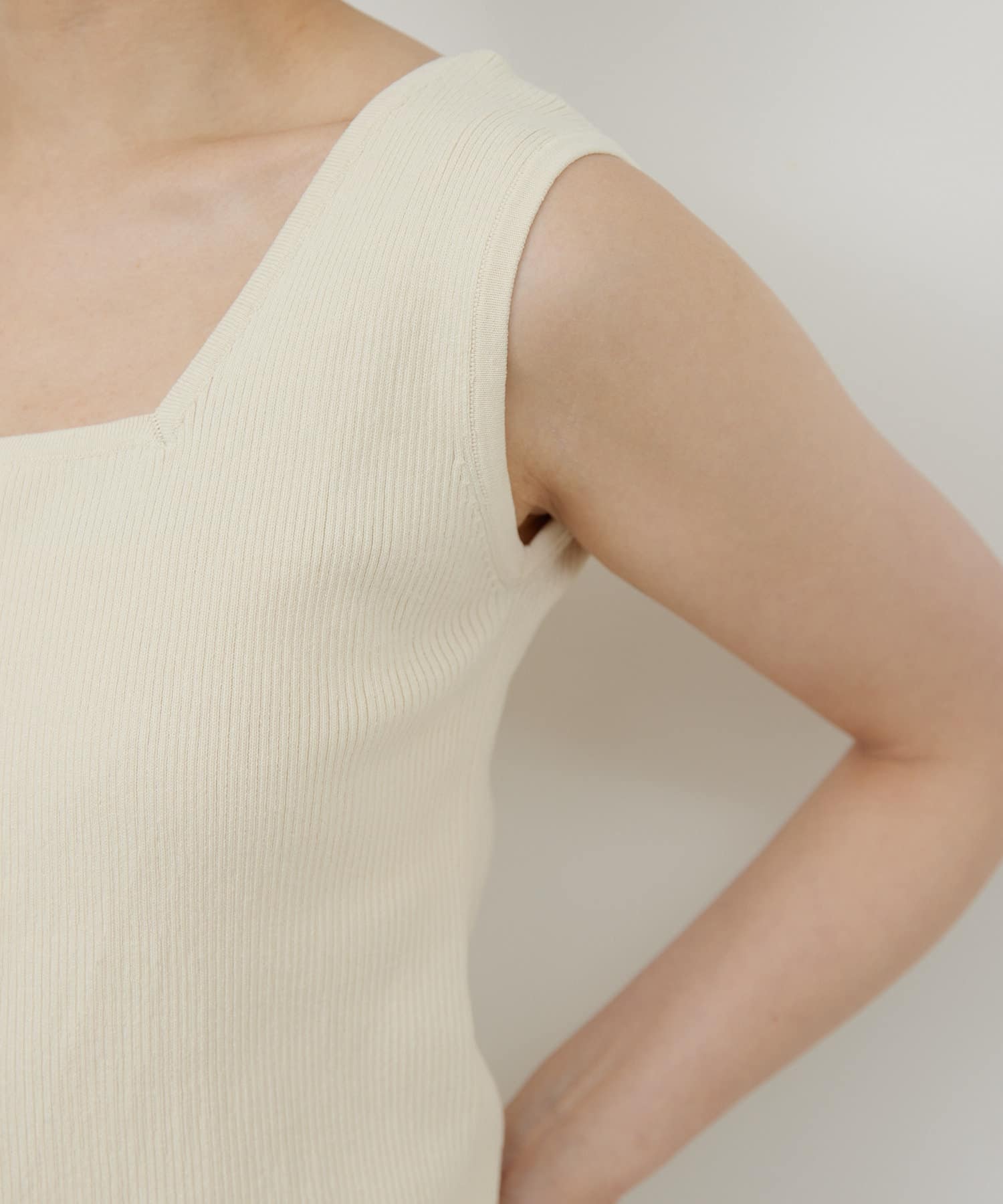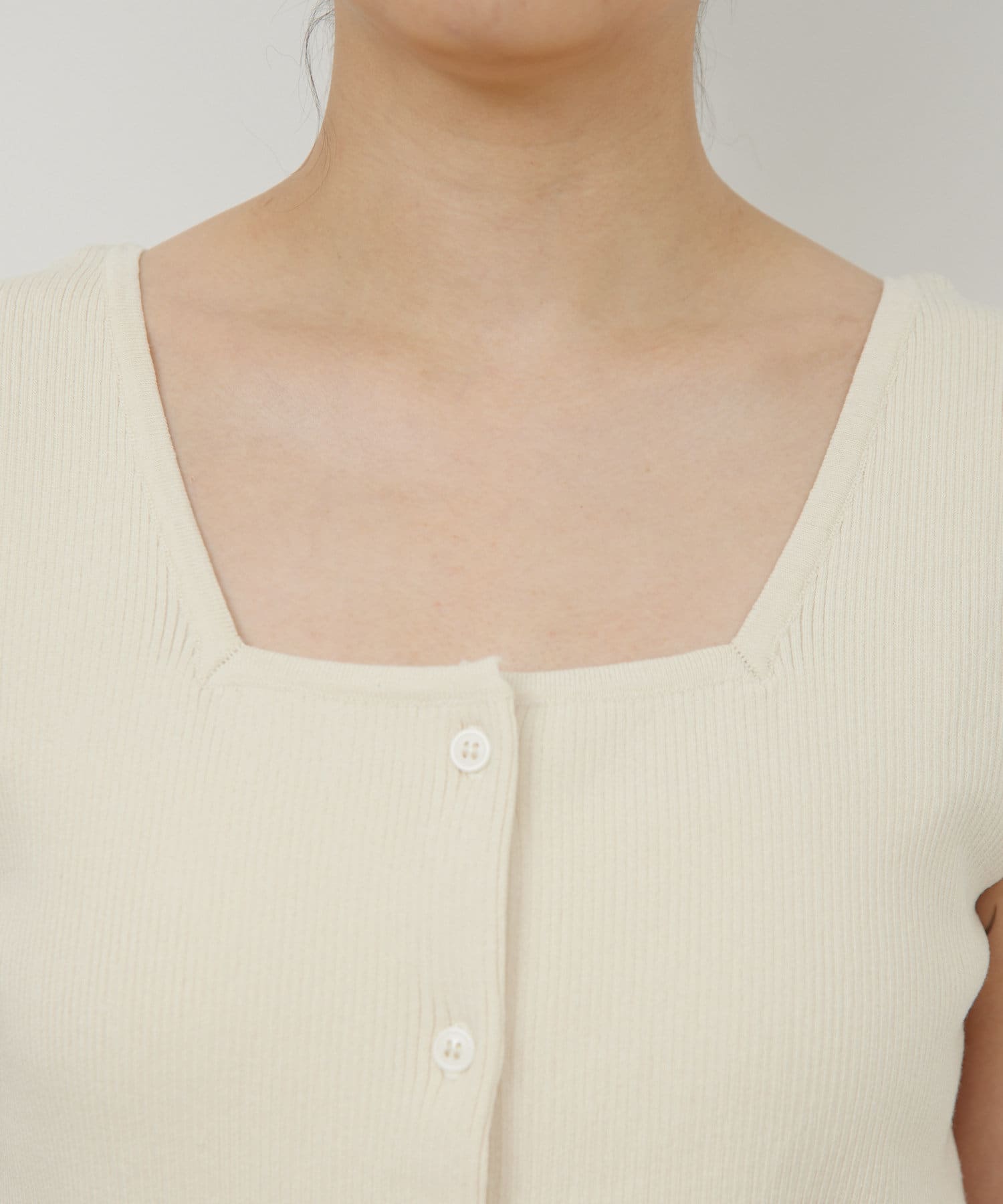 ●デコルテ周りをすっきりと見せるスクエアネック。