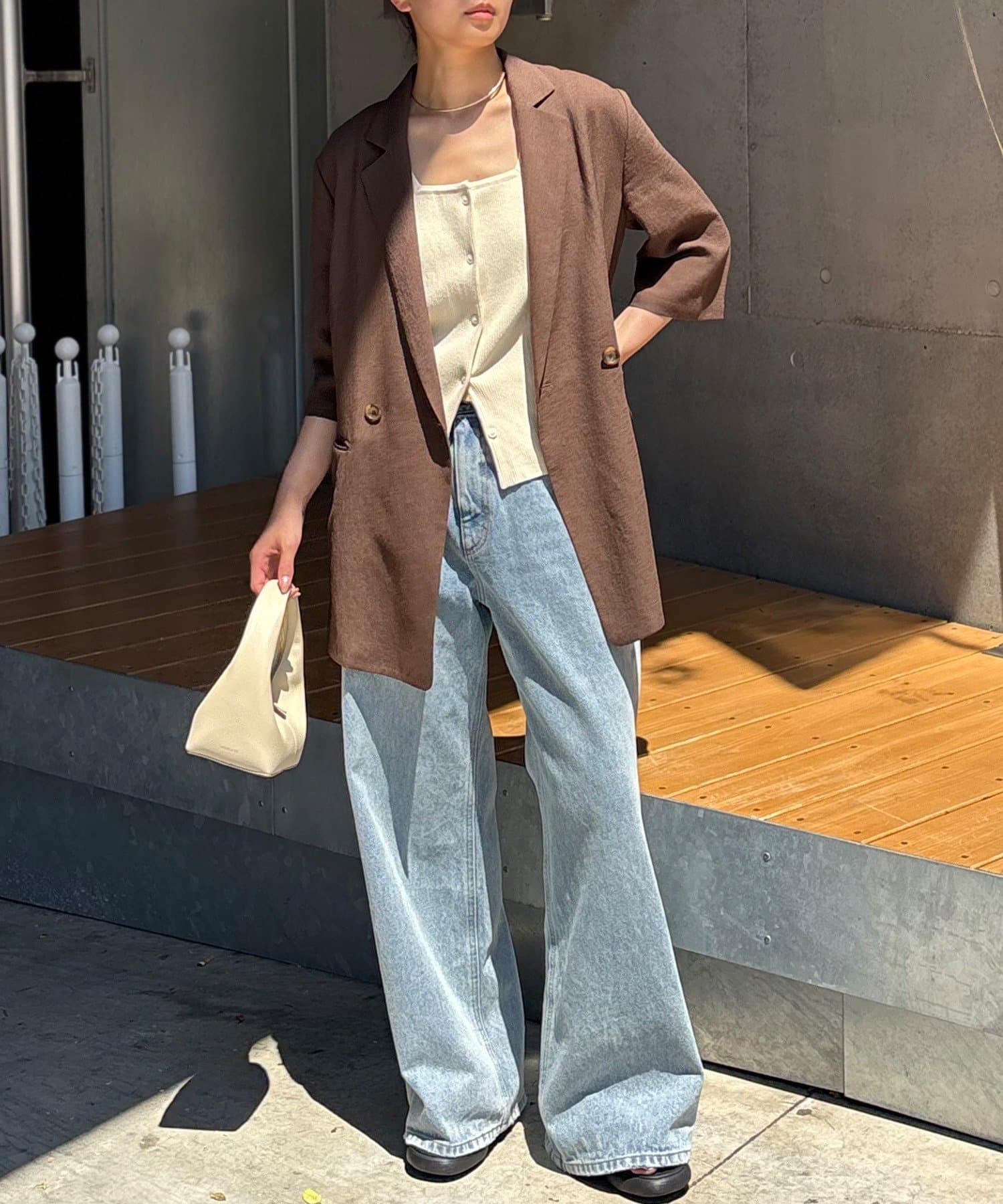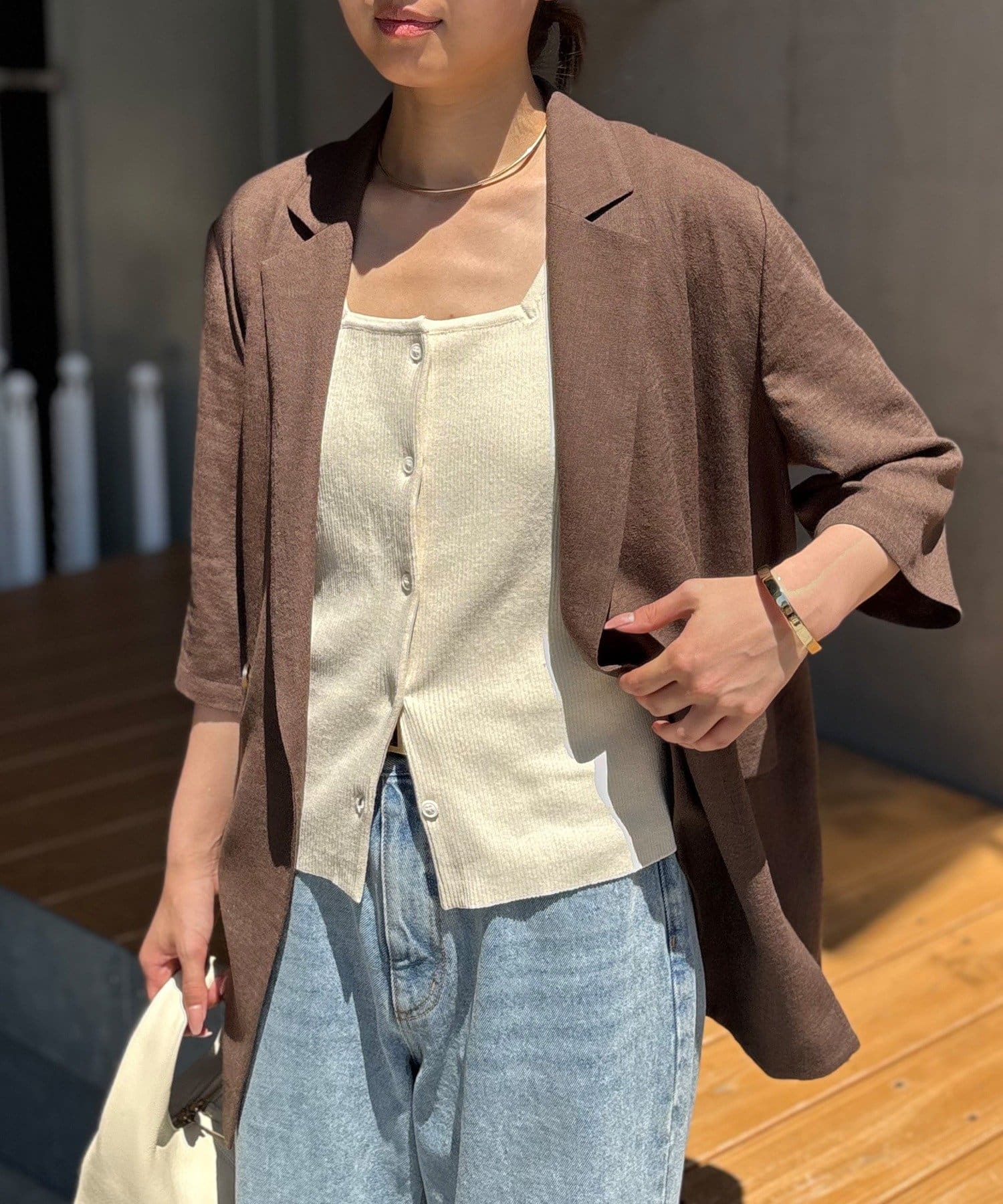 ●下ボタンを開けての着用もおすすめ。