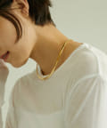 柔らかい素材で多少のサイズ調整が効く上に、しなやかに首回りにフィットする形状。着け心地は抜群で、オーバルチェーンフリーネックレスをY字にしてレイヤードするのが目下のお気に入りです。