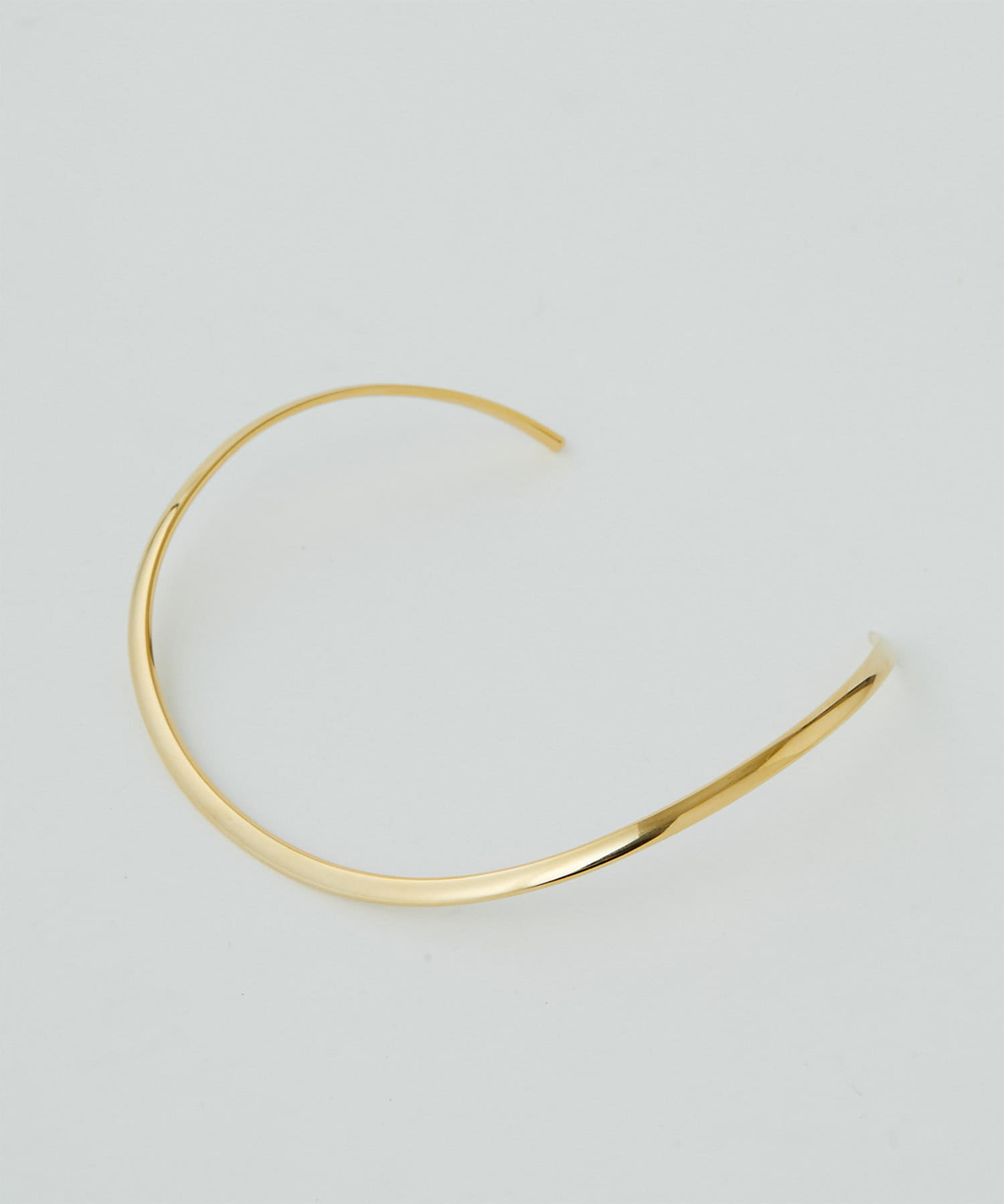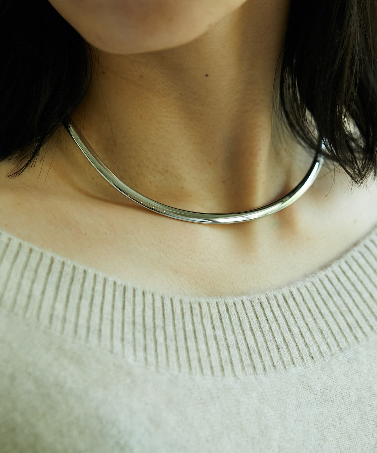 ●デコルテに馴染むようカーブを描いたミニマルなネックカフ。