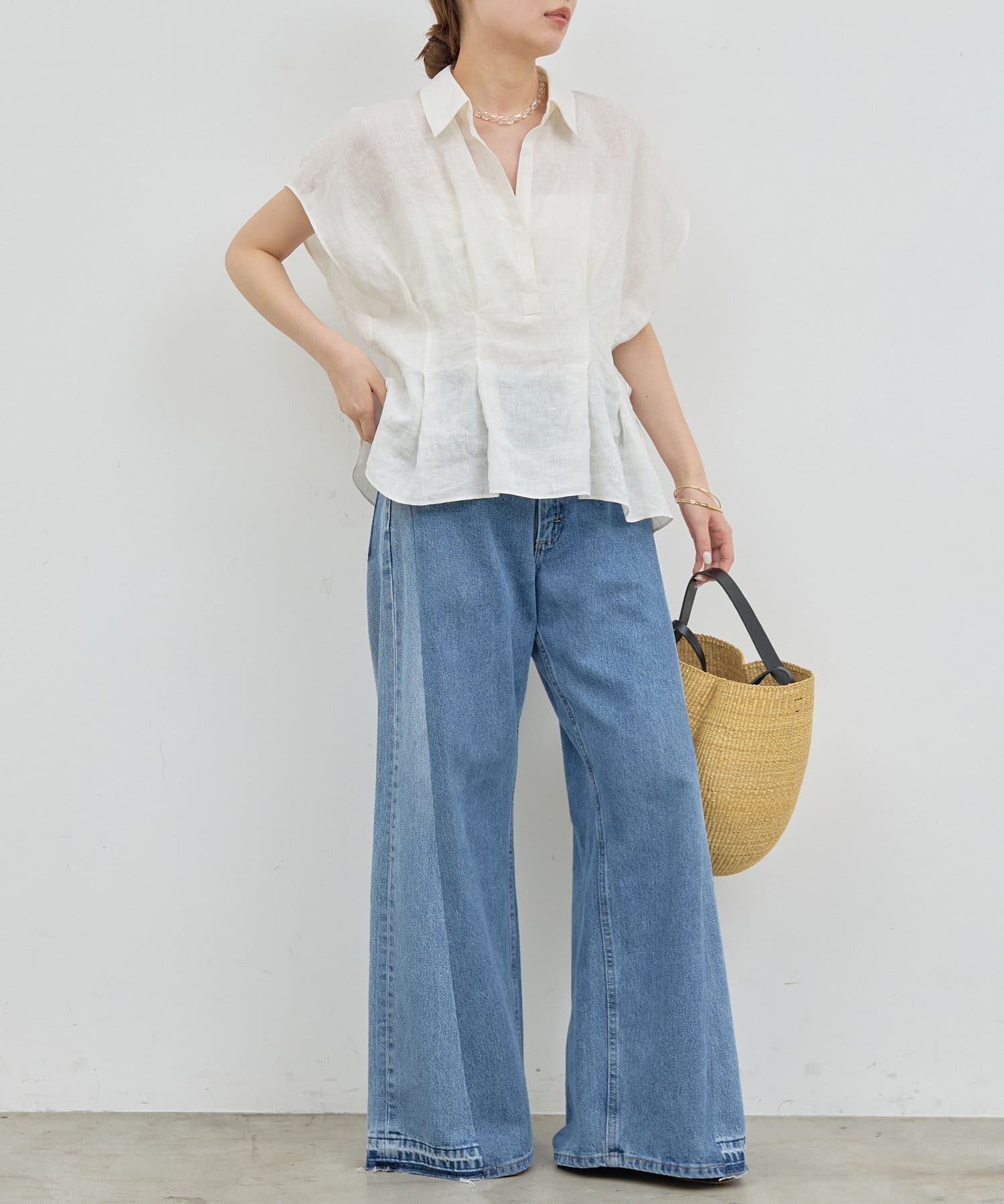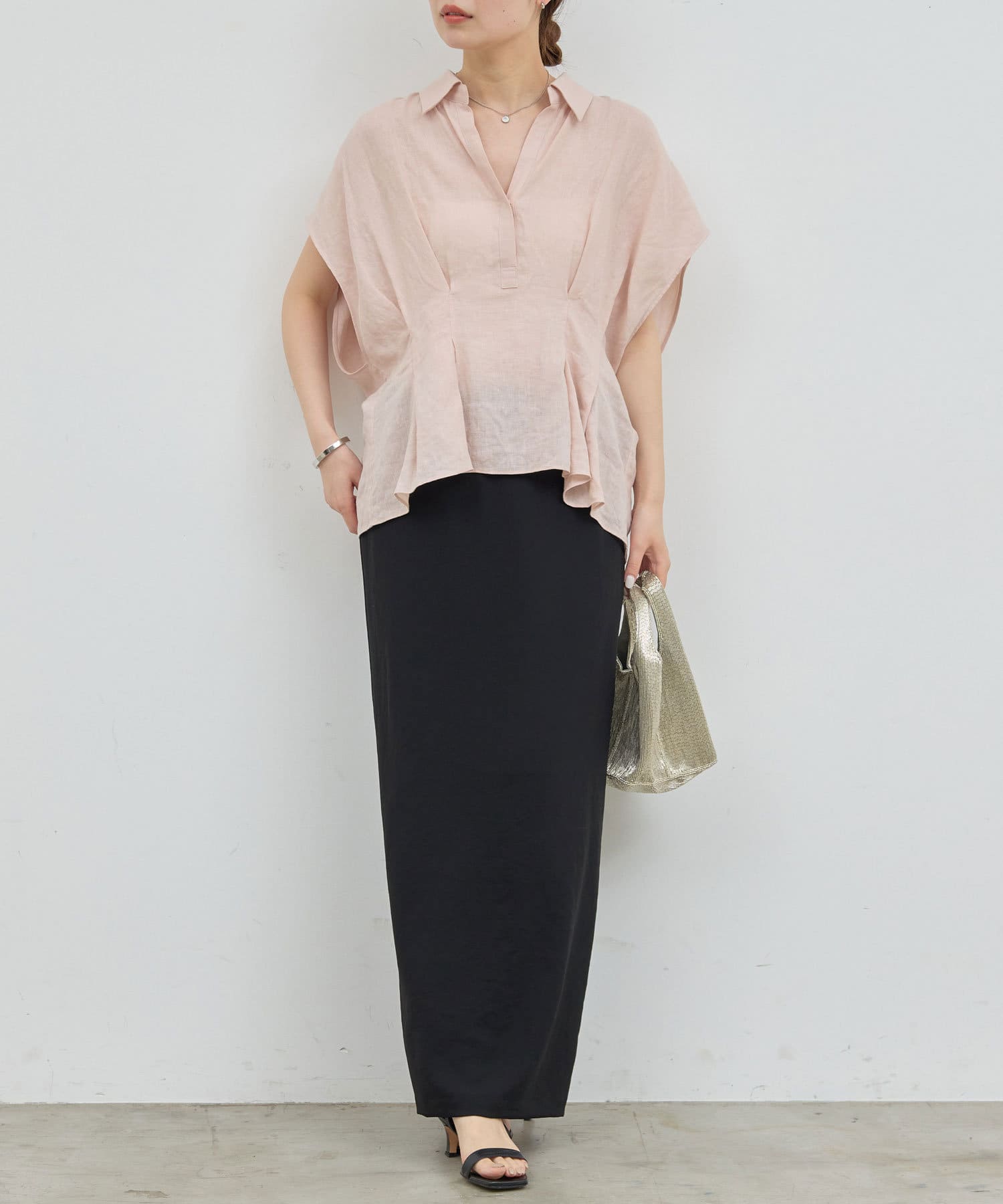 ●腕周りをさりげなくカバーしつつ、風通しのよいドルマンスリーブ。