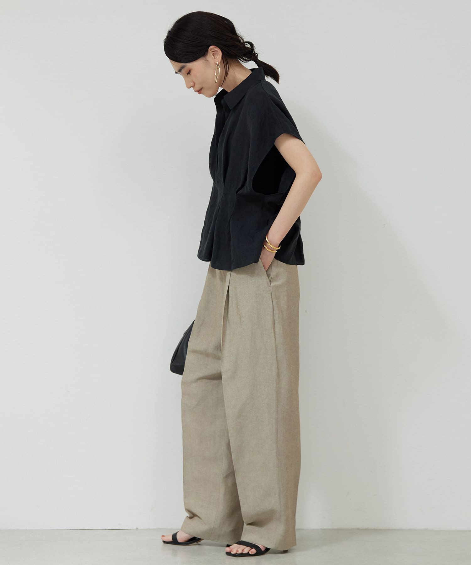 ●夏も快適に過ごせるシャリ感のある麻100%素材。