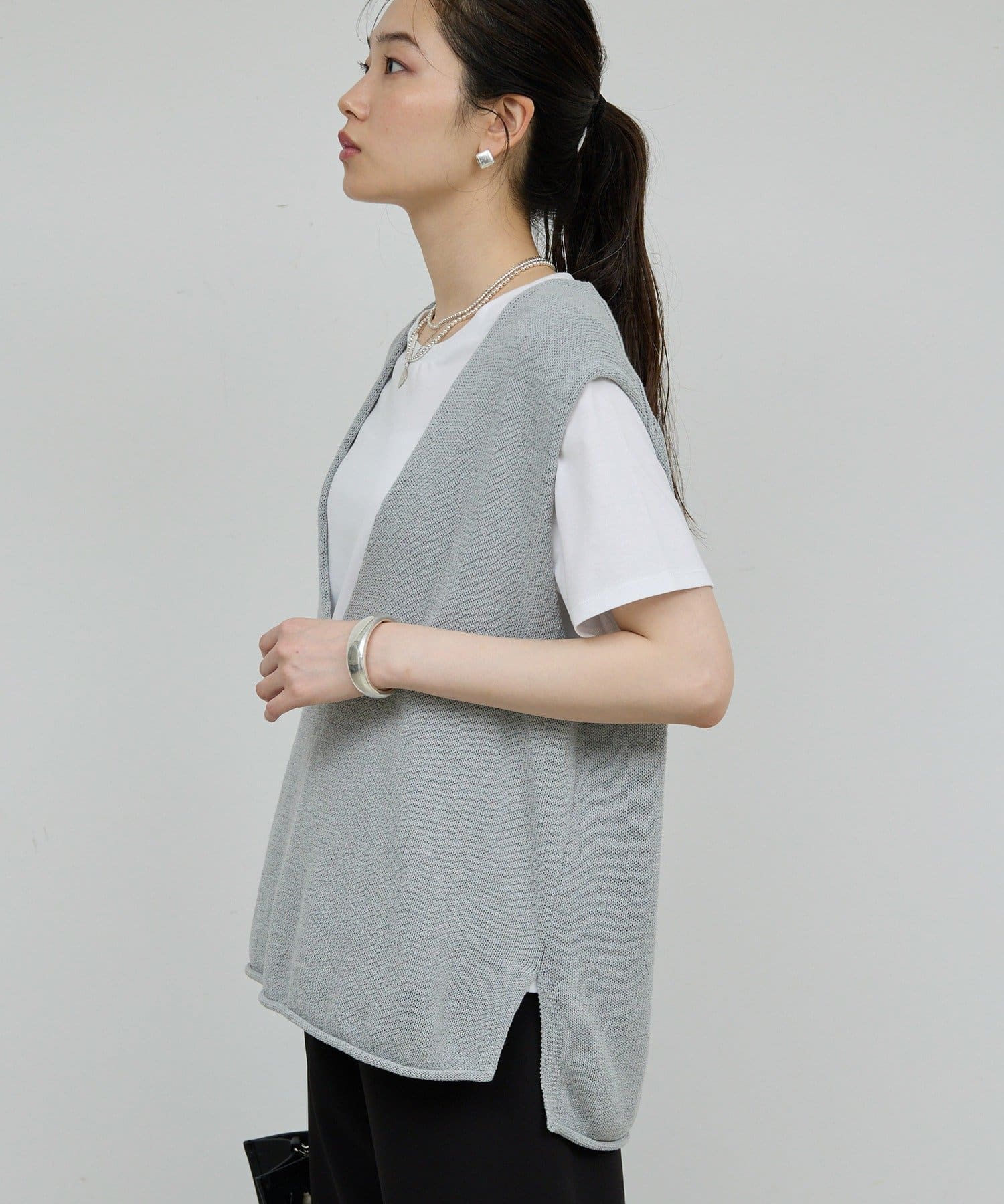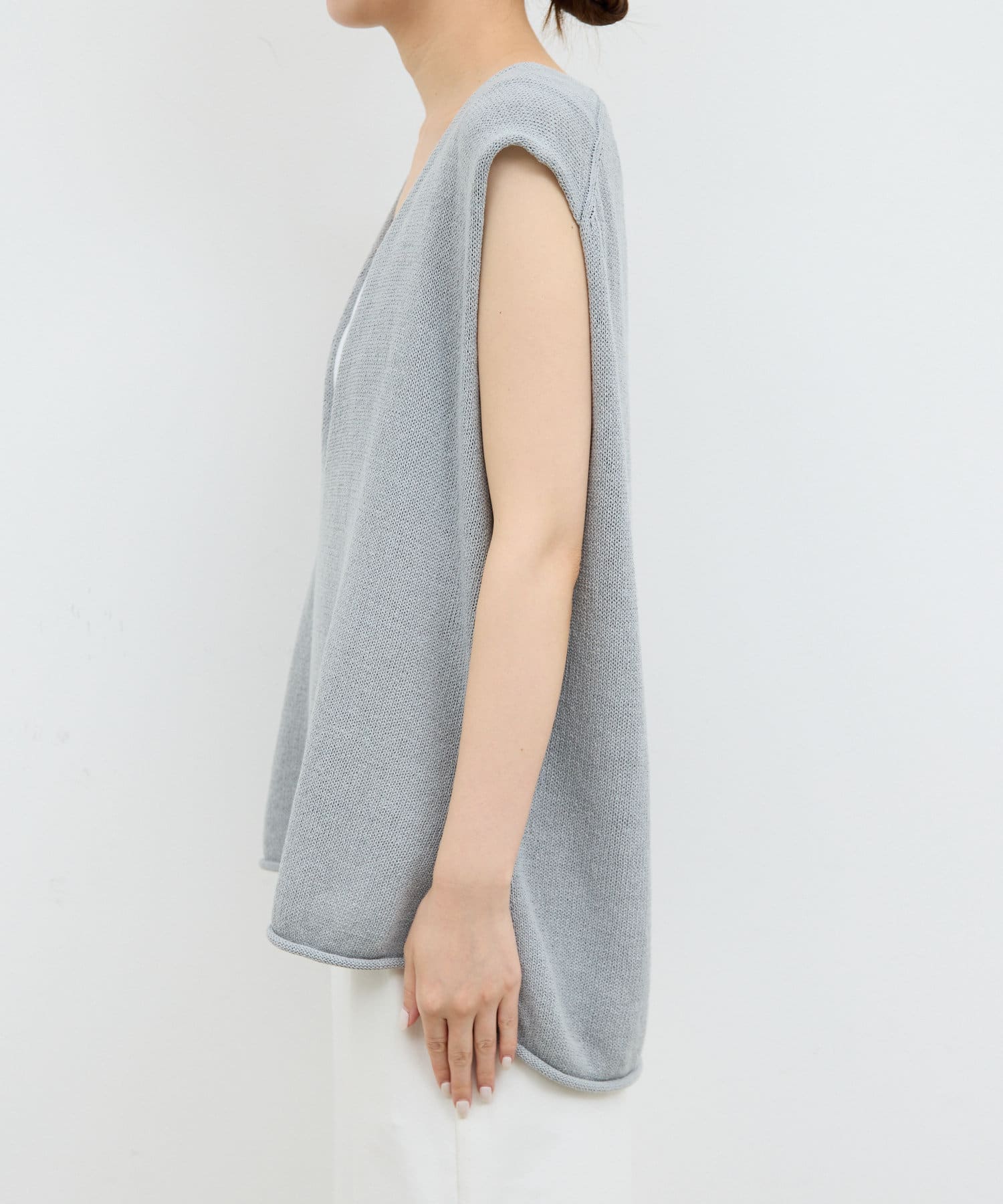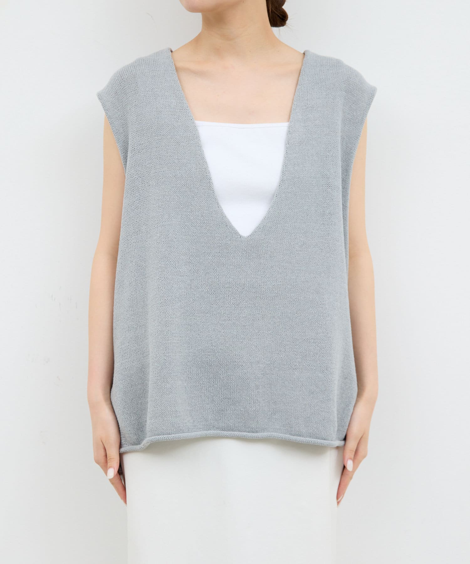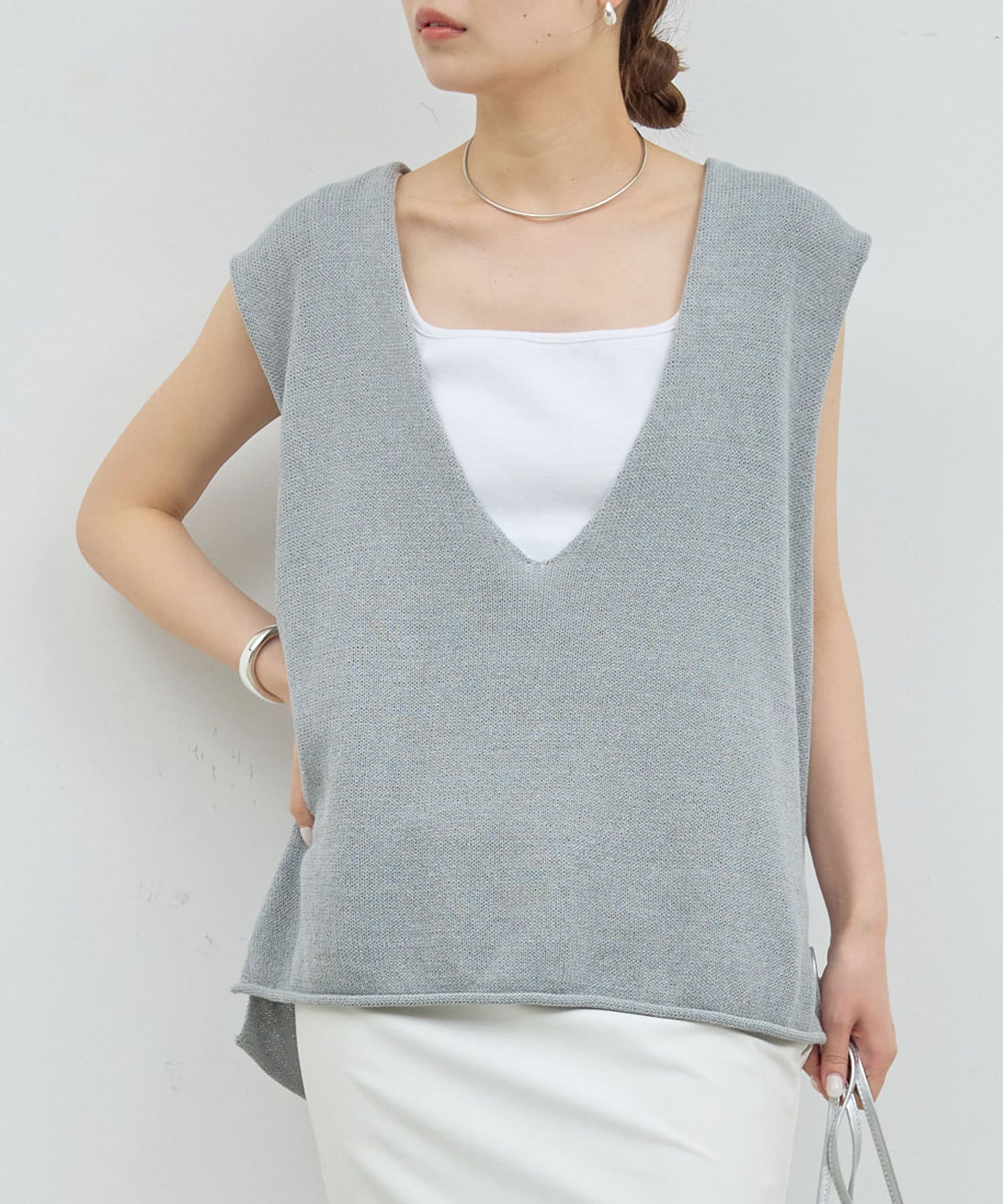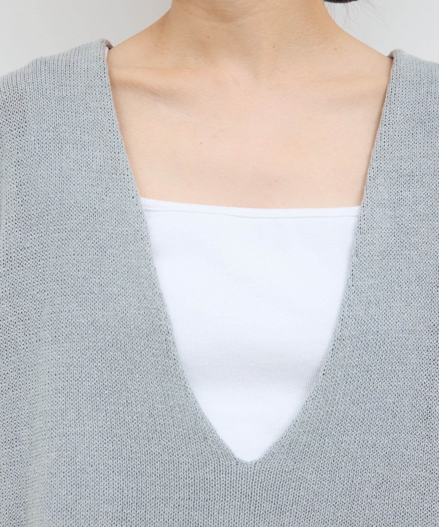 新色GYが登場!大胆な深Vネックがエフォートレスなサマーニット