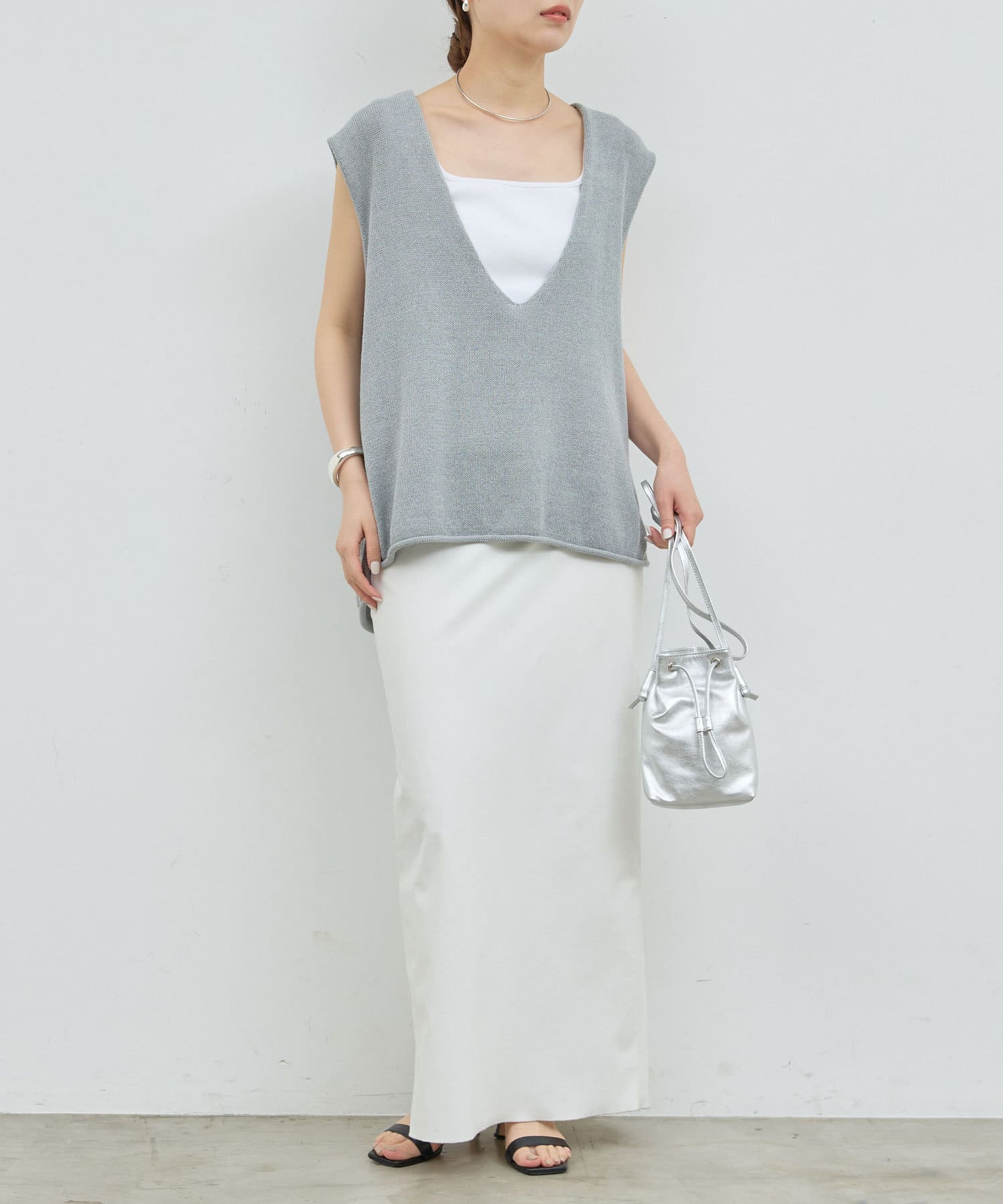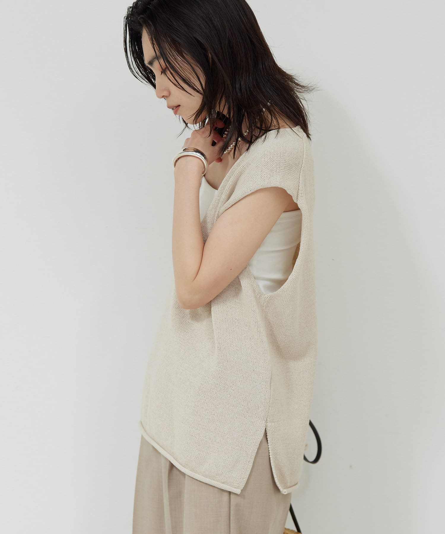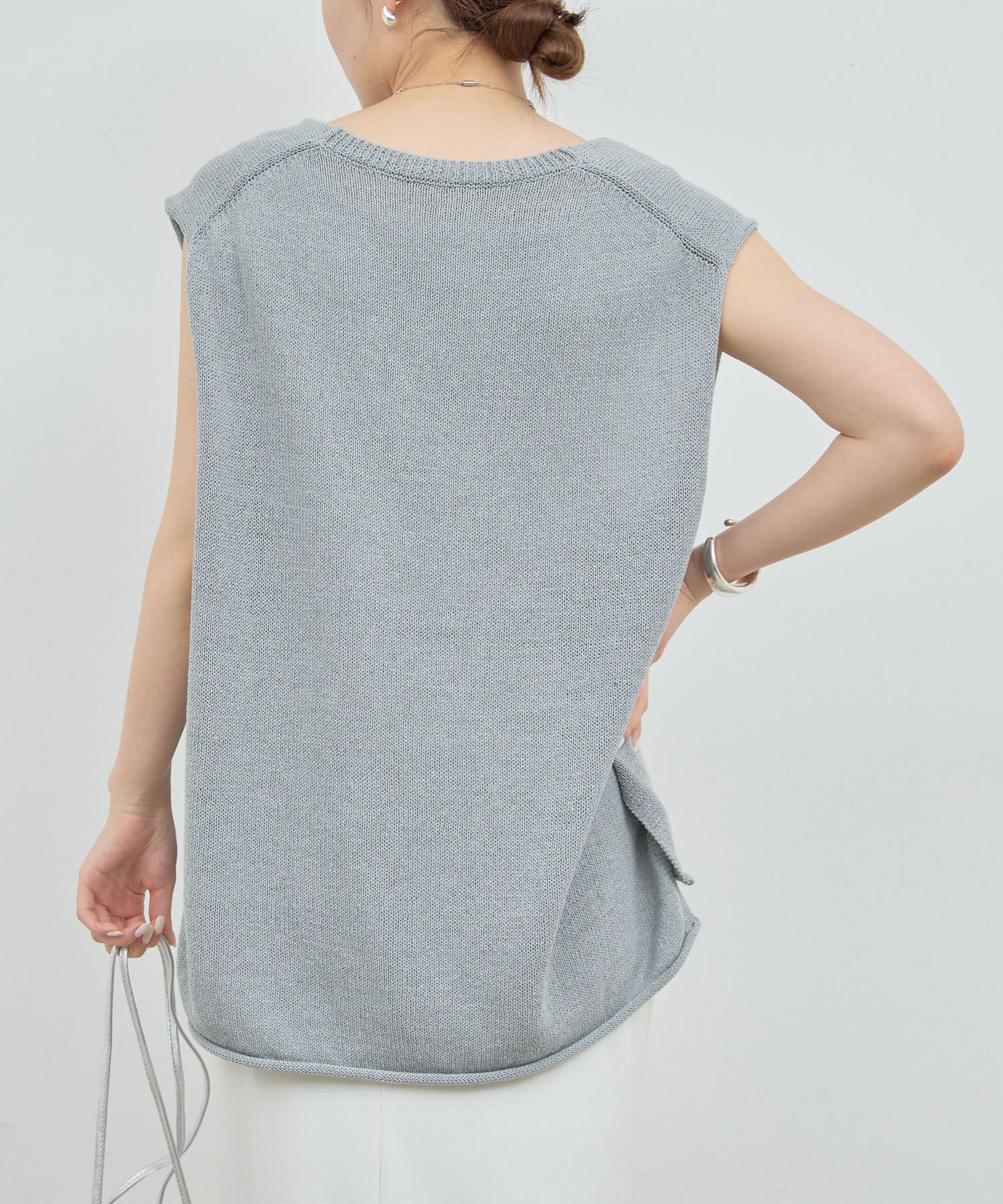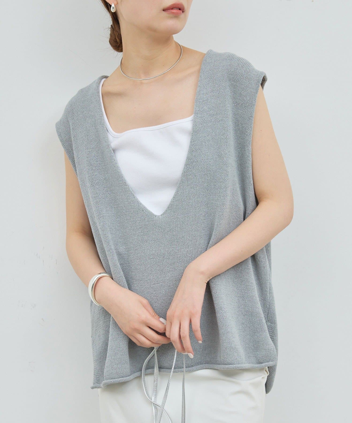 新色GYが登場!大胆な深Vネックがエフォートレスなサマーニット