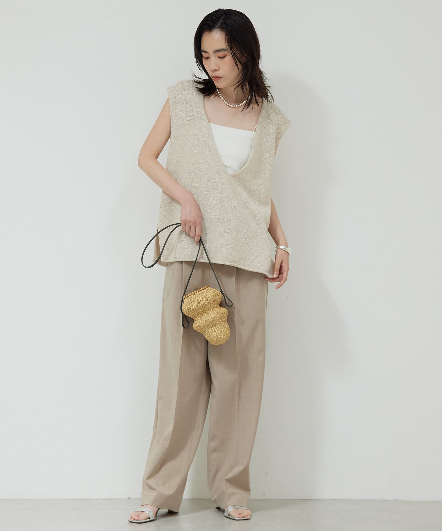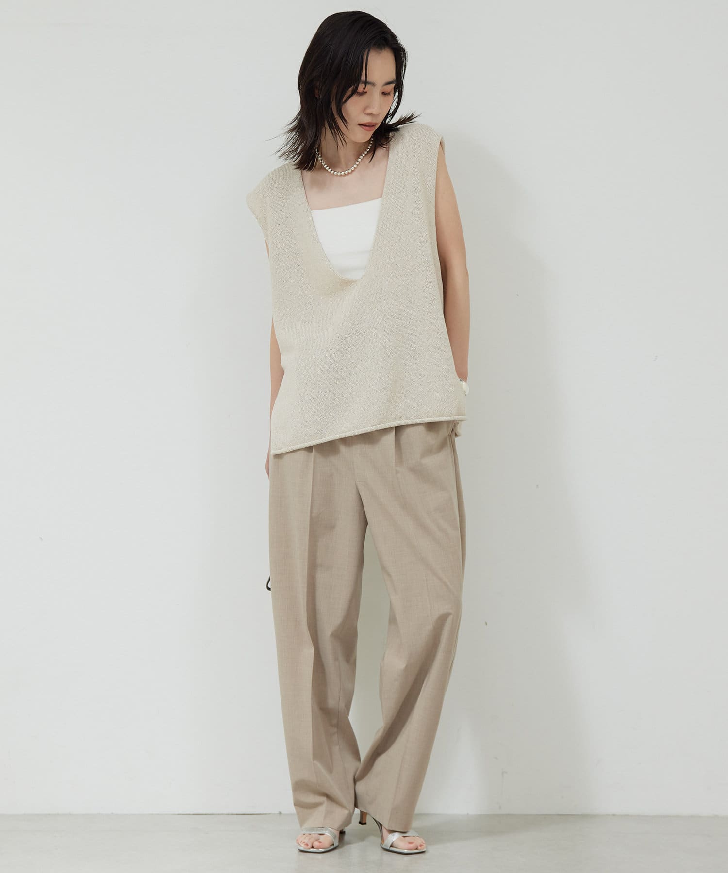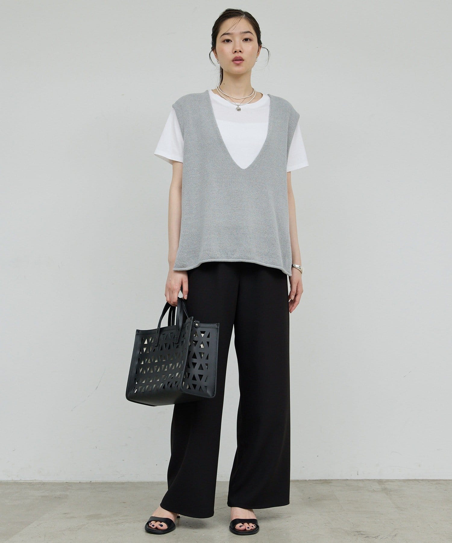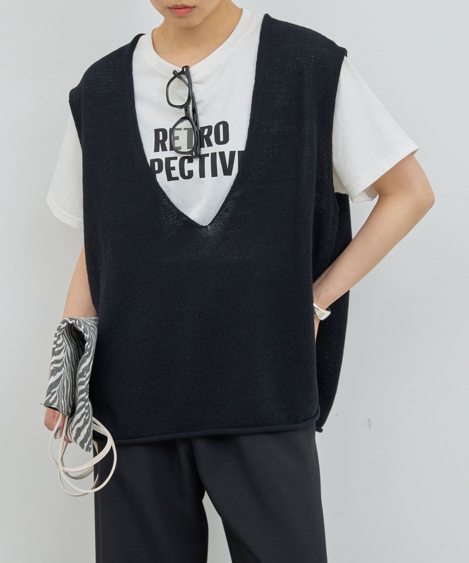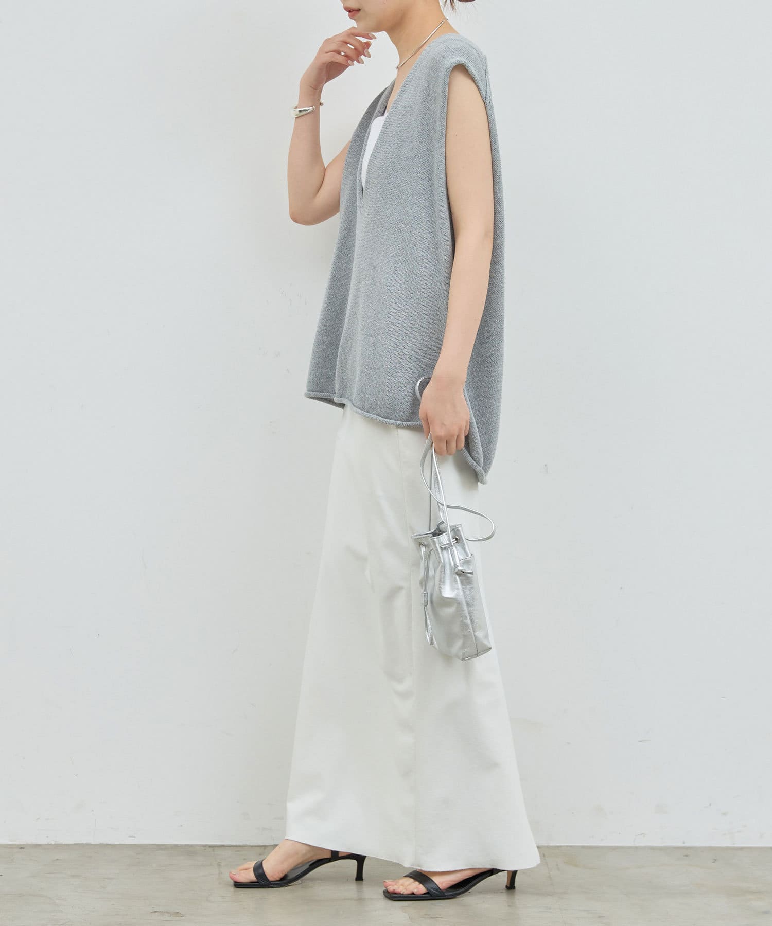 新色GYが登場!大胆な深Vネックがエフォートレスなサマーニット