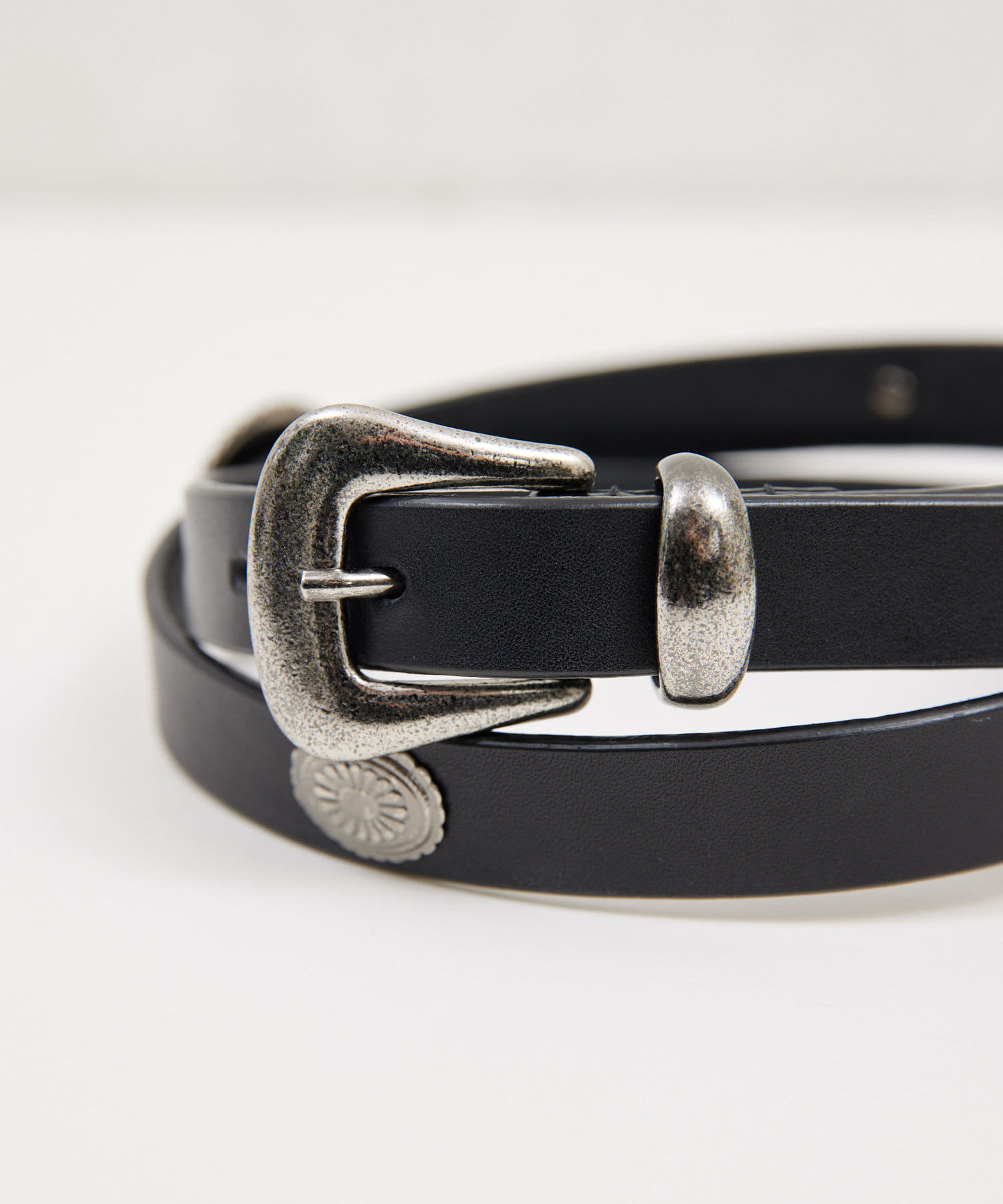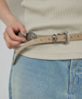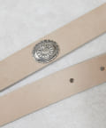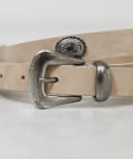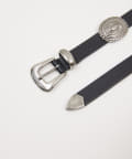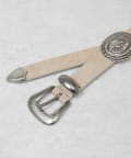 ●ボリューム感のあるバックルがスタイリングのポイントになるデザインベルト。