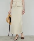 ●同素材のタンクトップと女性らしいセットアップコーデもおすすめ。