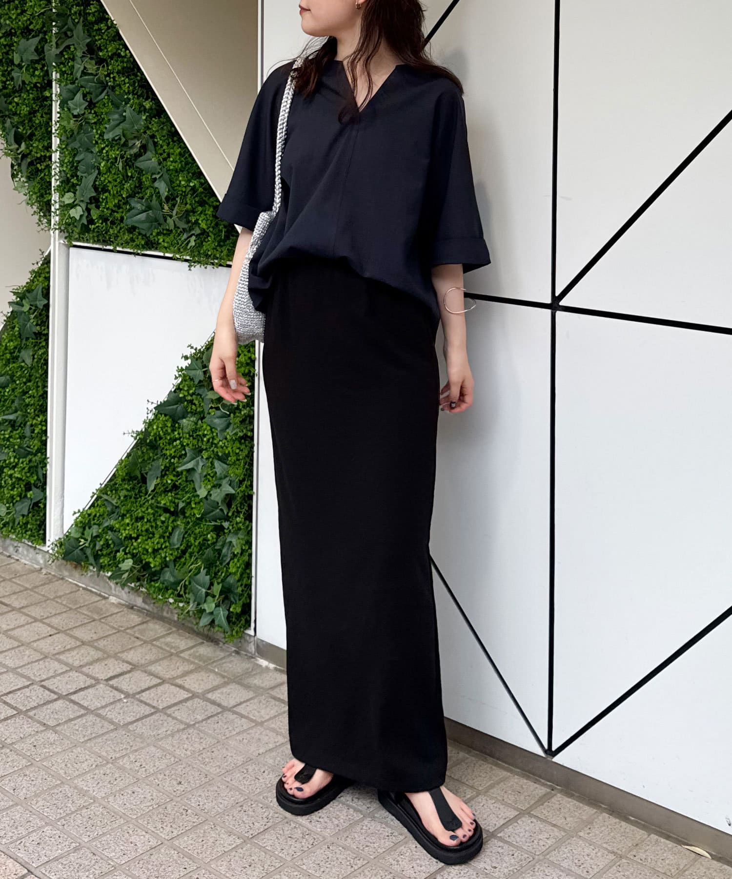 ●ヒップが隠れる着丈と程よくゆとりがあるサイズ感で体型カバーにも◎。