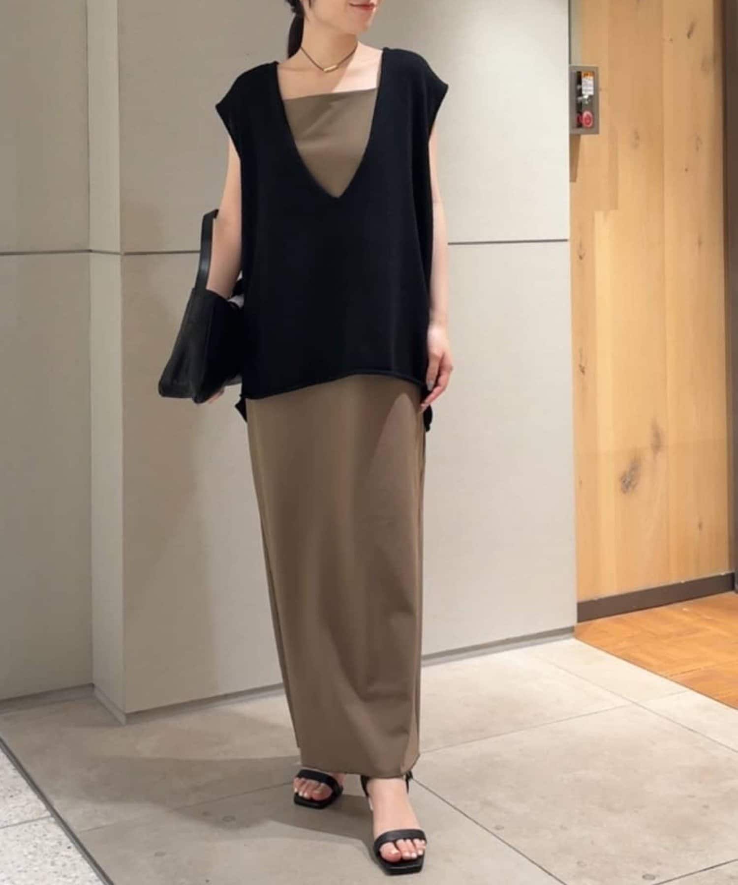 【シーズンレス】ミニマルなデザインのキャミマキシワンピース