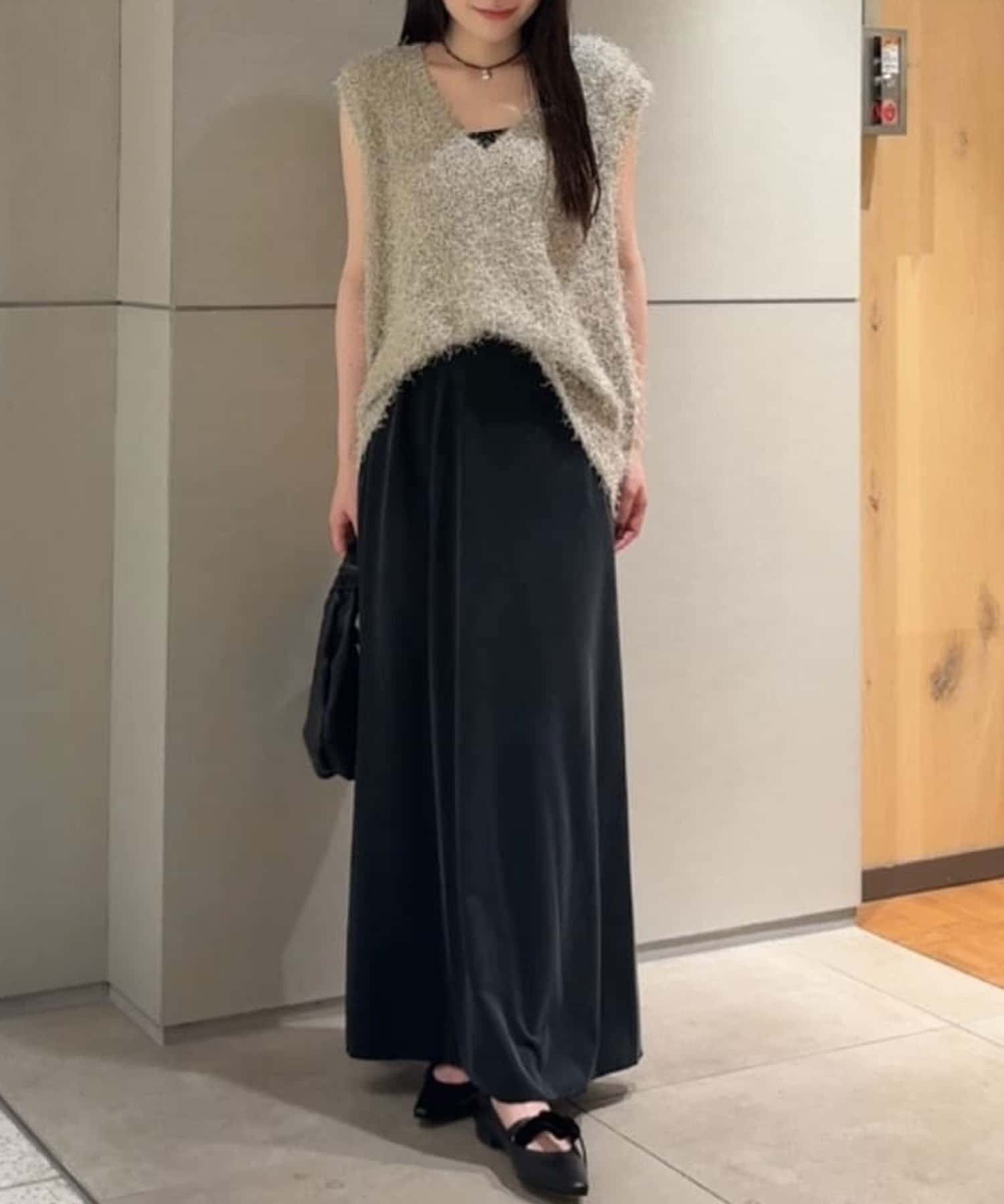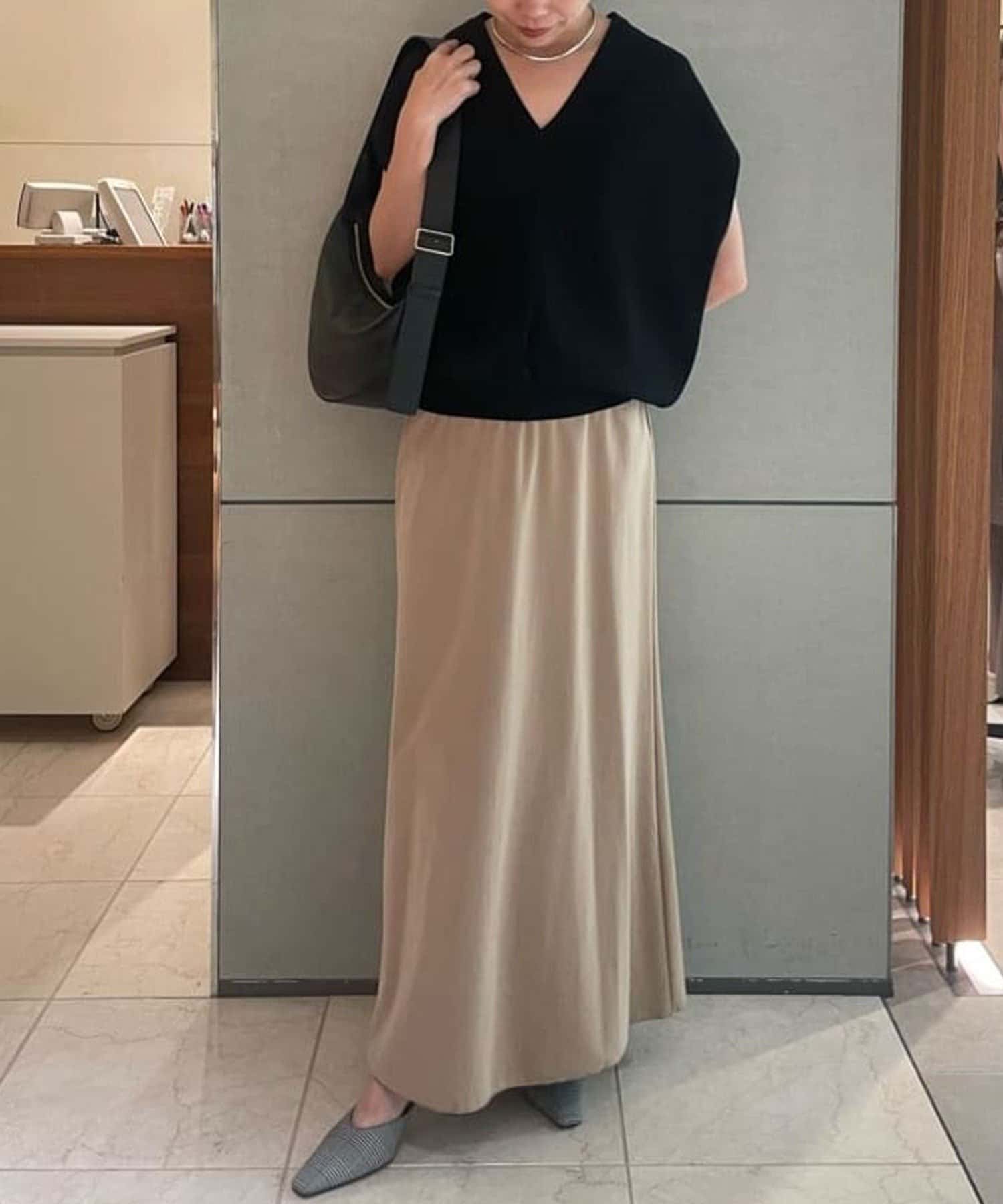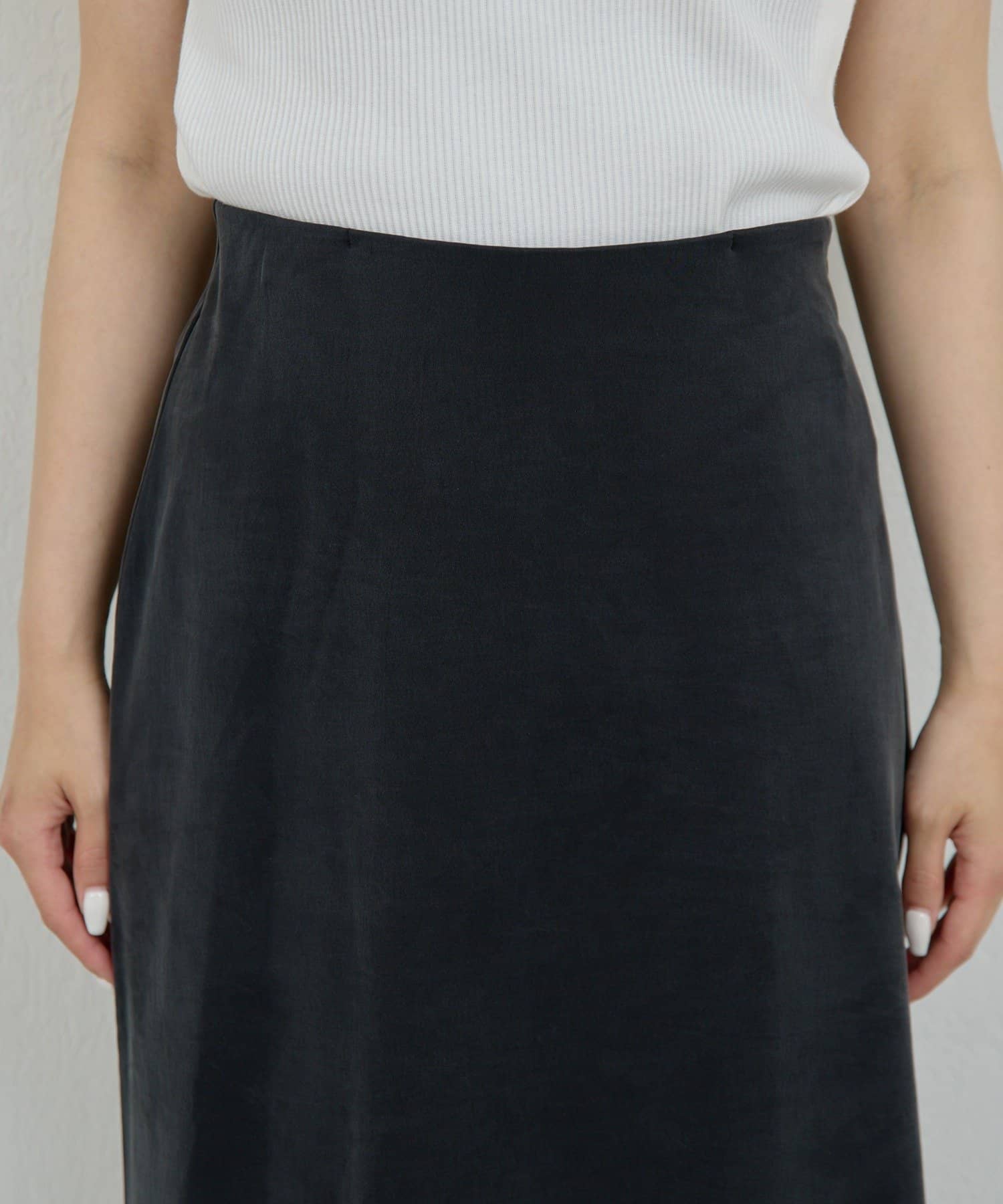 滑らかな素材感が女性の魅力を引き立てるキュプラスカート