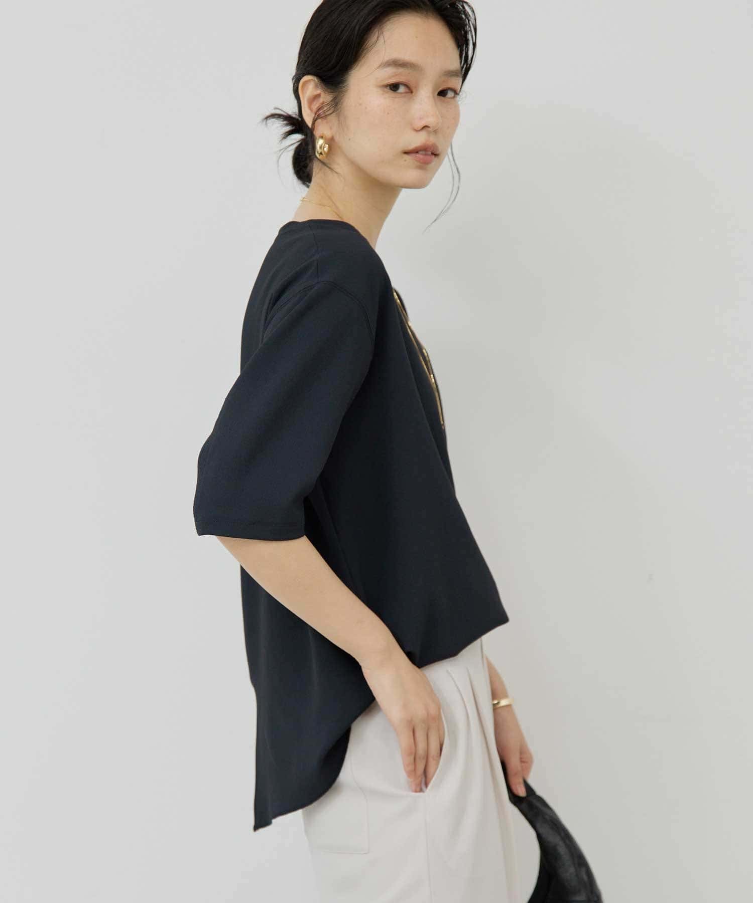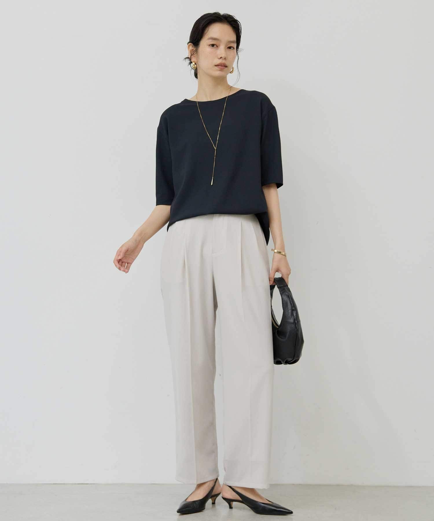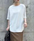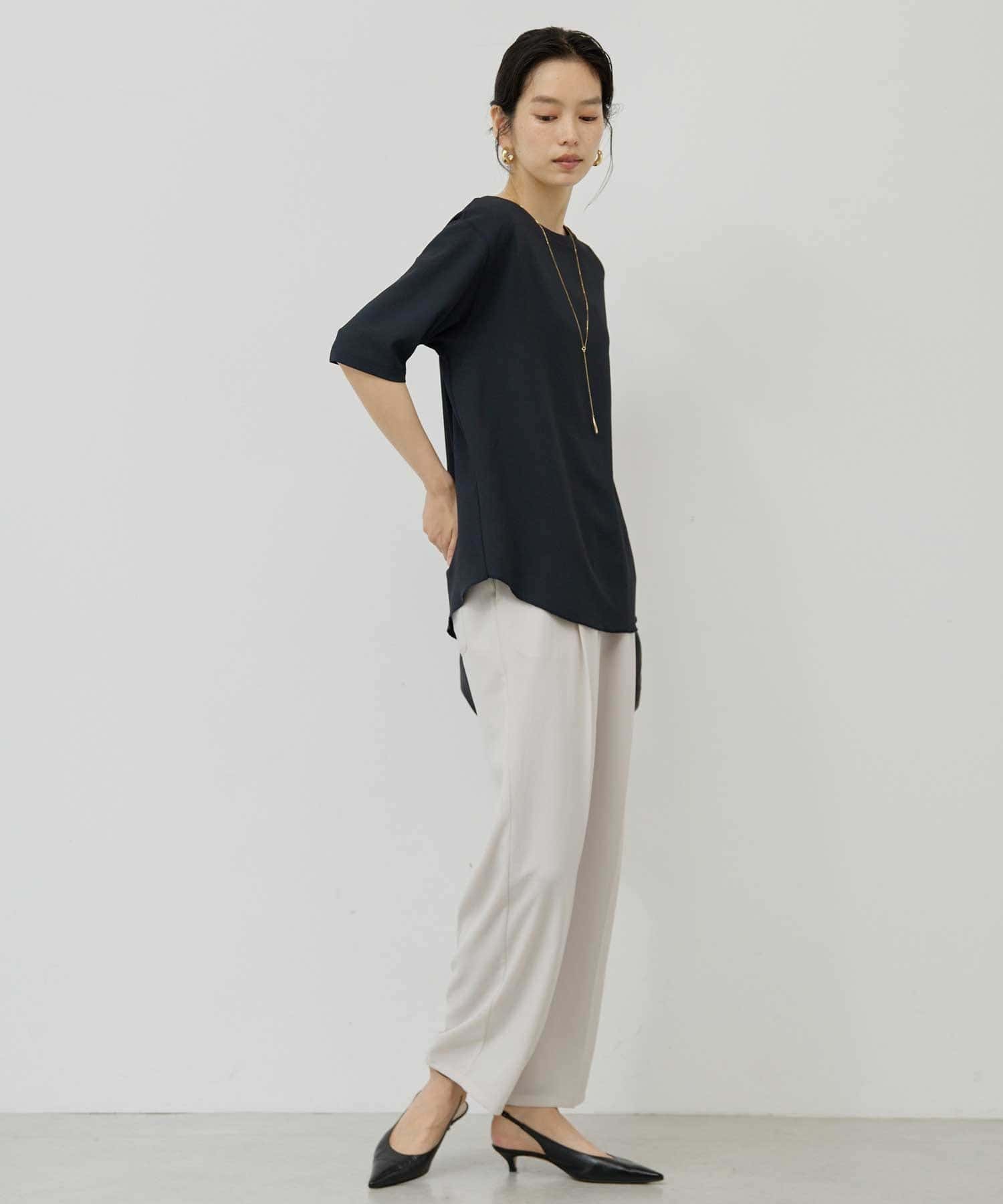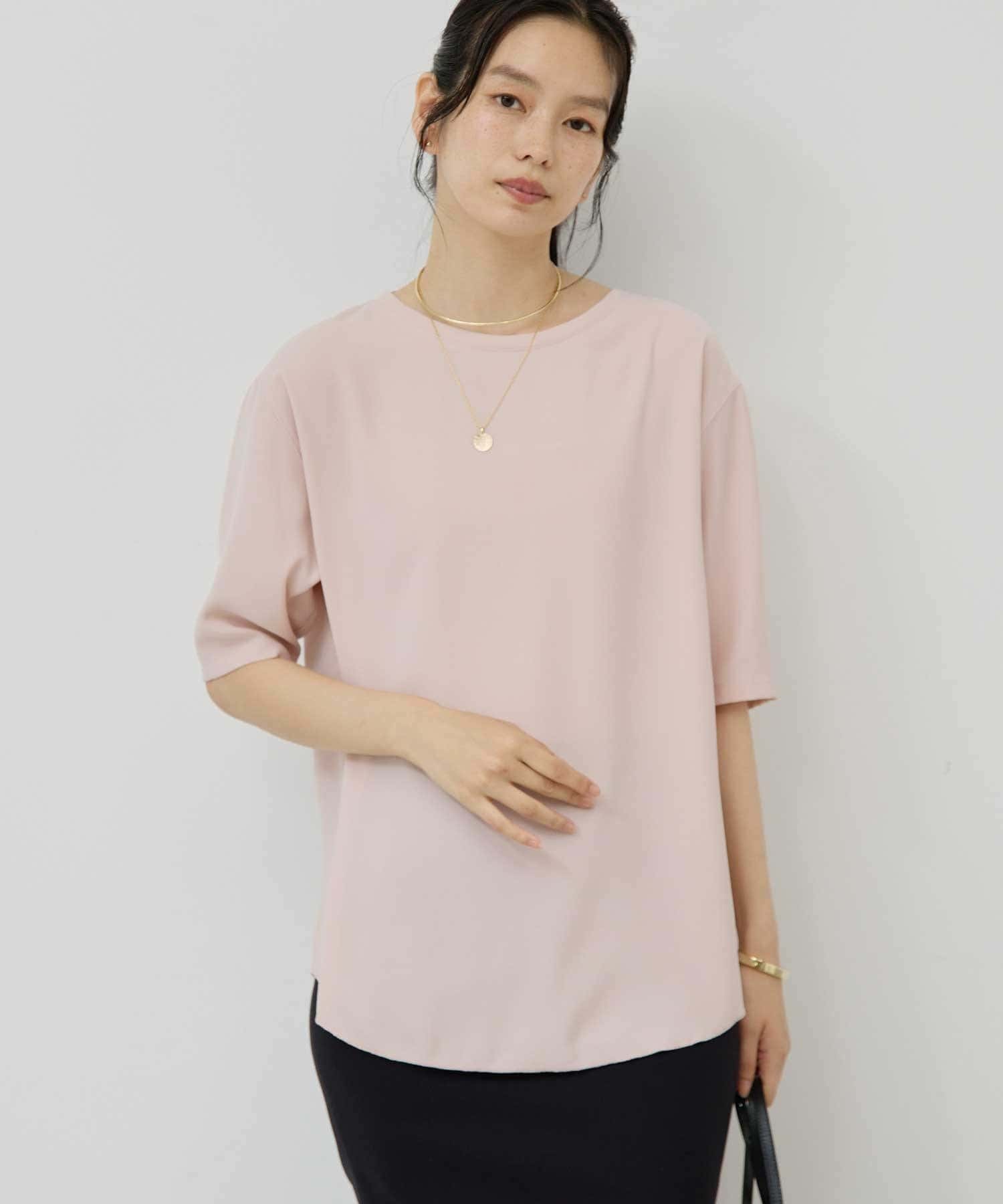 ●表情のある生地でカットソーのような着易さときちんと見えが両立する万能ブラウス。