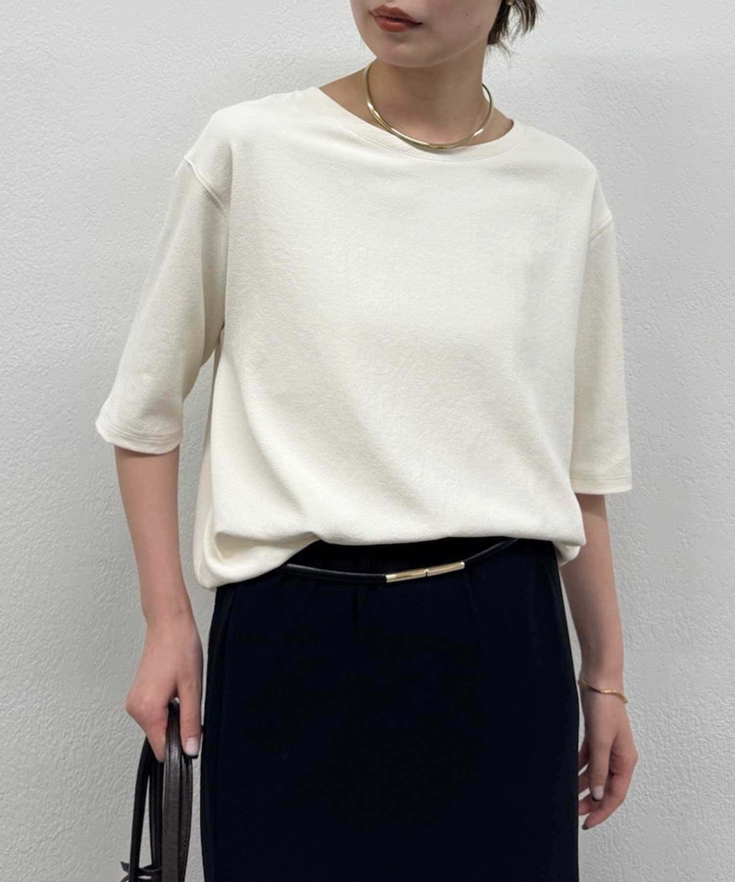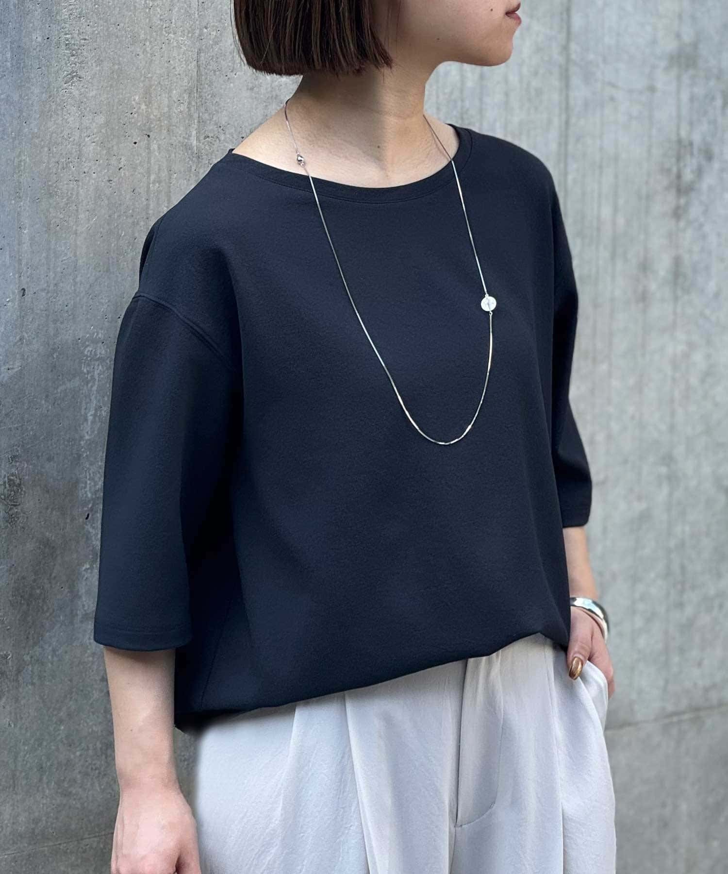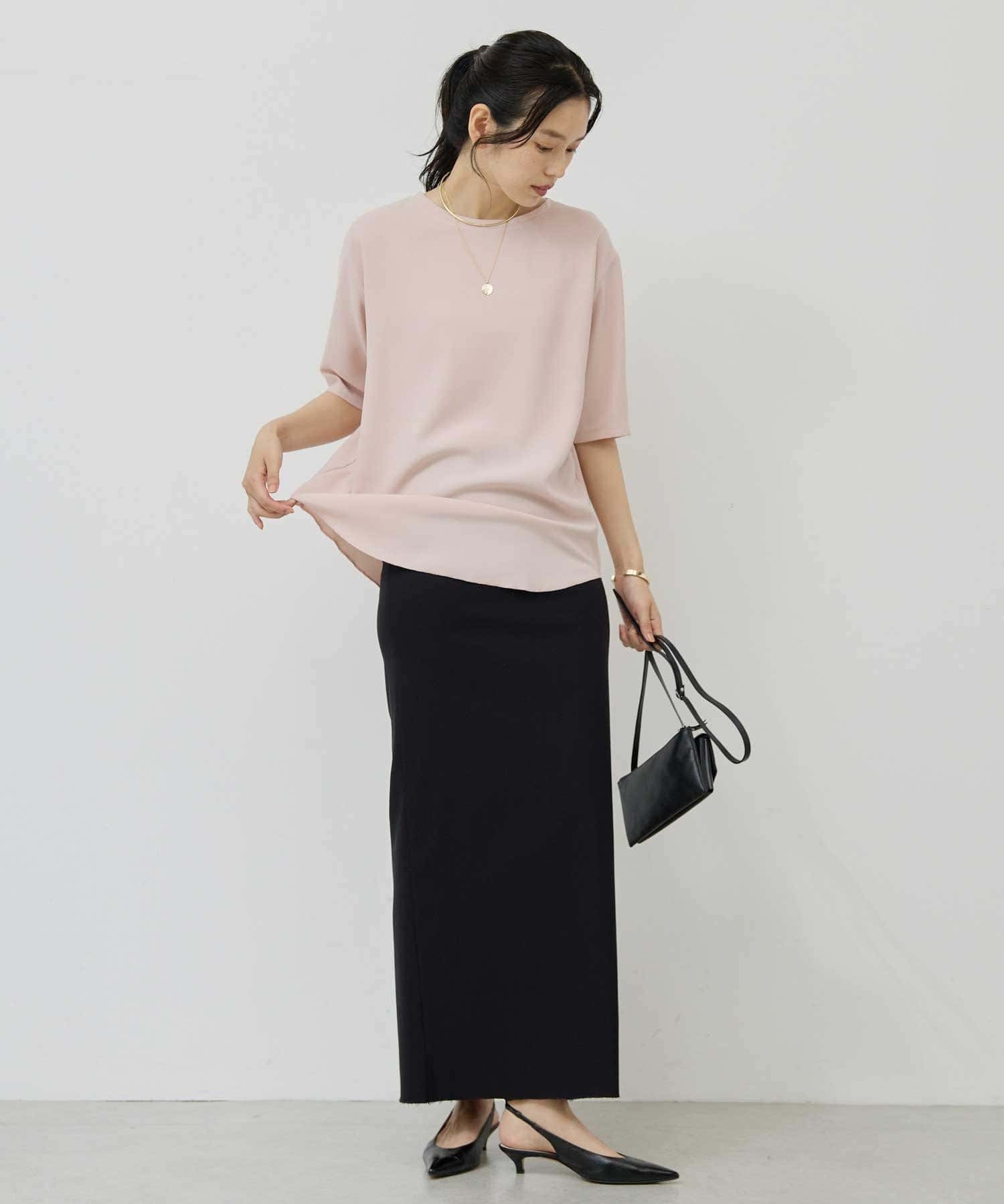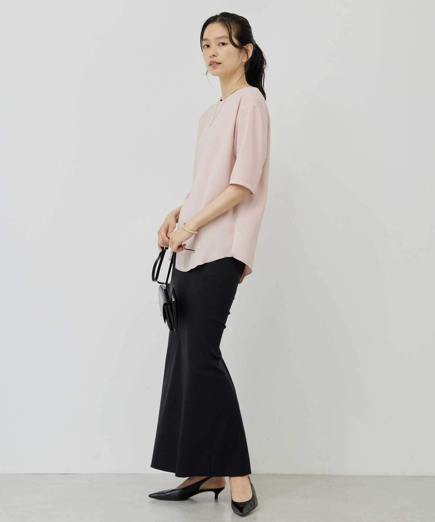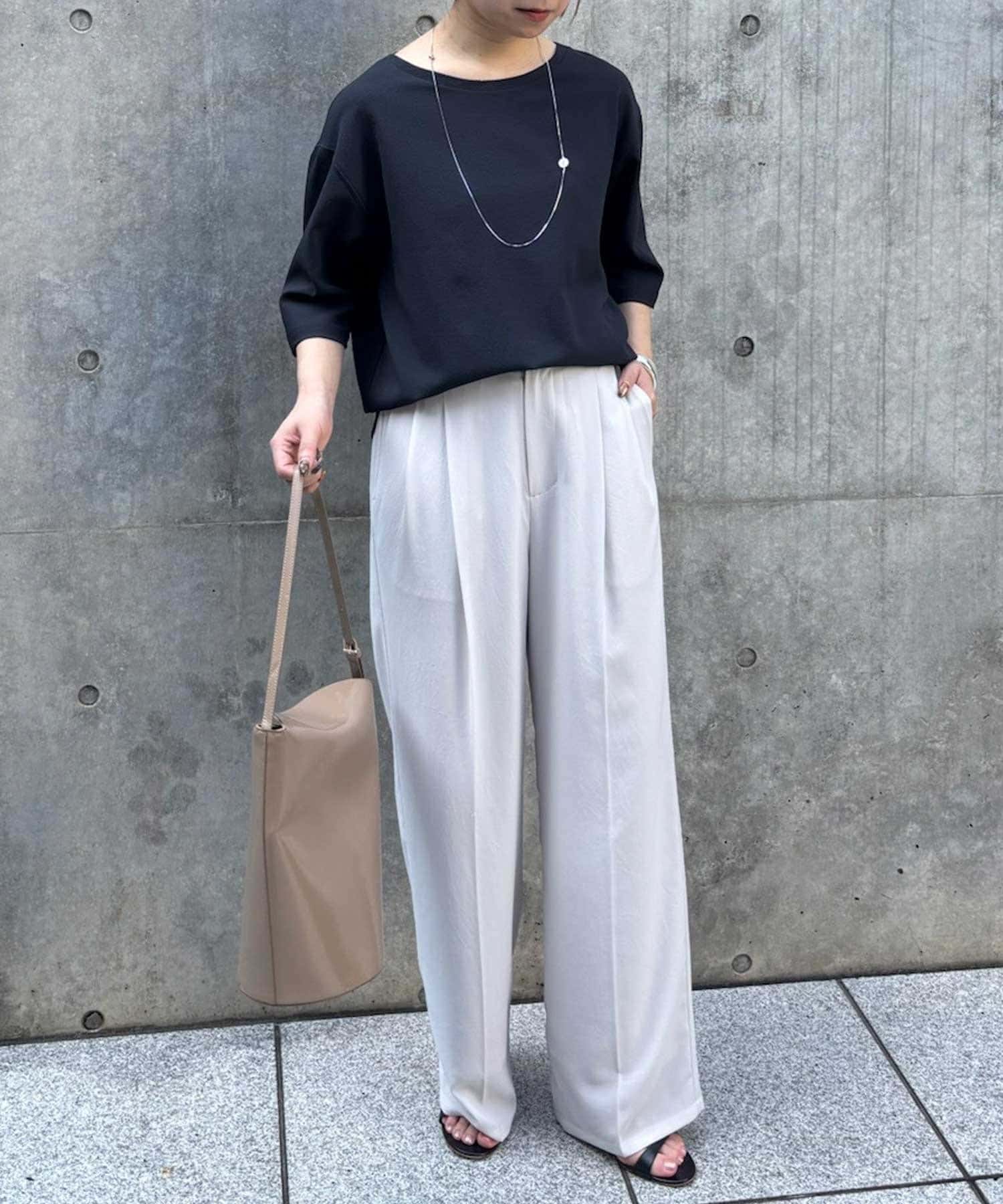 ●表情のある生地でカットソーのような着易さときちんと見えが両立する万能ブラウス。