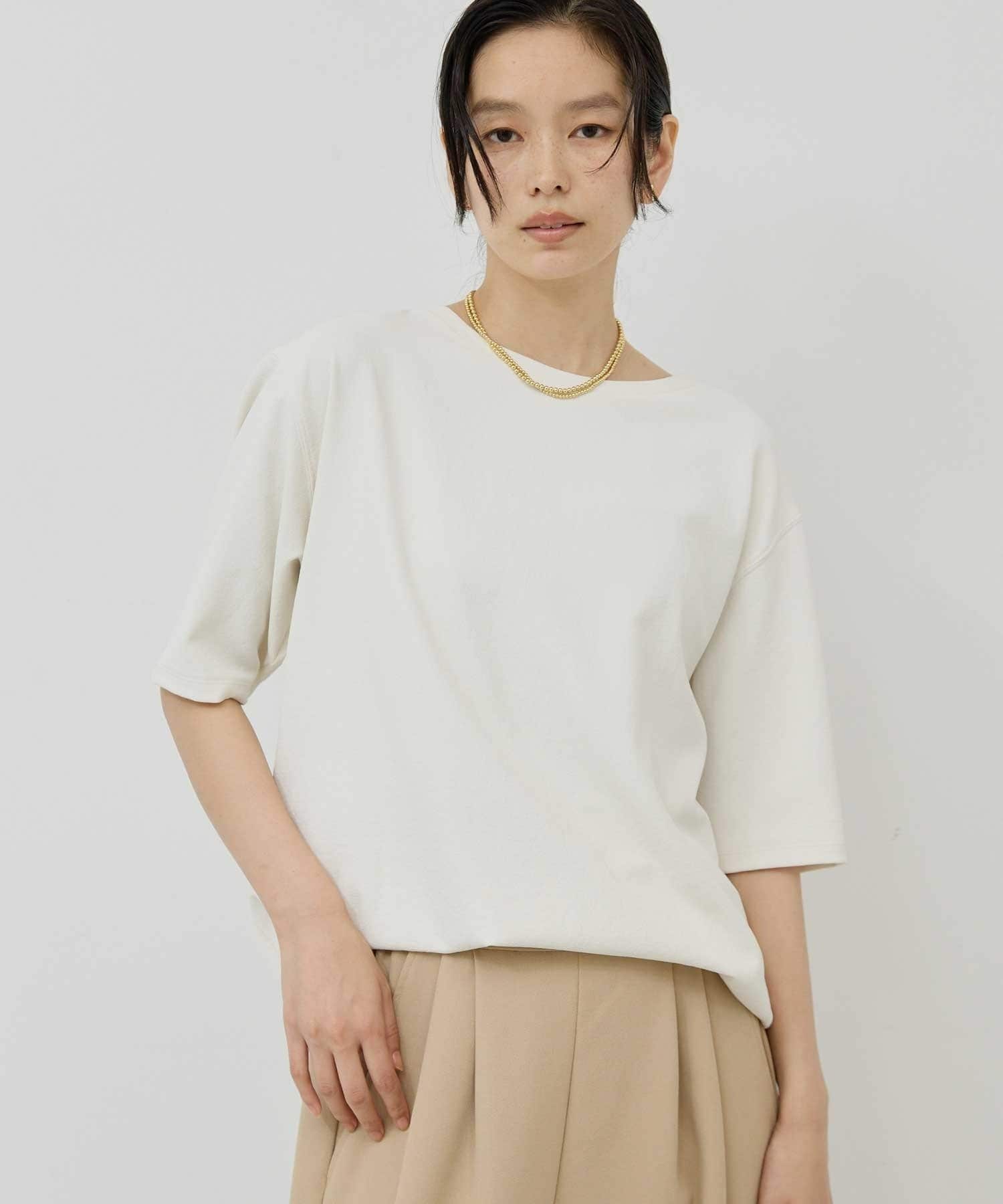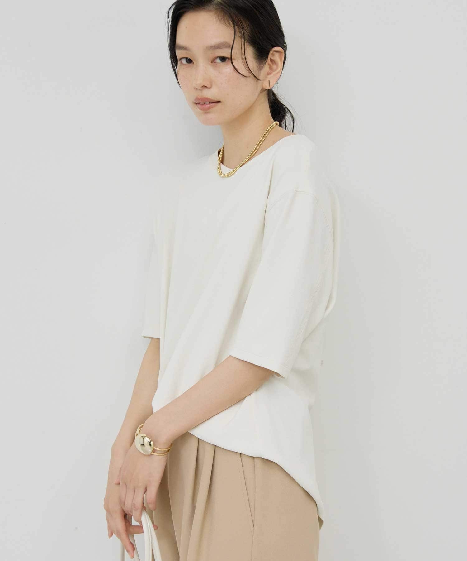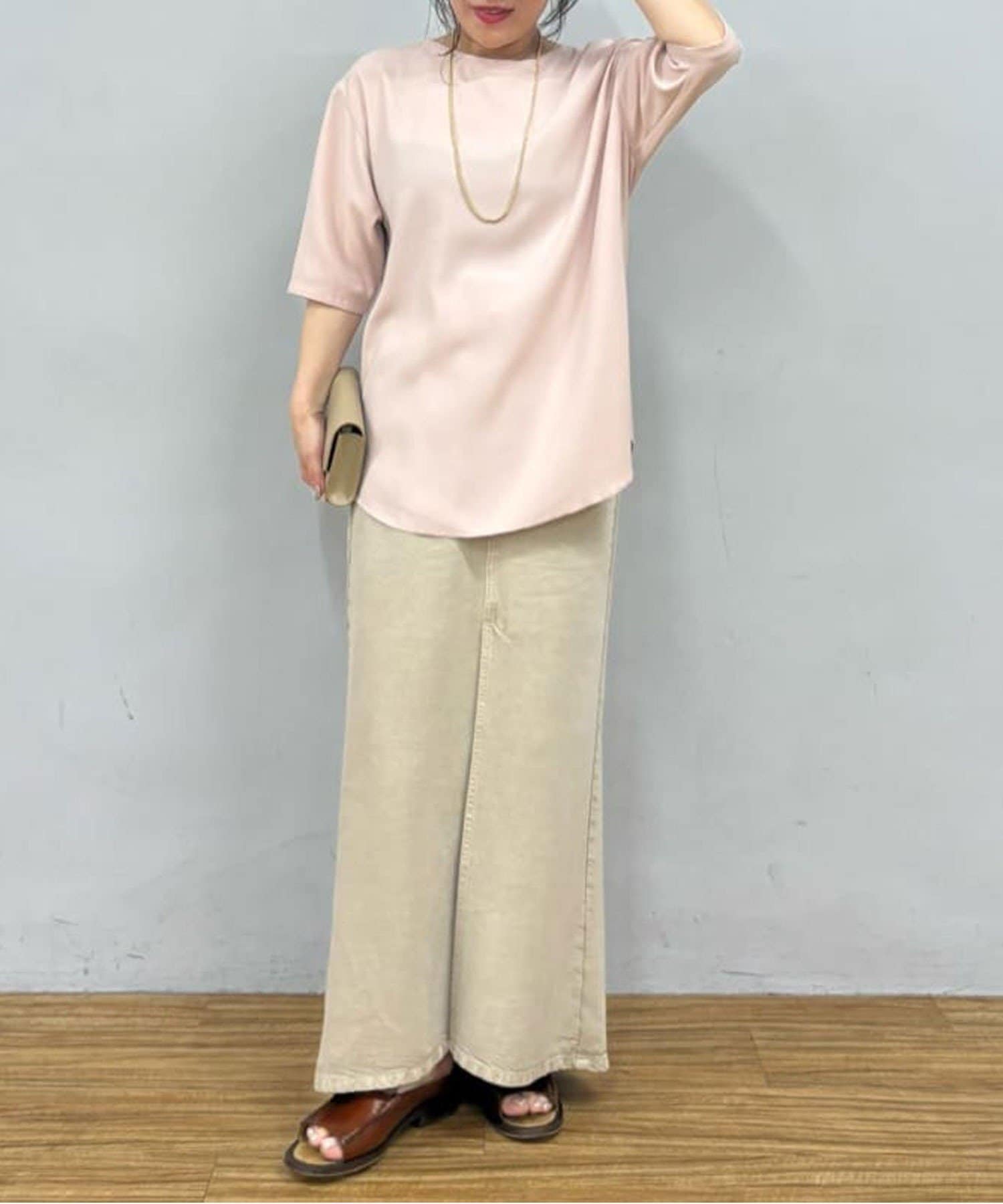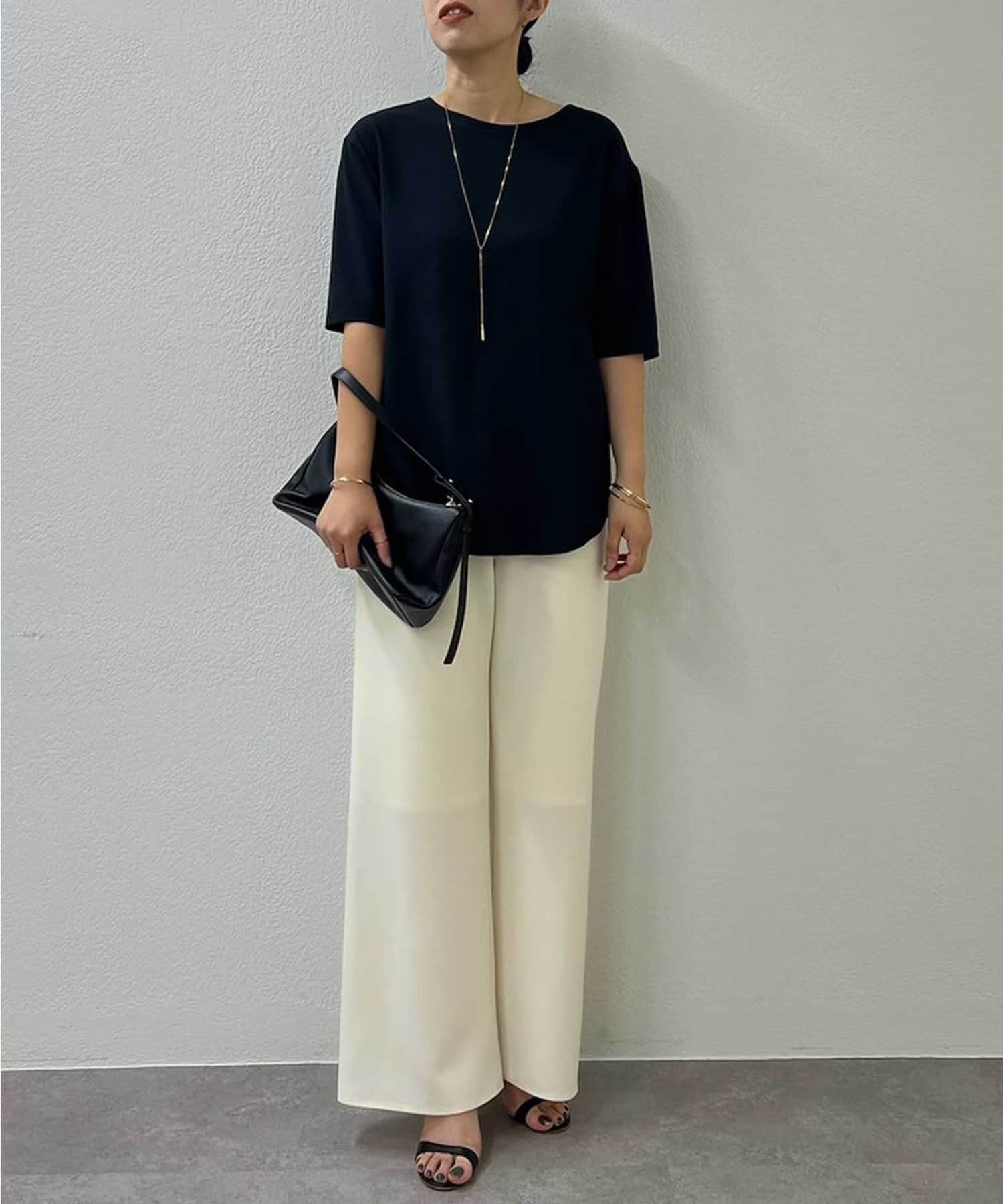 ●表情のある生地でカットソーのような着易さときちんと見えが両立する万能ブラウス。