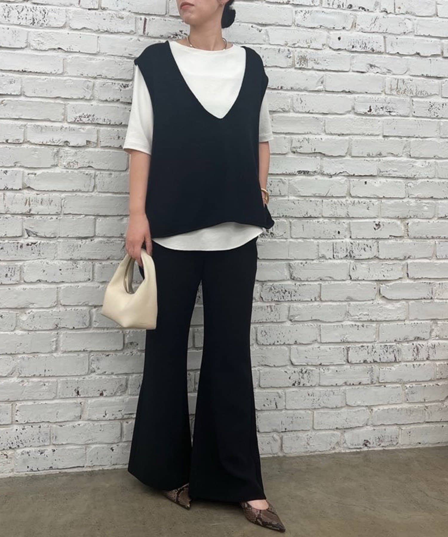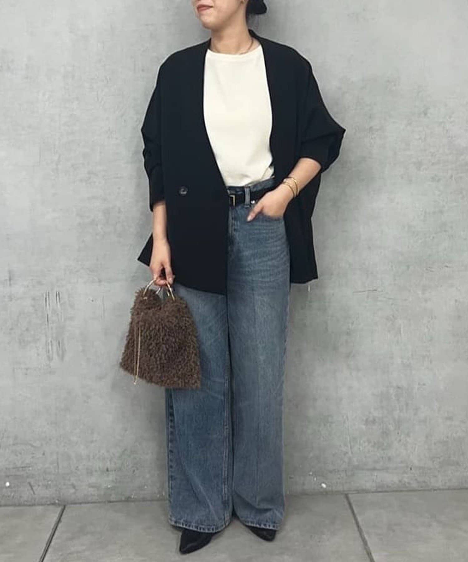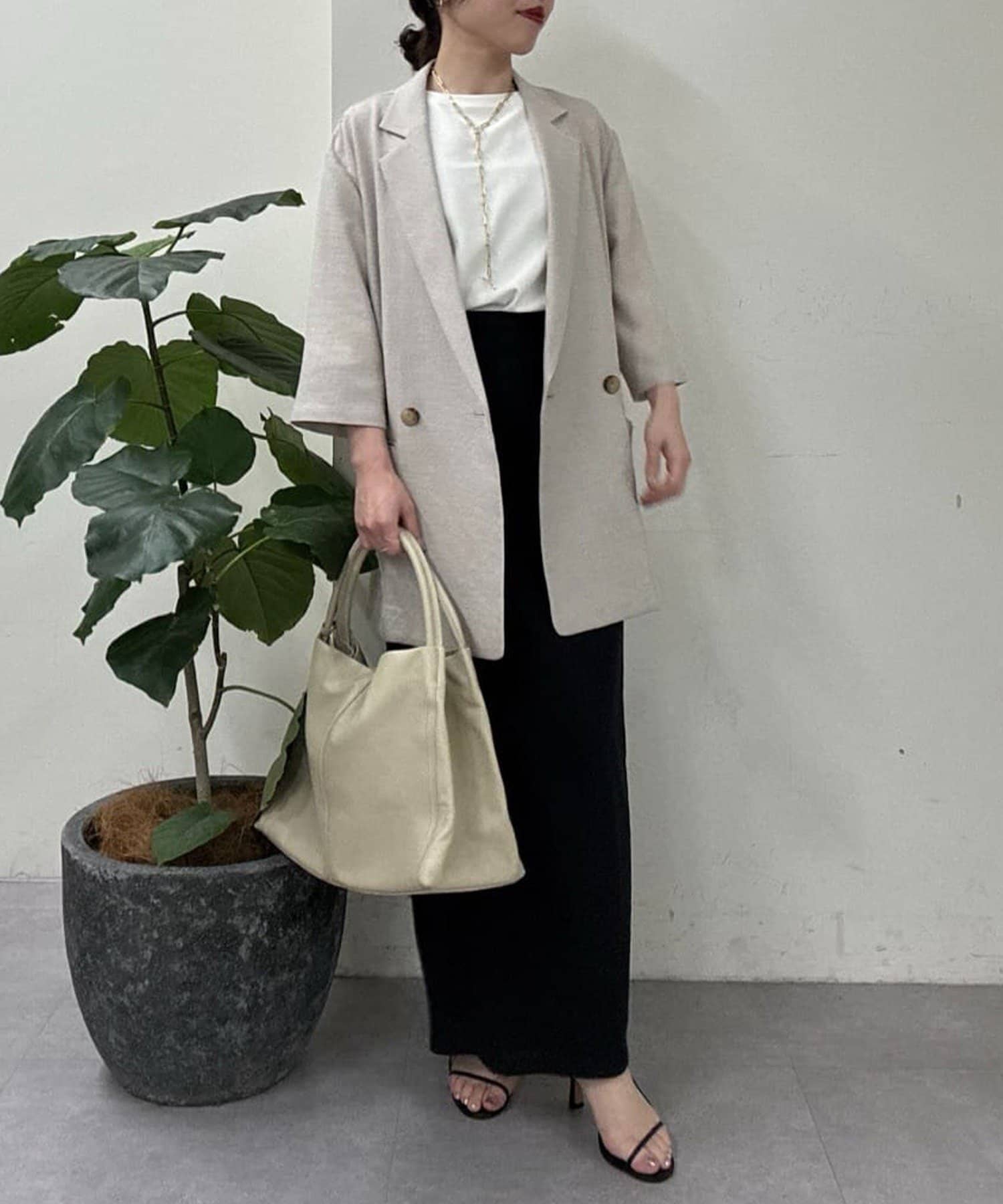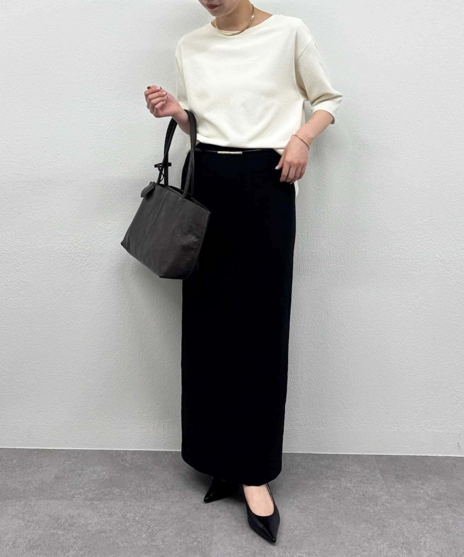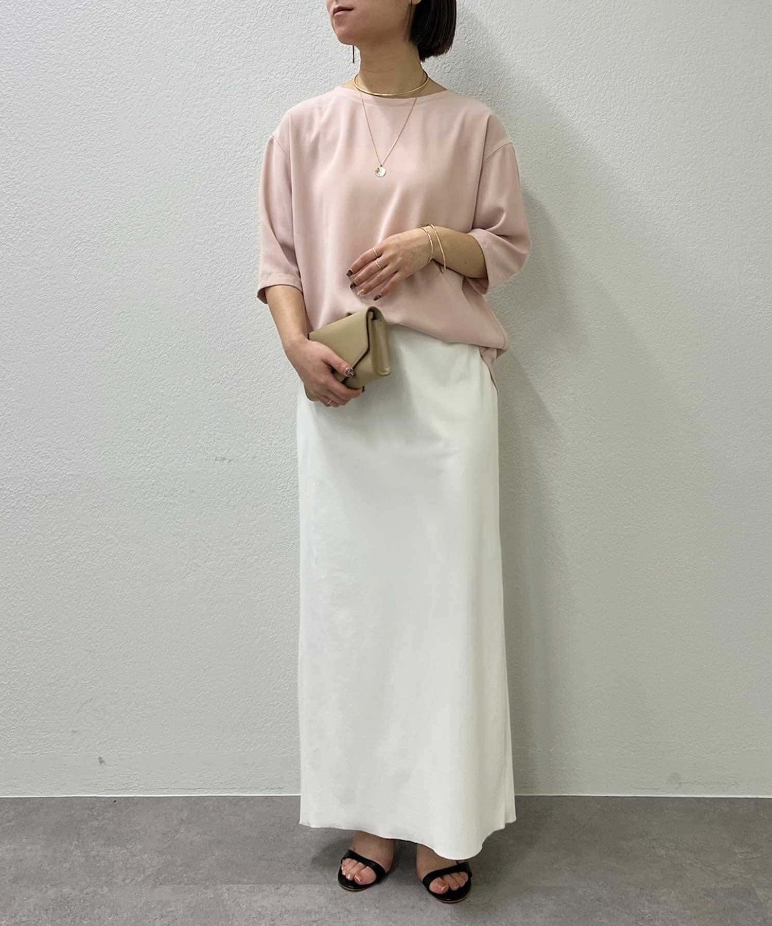 ●表情のある生地でカットソーのような着易さときちんと見えが両立する万能ブラウス。