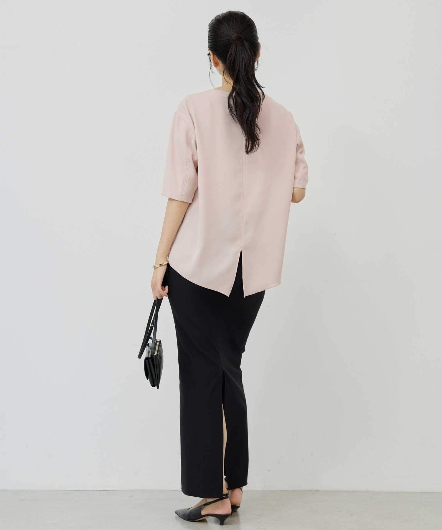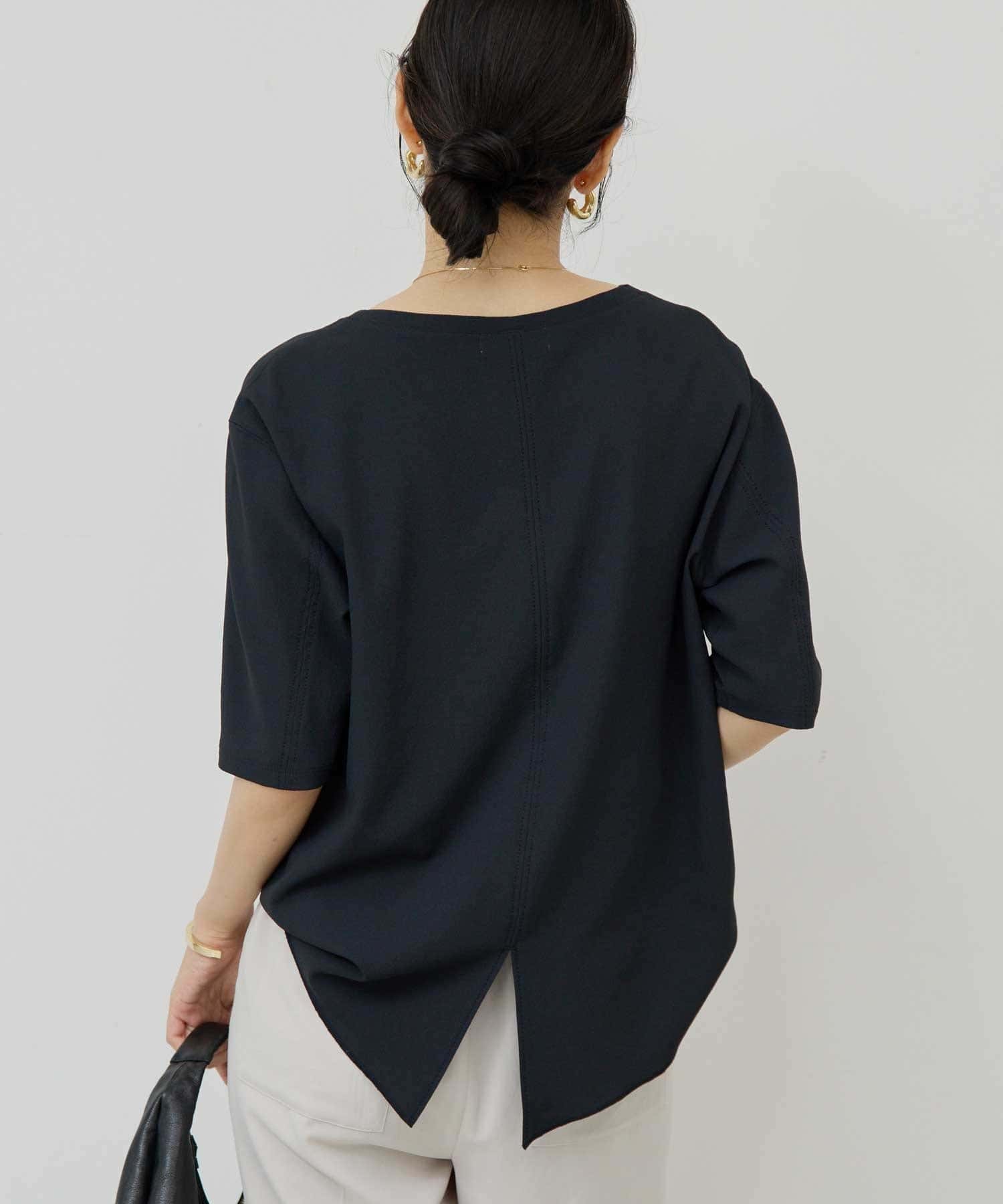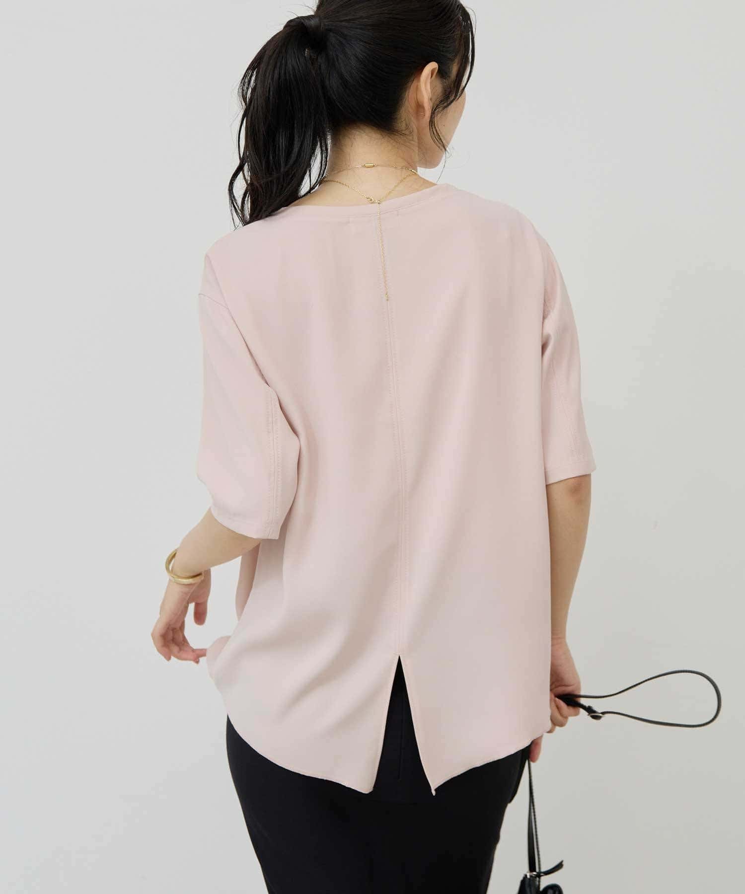 【人気万能ブラウスに半袖ver.登場】【接触冷感/速乾で快適!】バックスリットハーフスリーブブラウス
