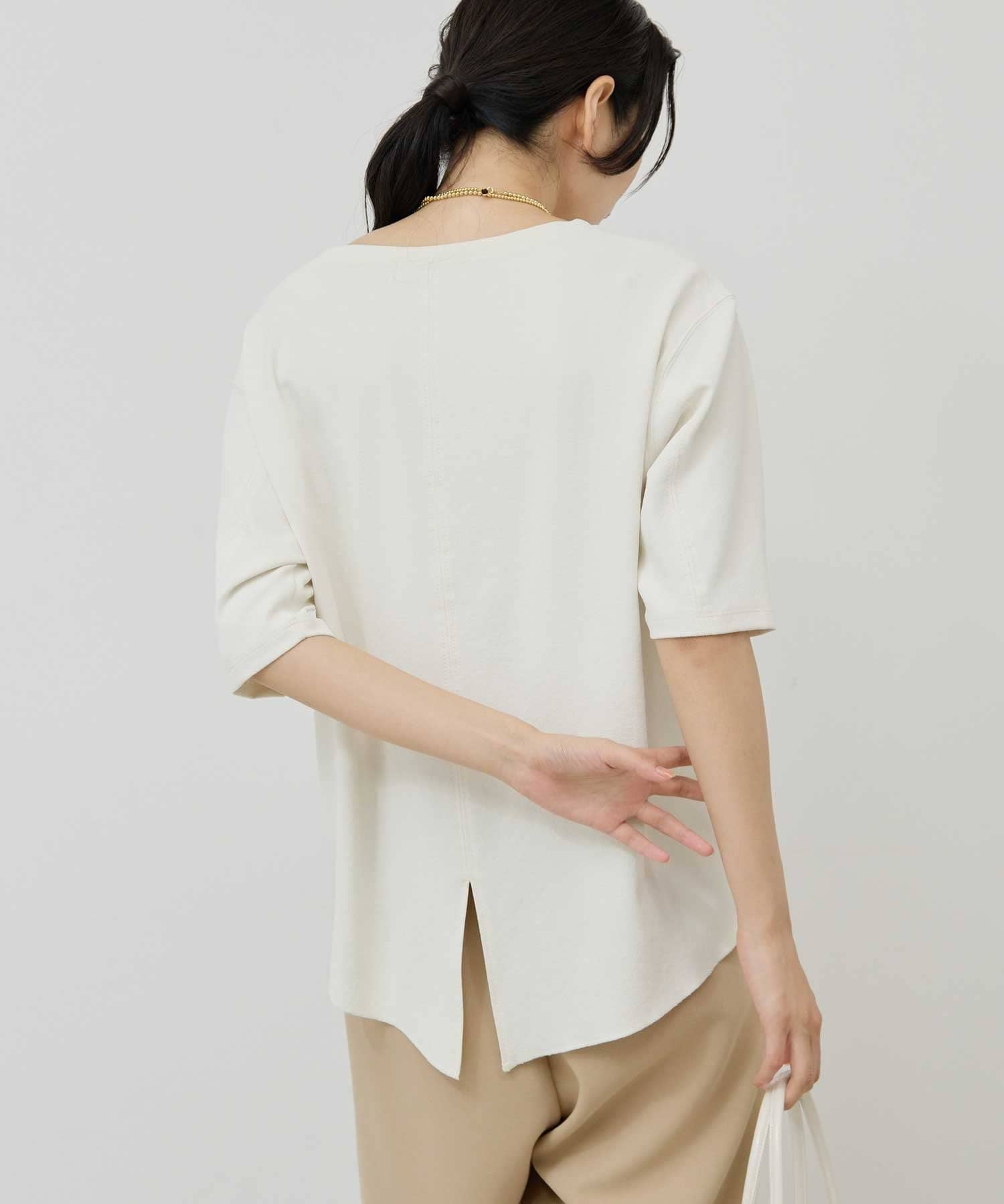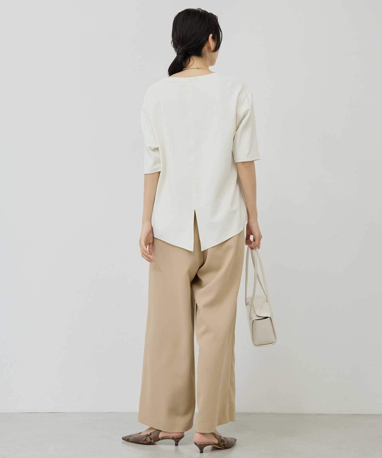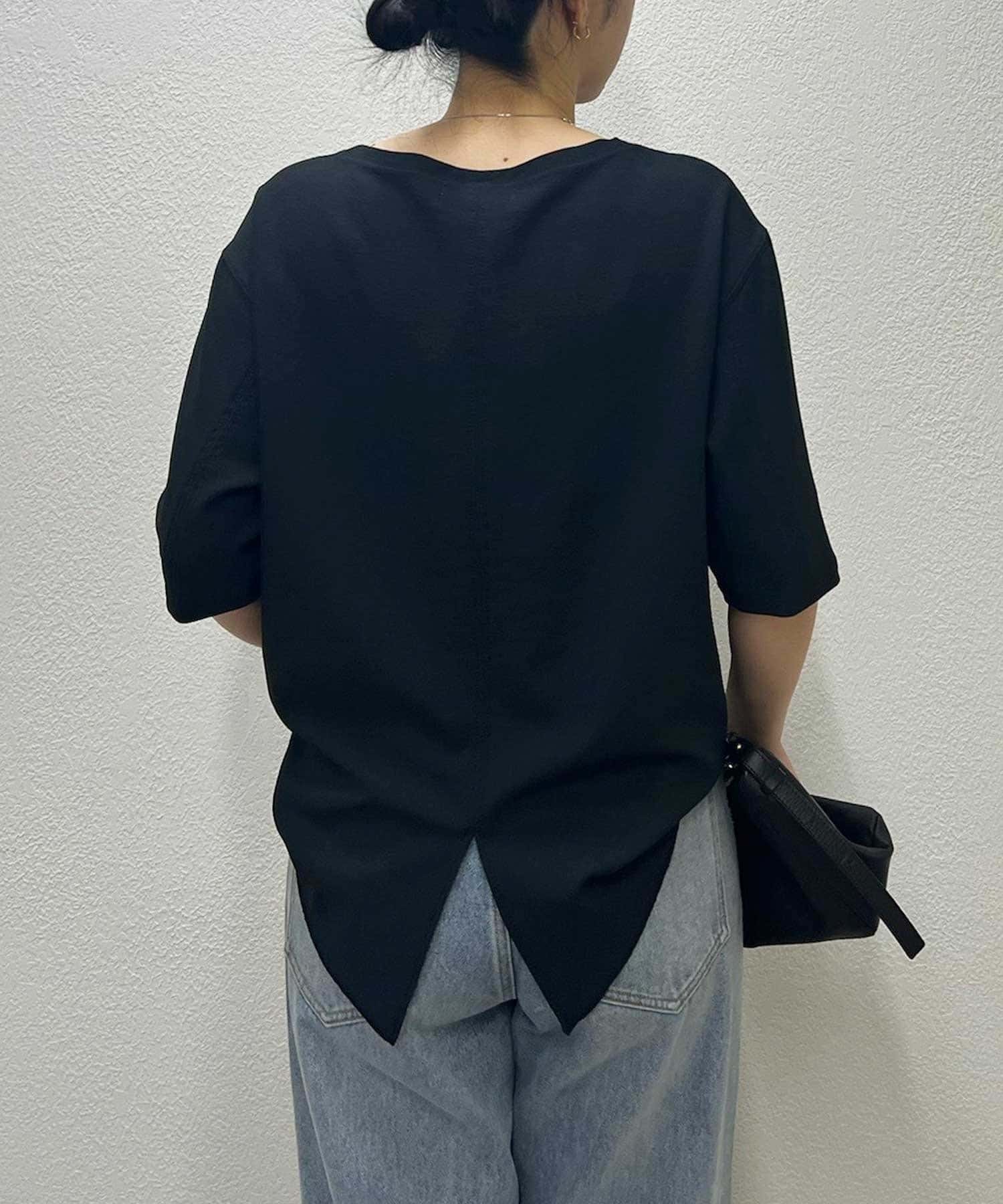 【人気万能ブラウスに半袖ver.登場】【接触冷感/速乾で快適!】バックスリットハーフスリーブブラウス
