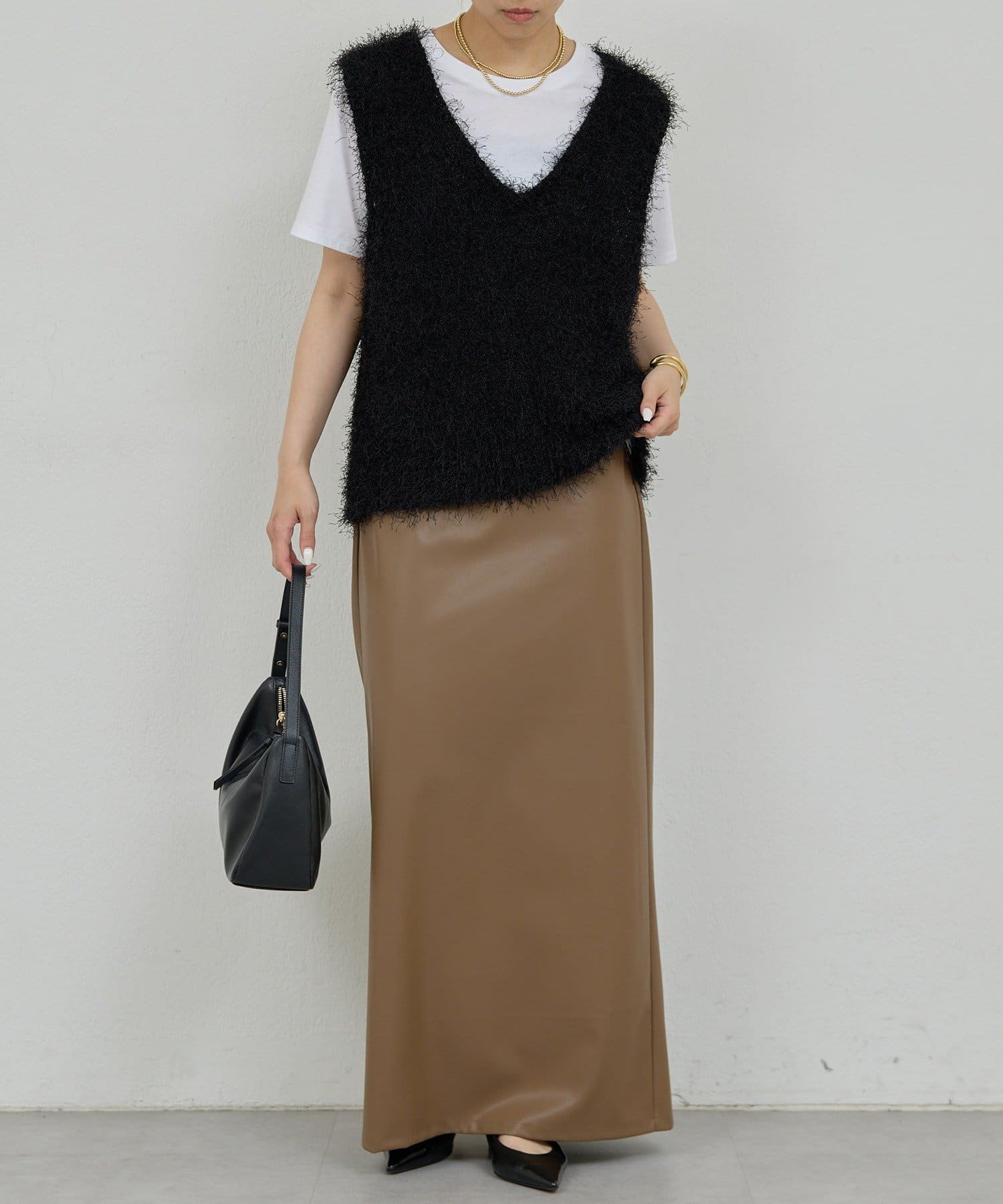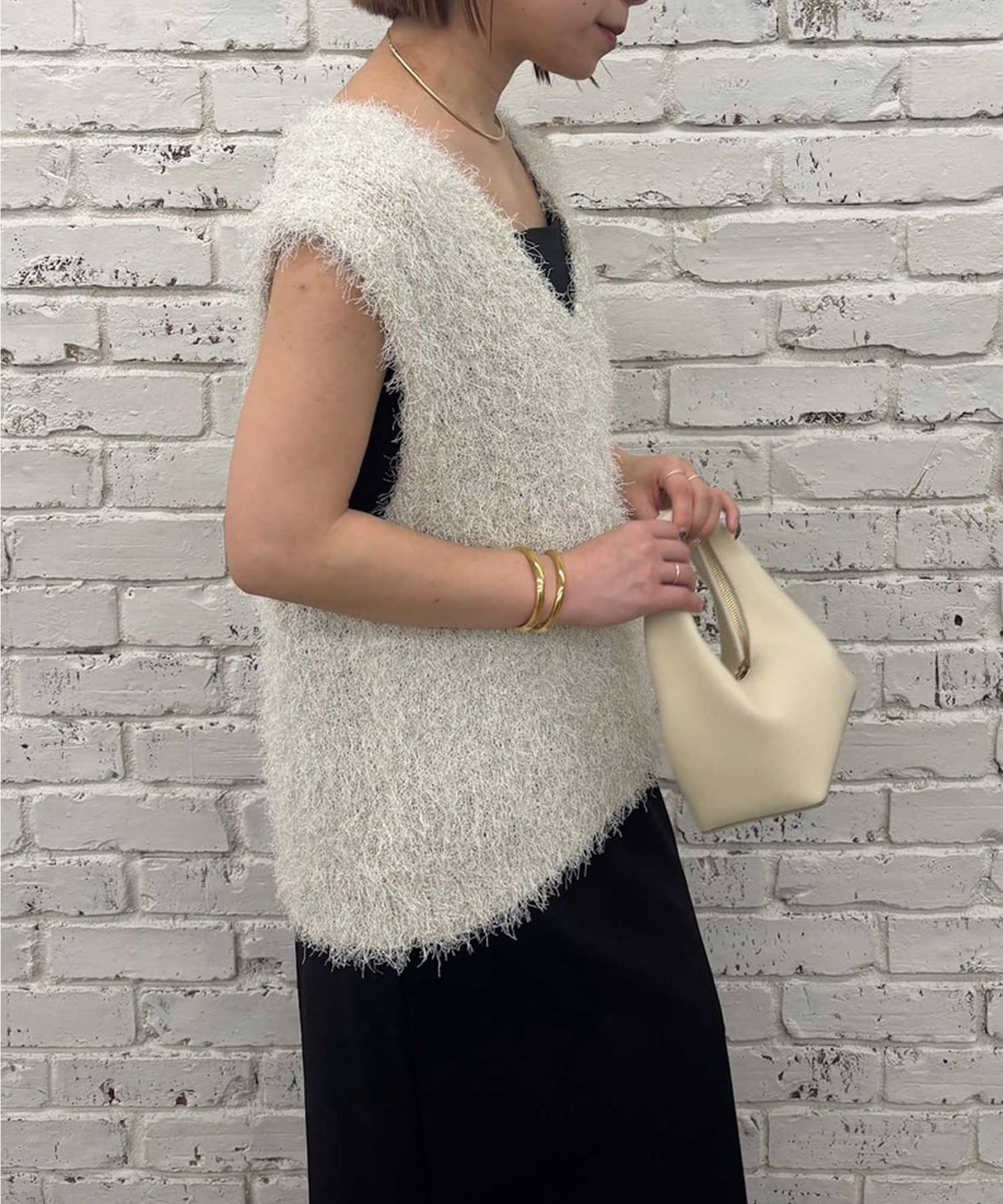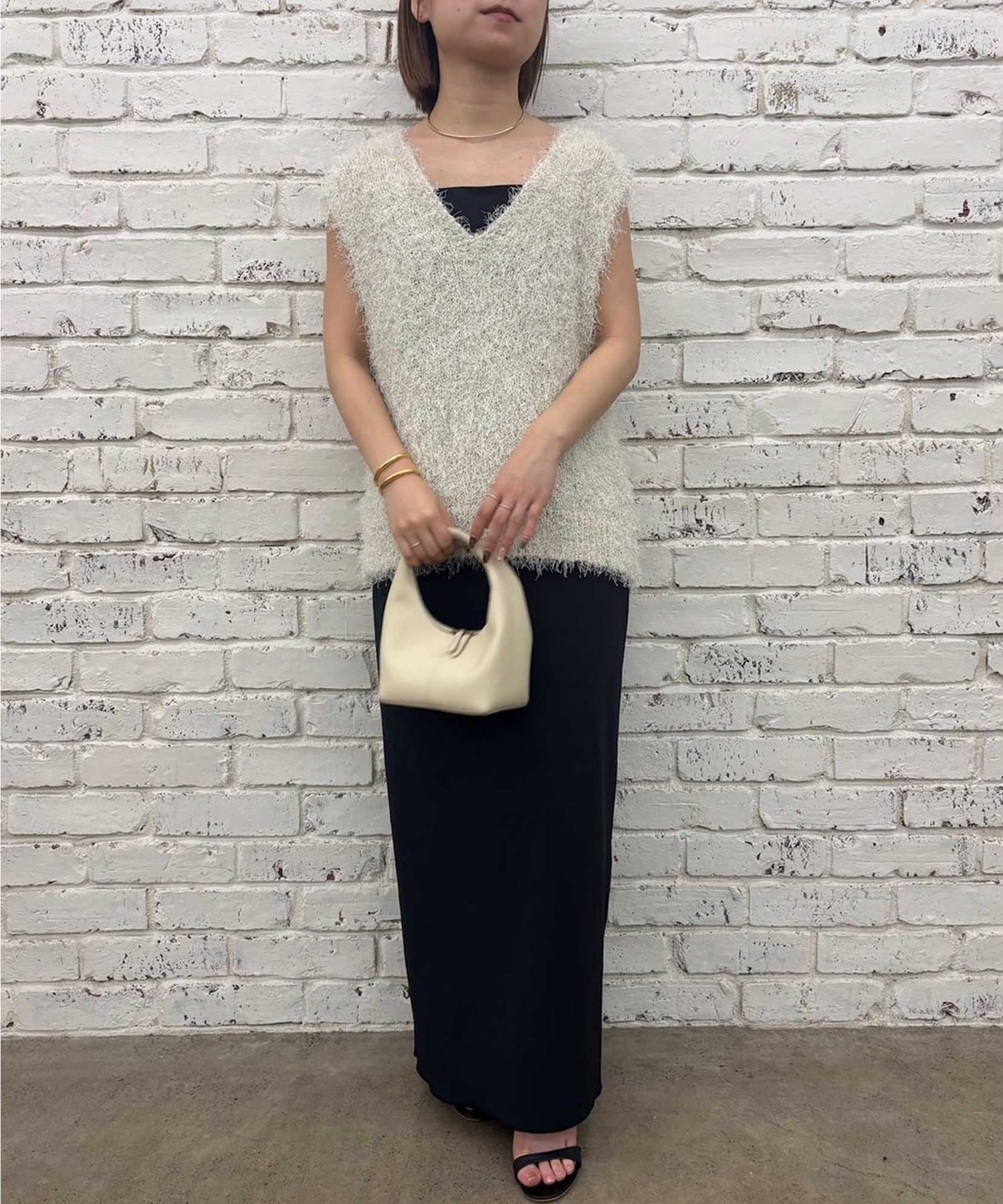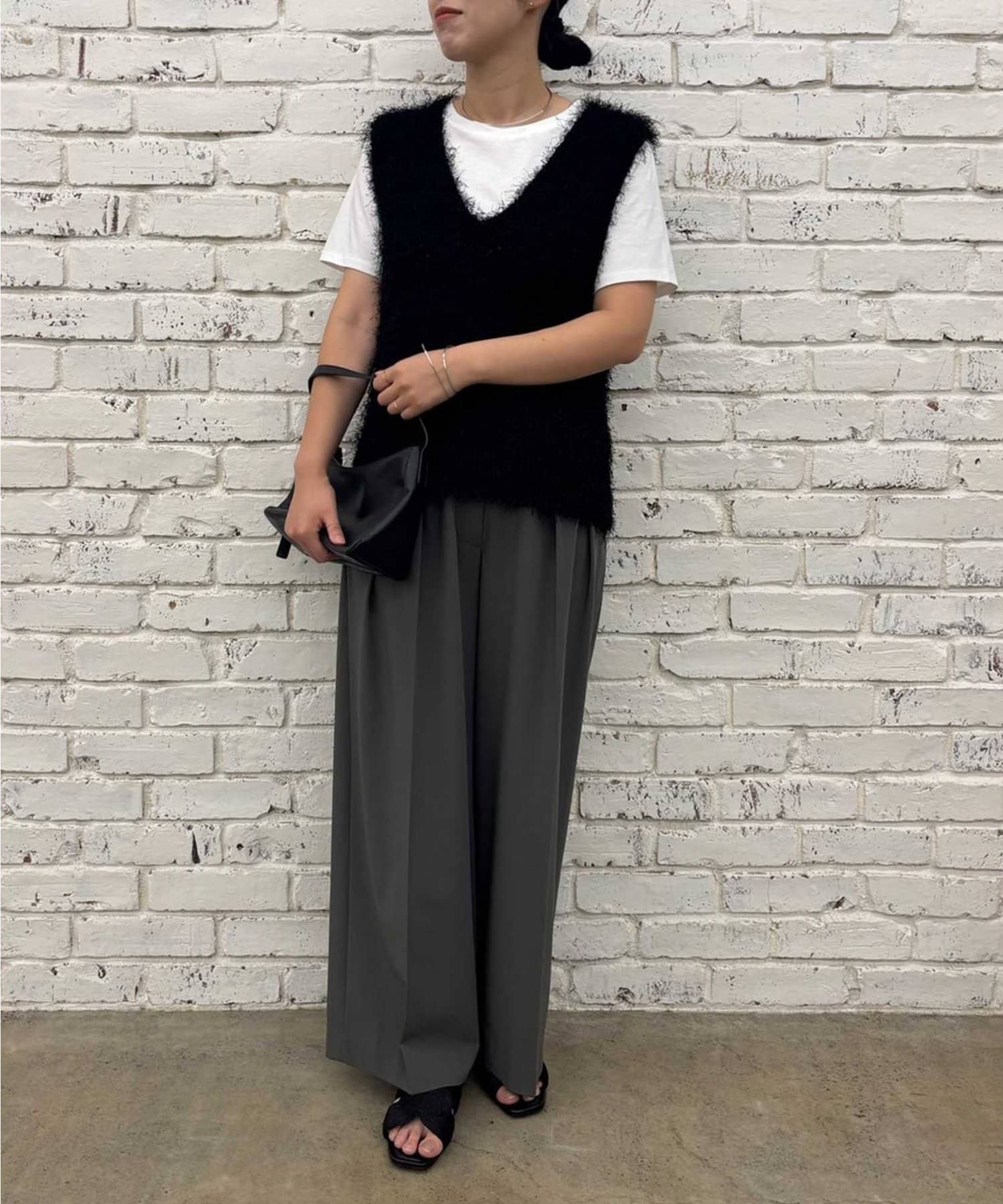 ●毛足が細めなシャギー素材はいつものスタイルを上品見えさせるアイテム。