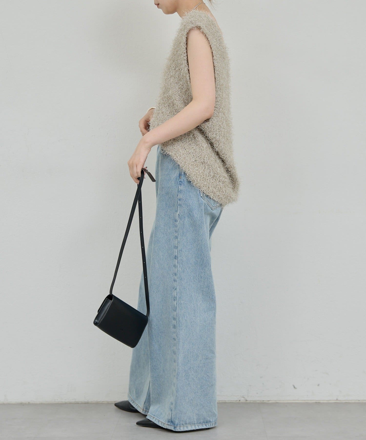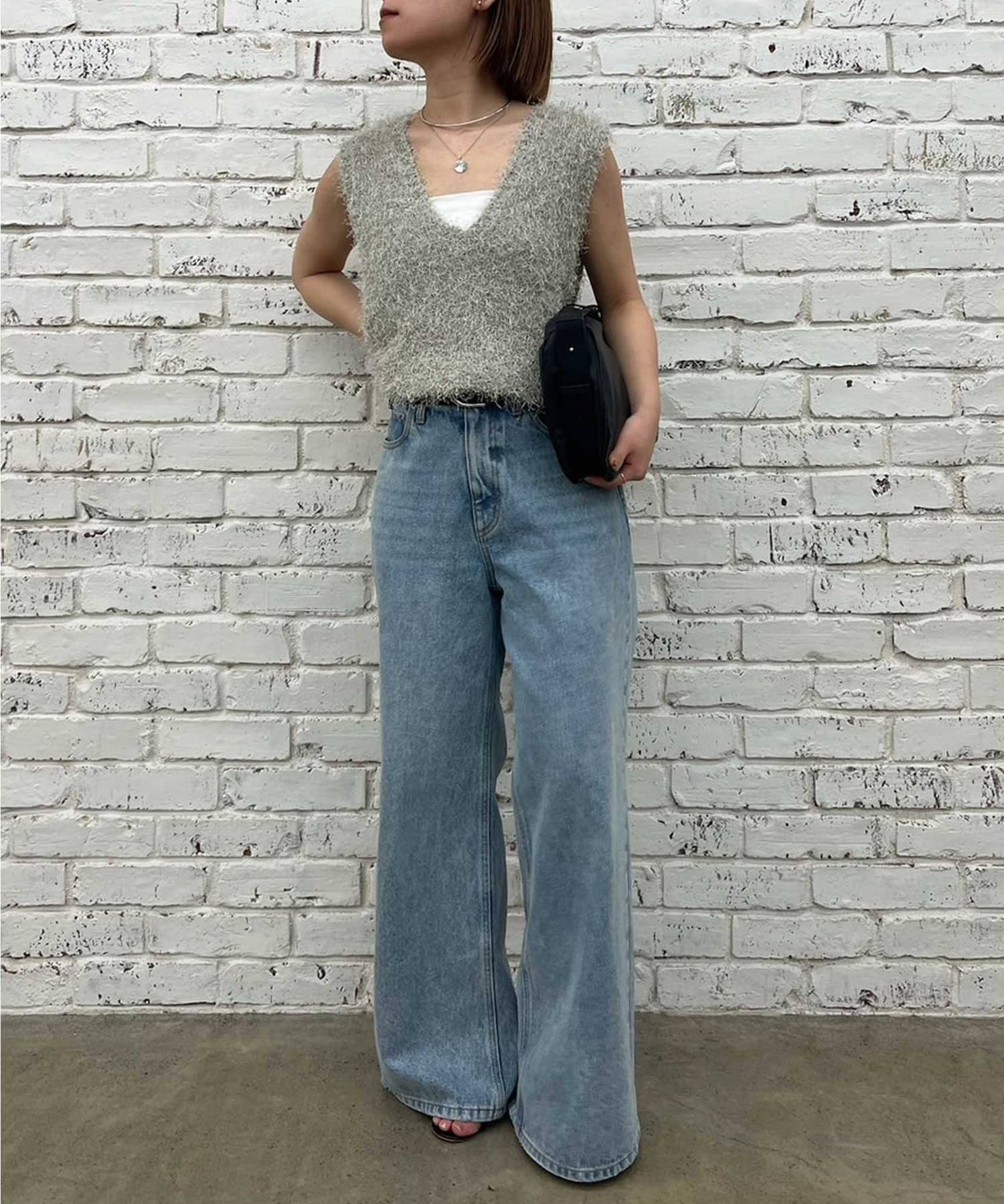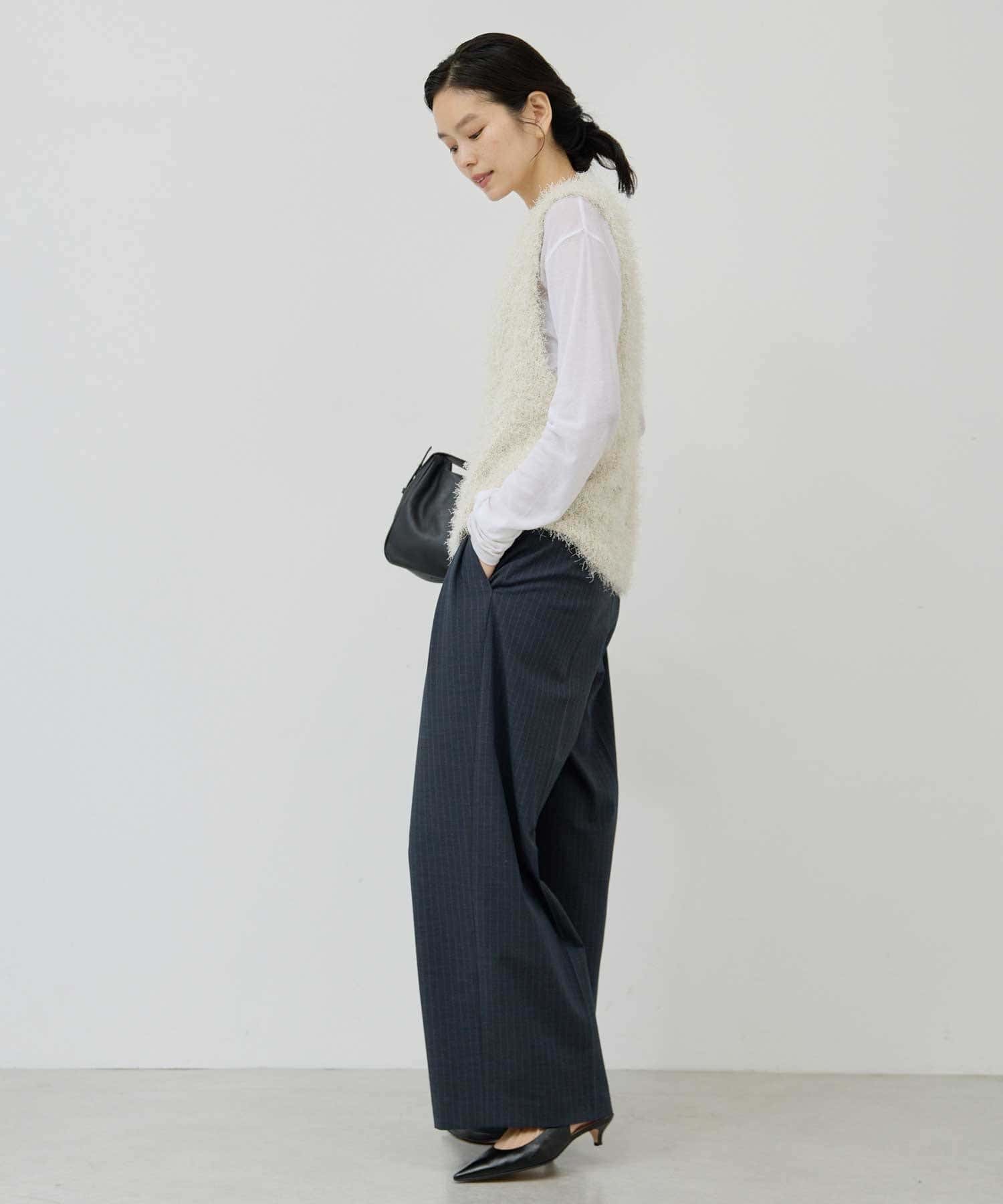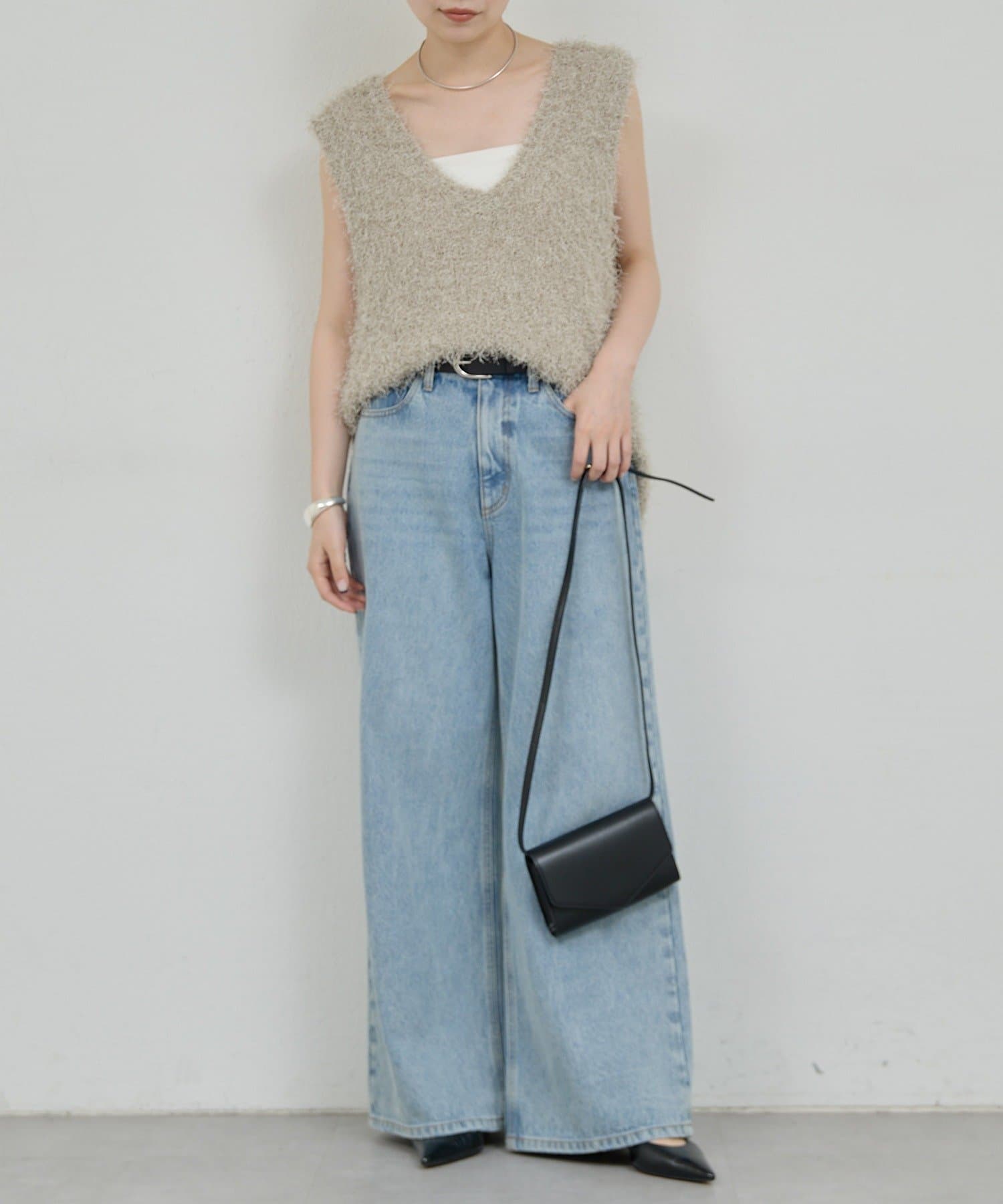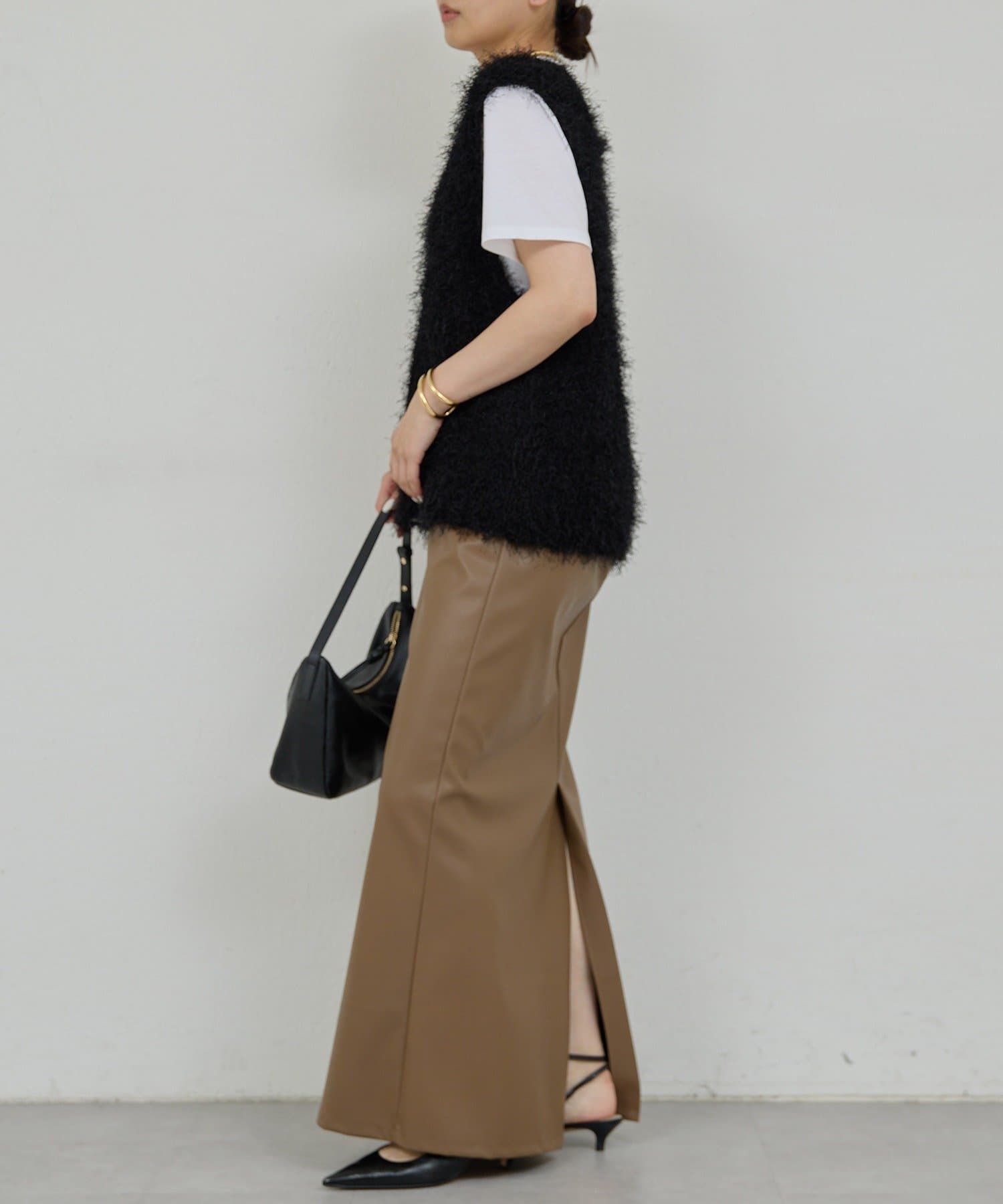 ●毛足が細めなシャギー素材はいつものスタイルを上品見えさせるアイテム。