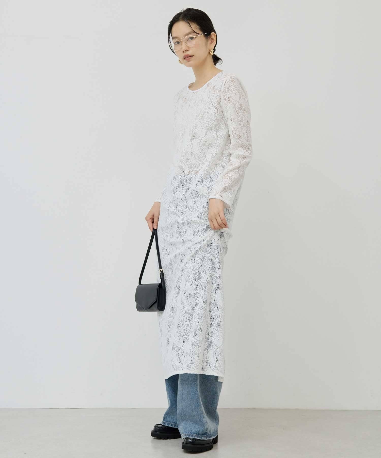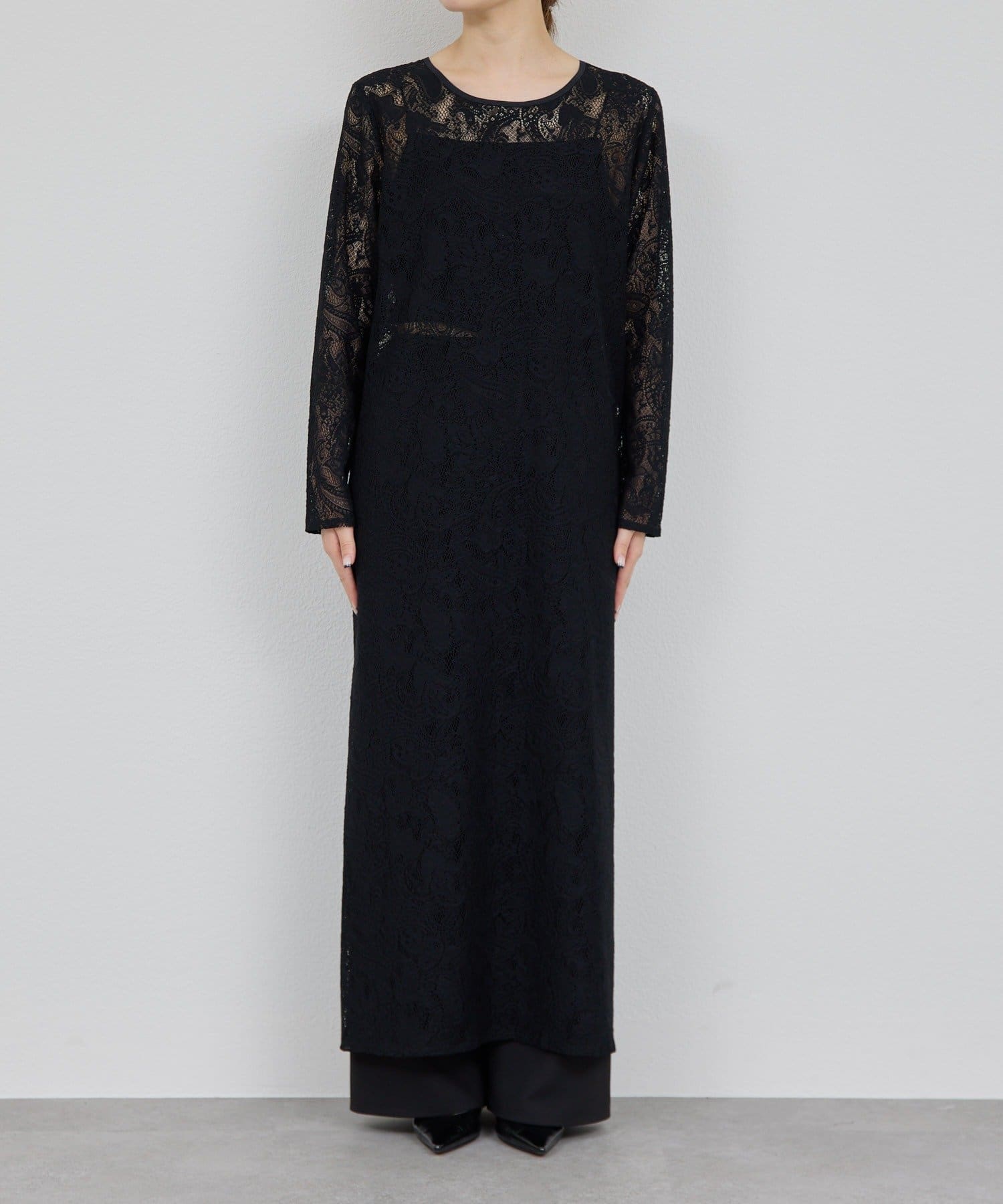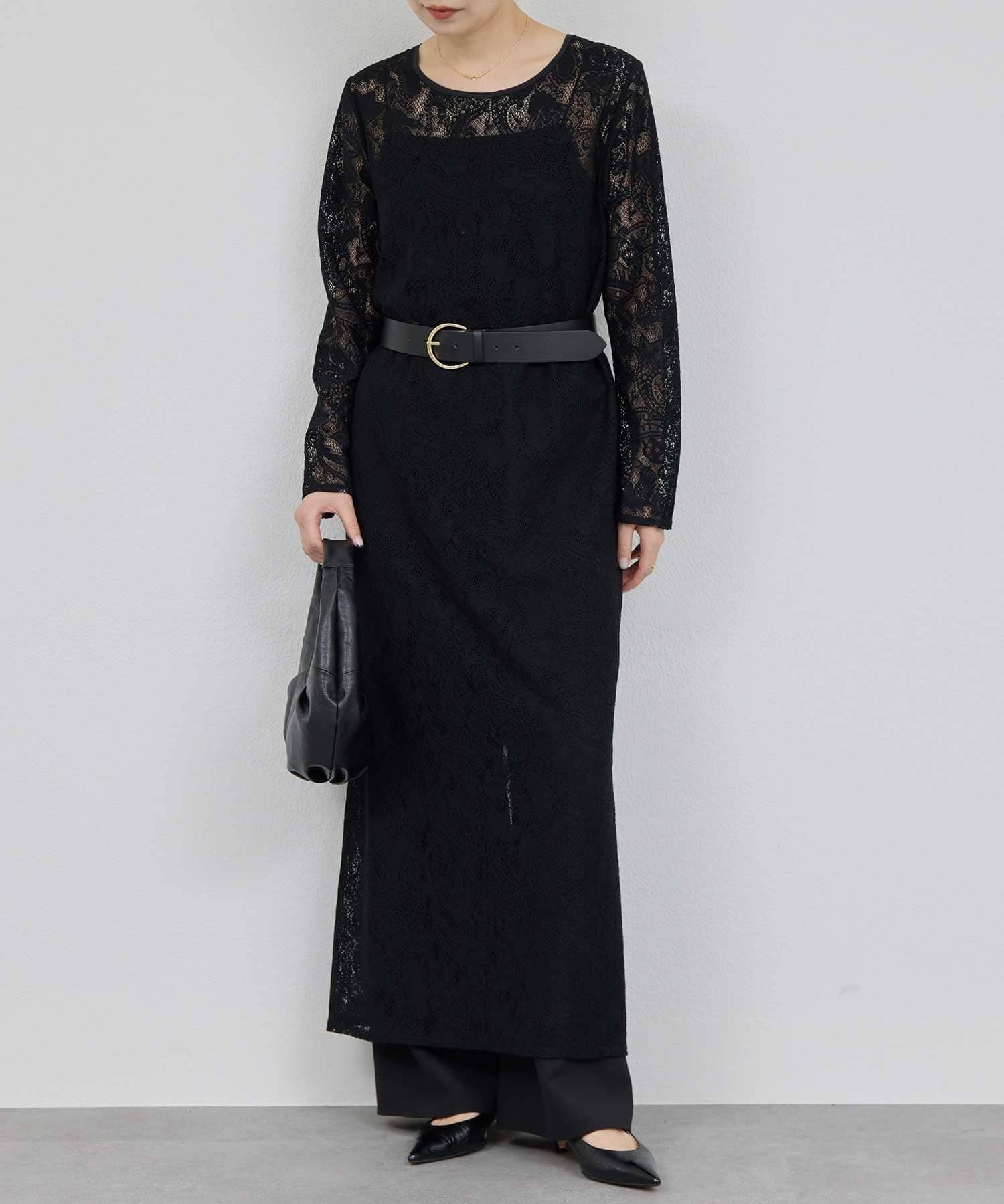 【シーンレス】【手洗い可能】ストレッチレースワンピース