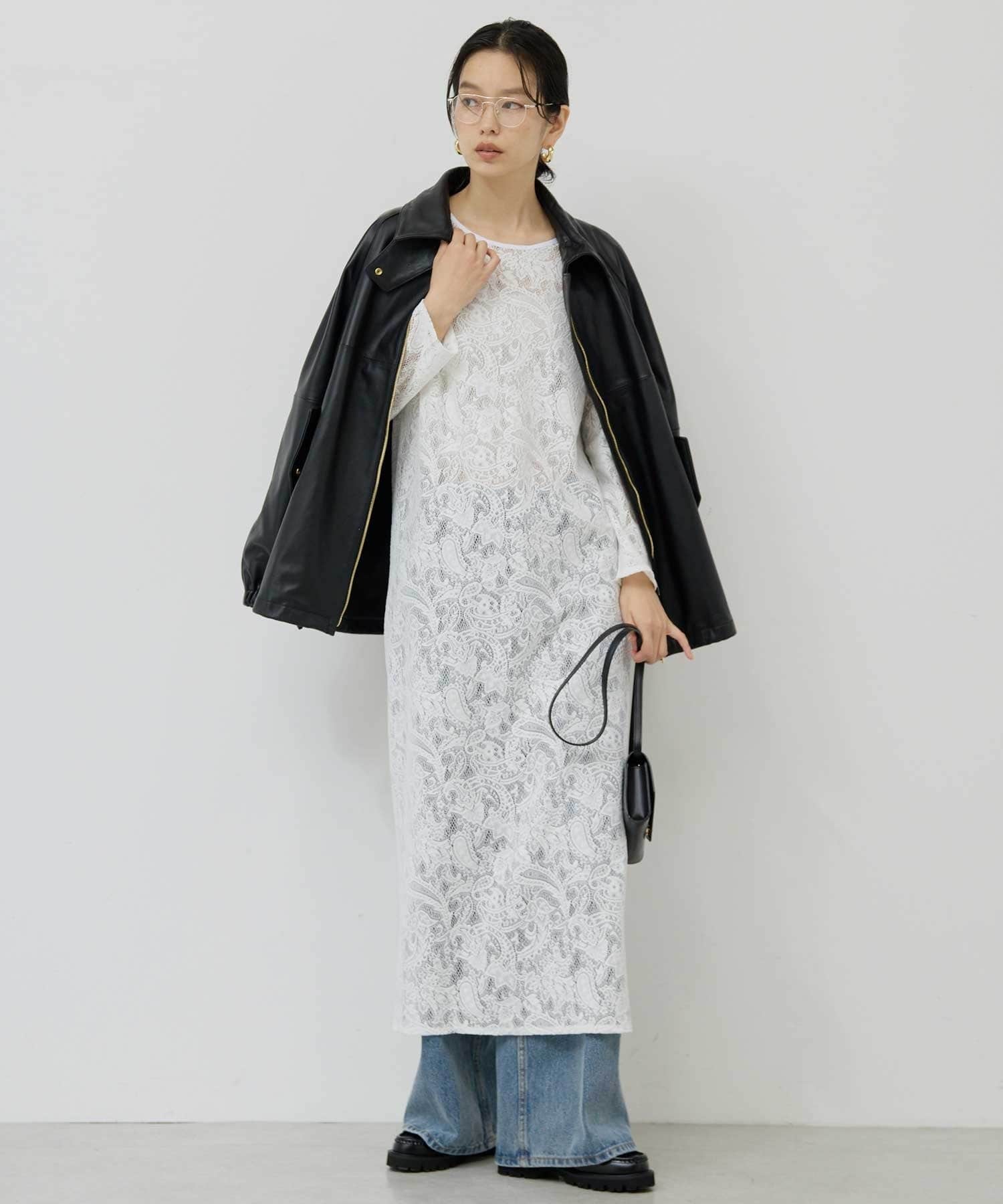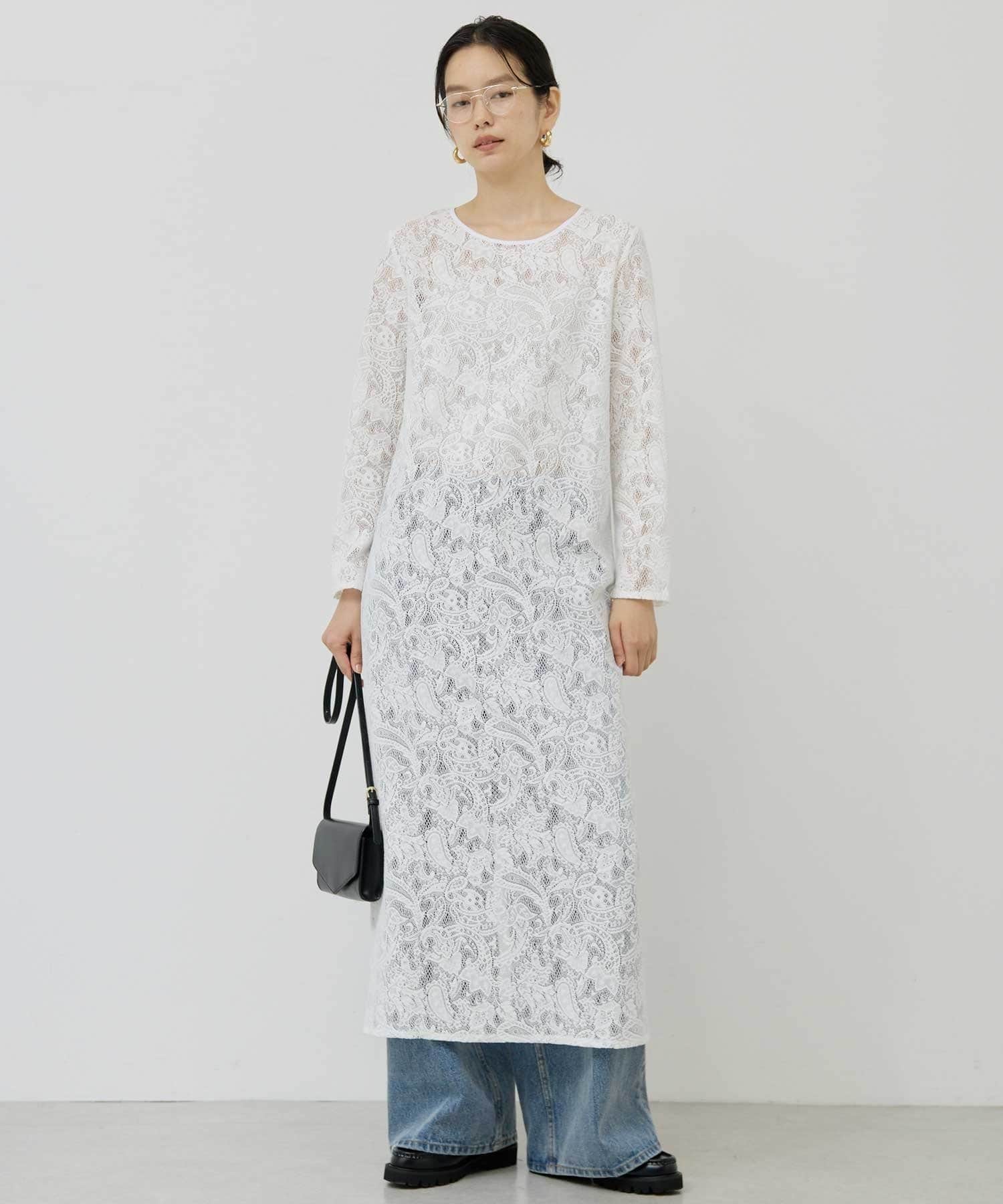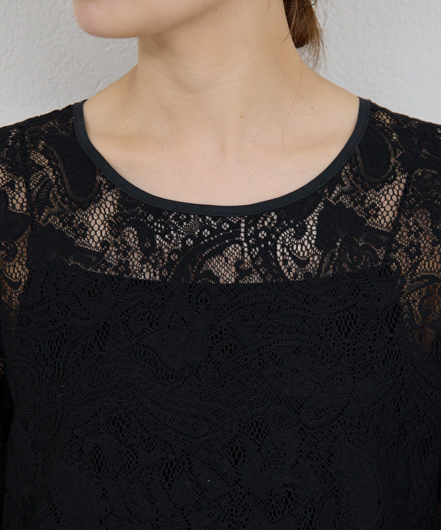 【シーンレス】【手洗い可能】ストレッチレースワンピース