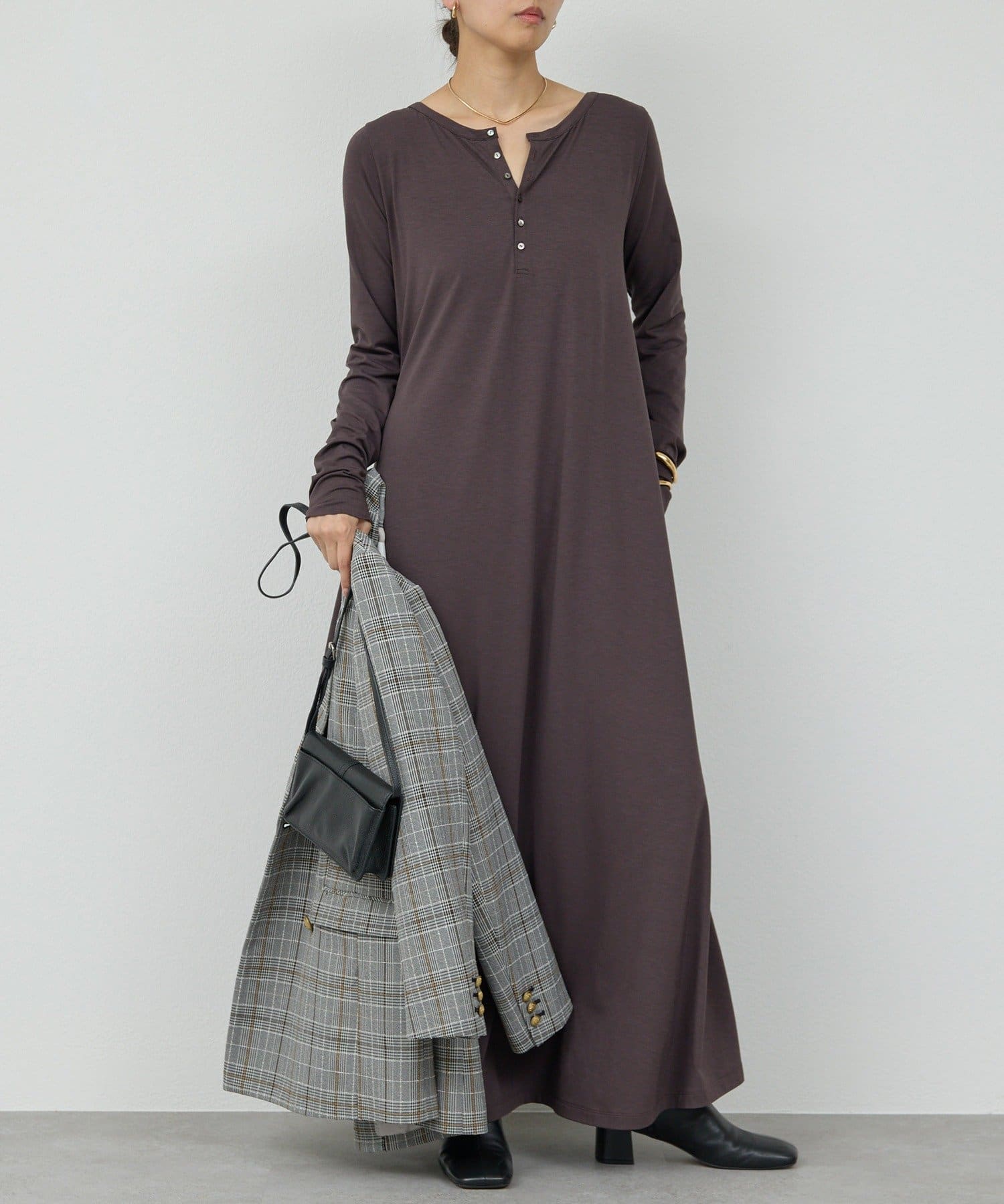 ●身体のラインを拾いすぎない美シルエット。