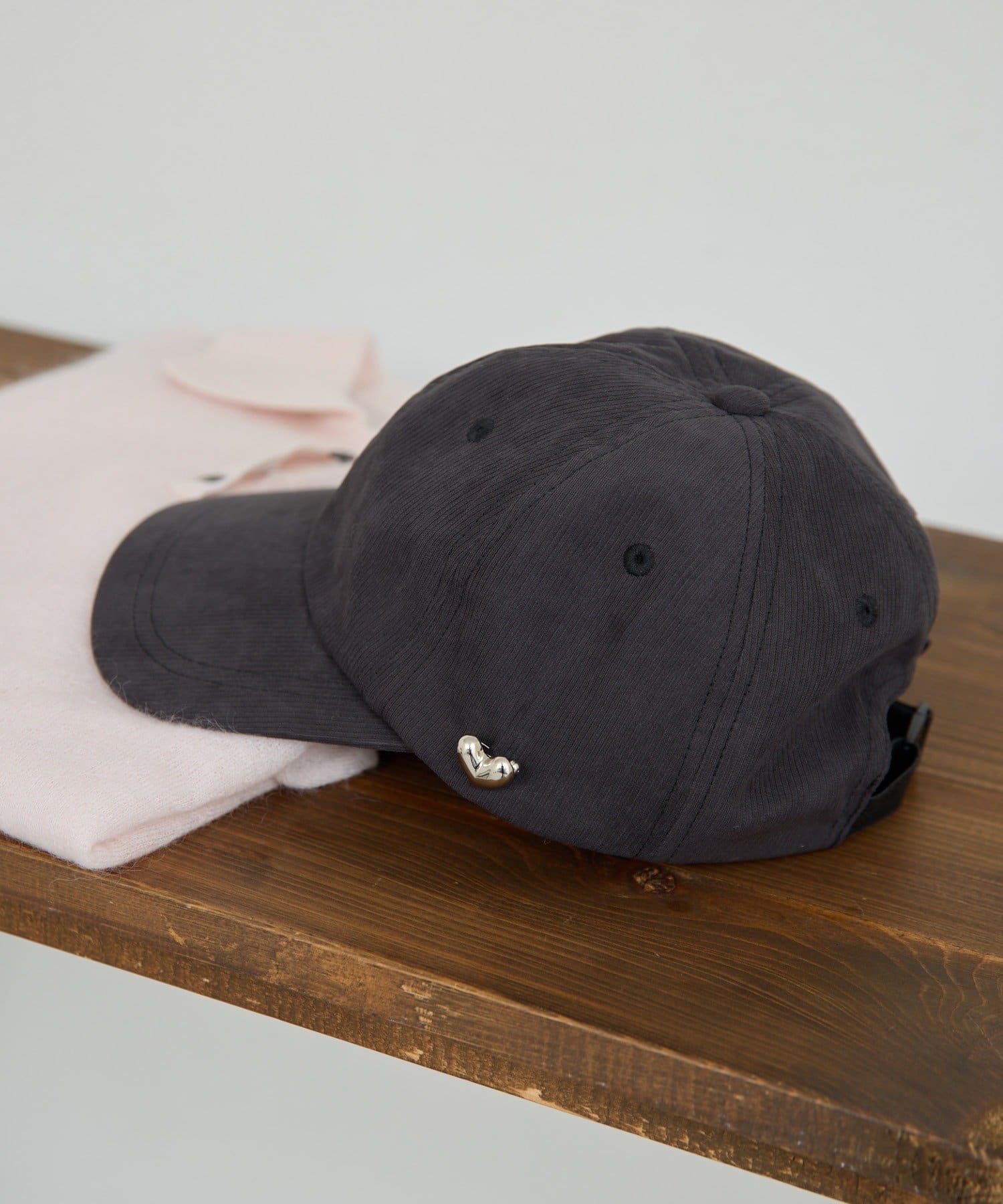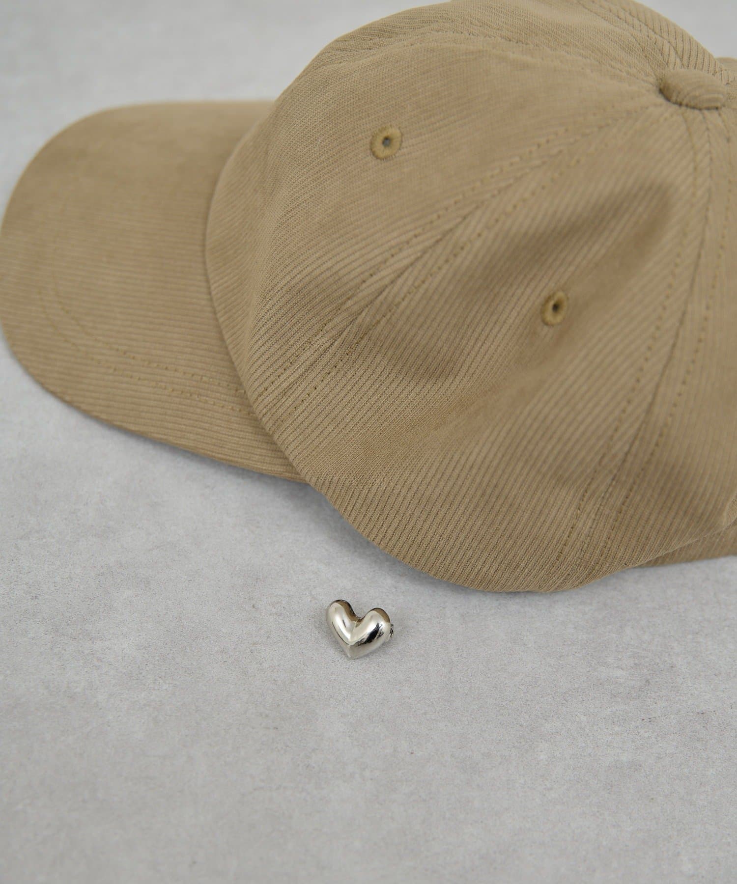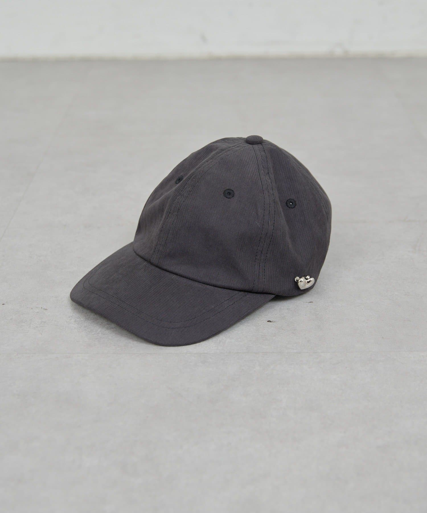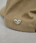 ハートモチーフのブローチがポイントになったキャップ