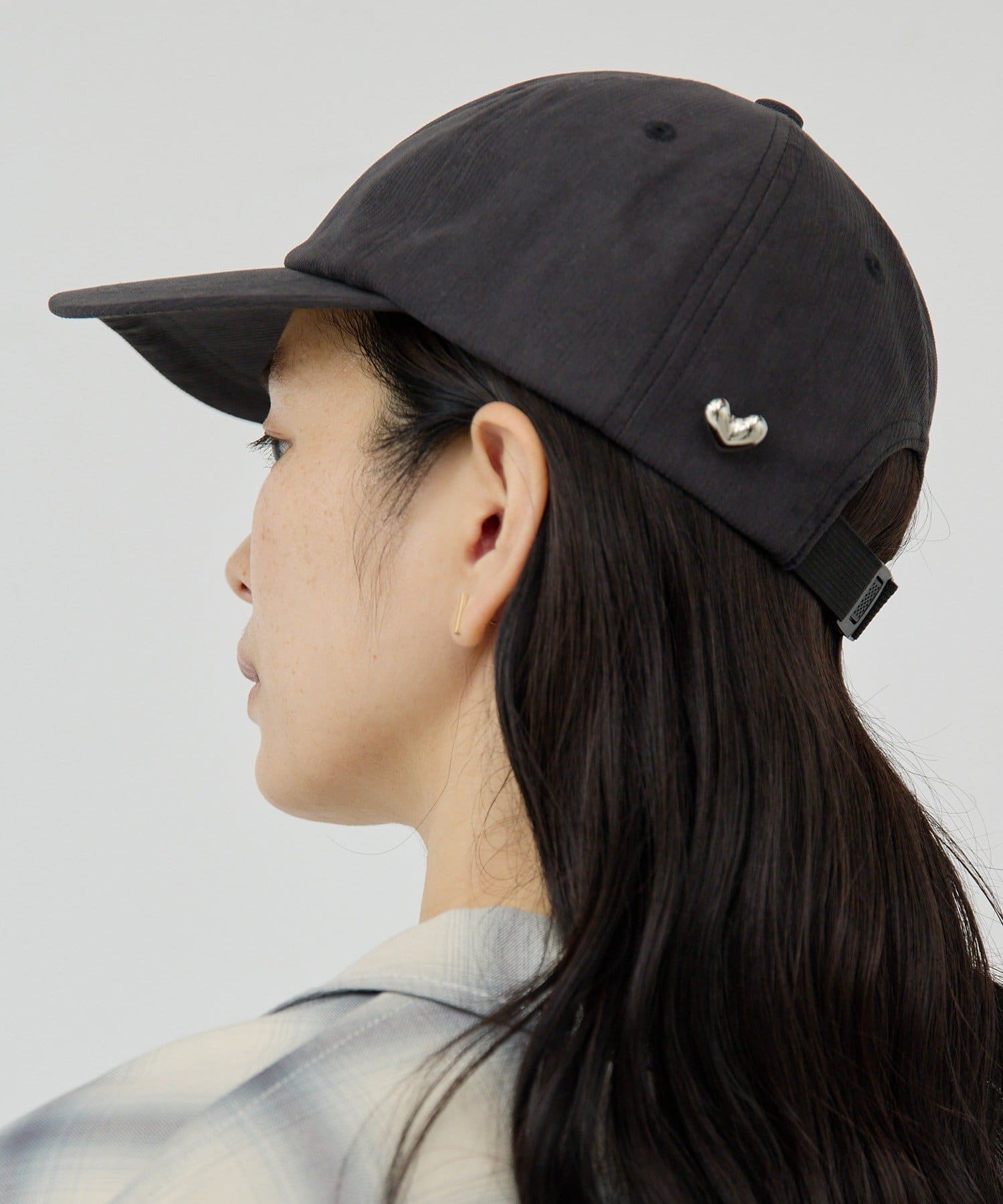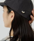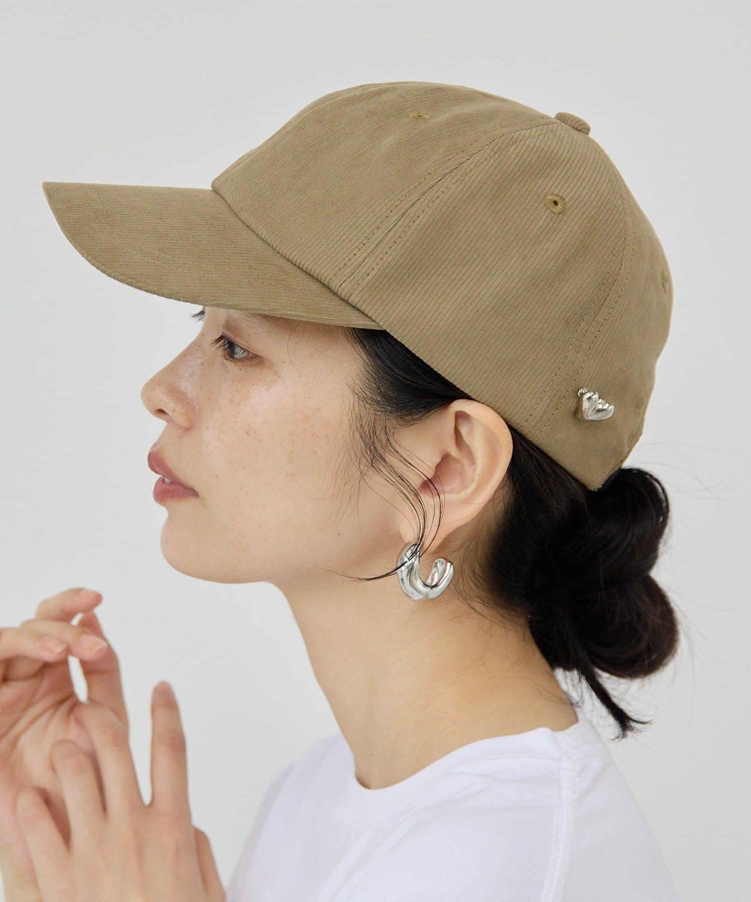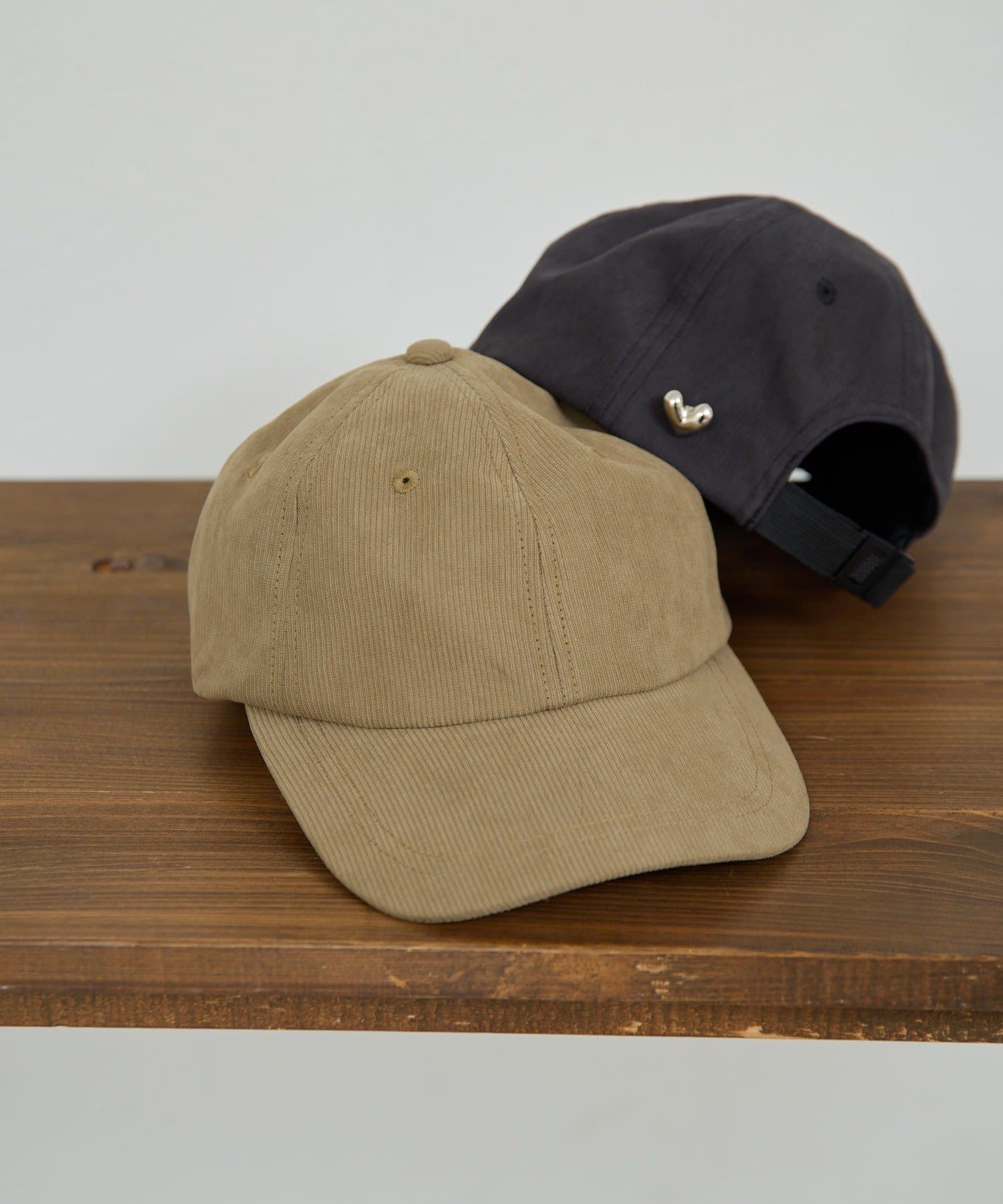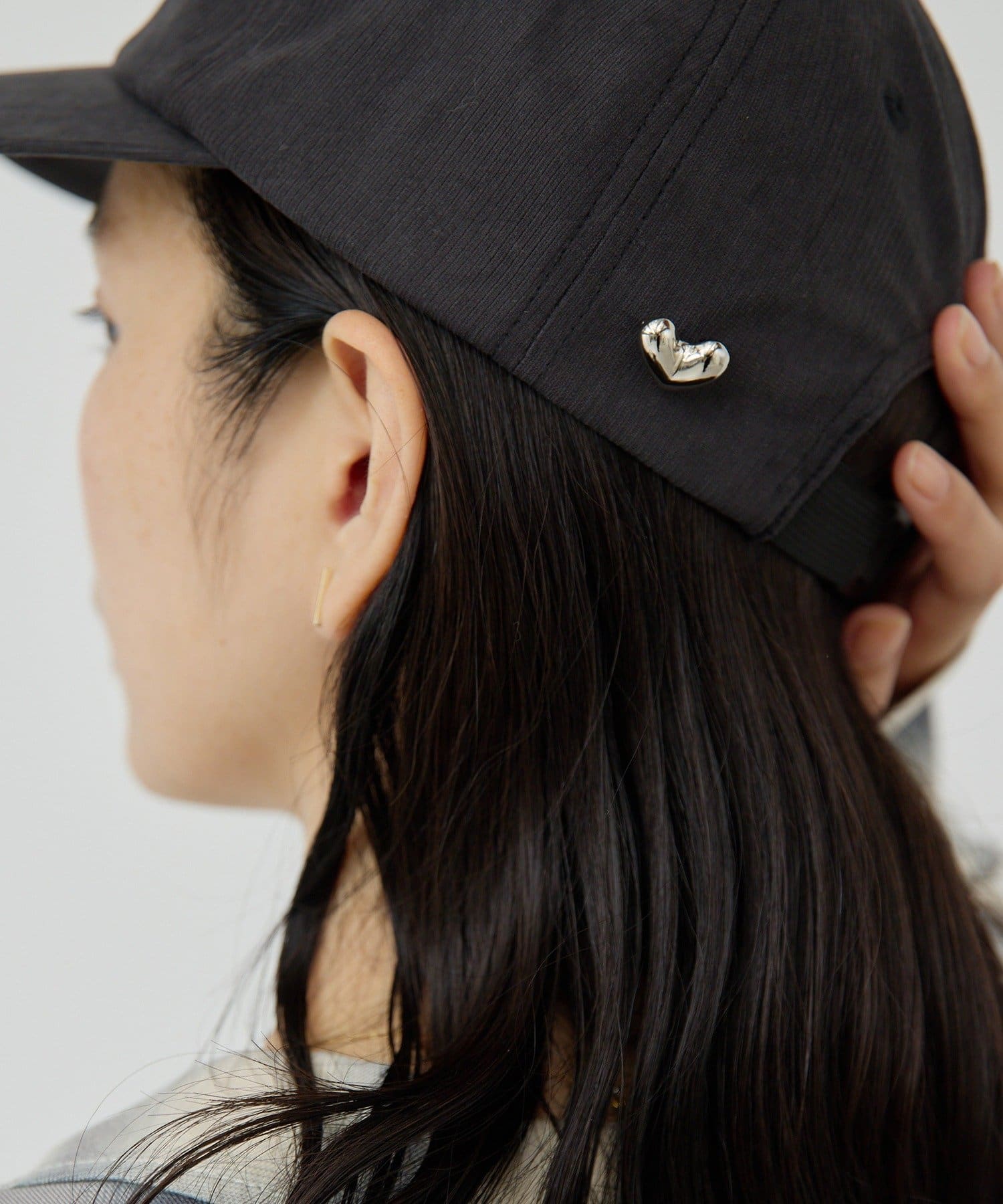 ハートモチーフのブローチがポイントになったキャップ