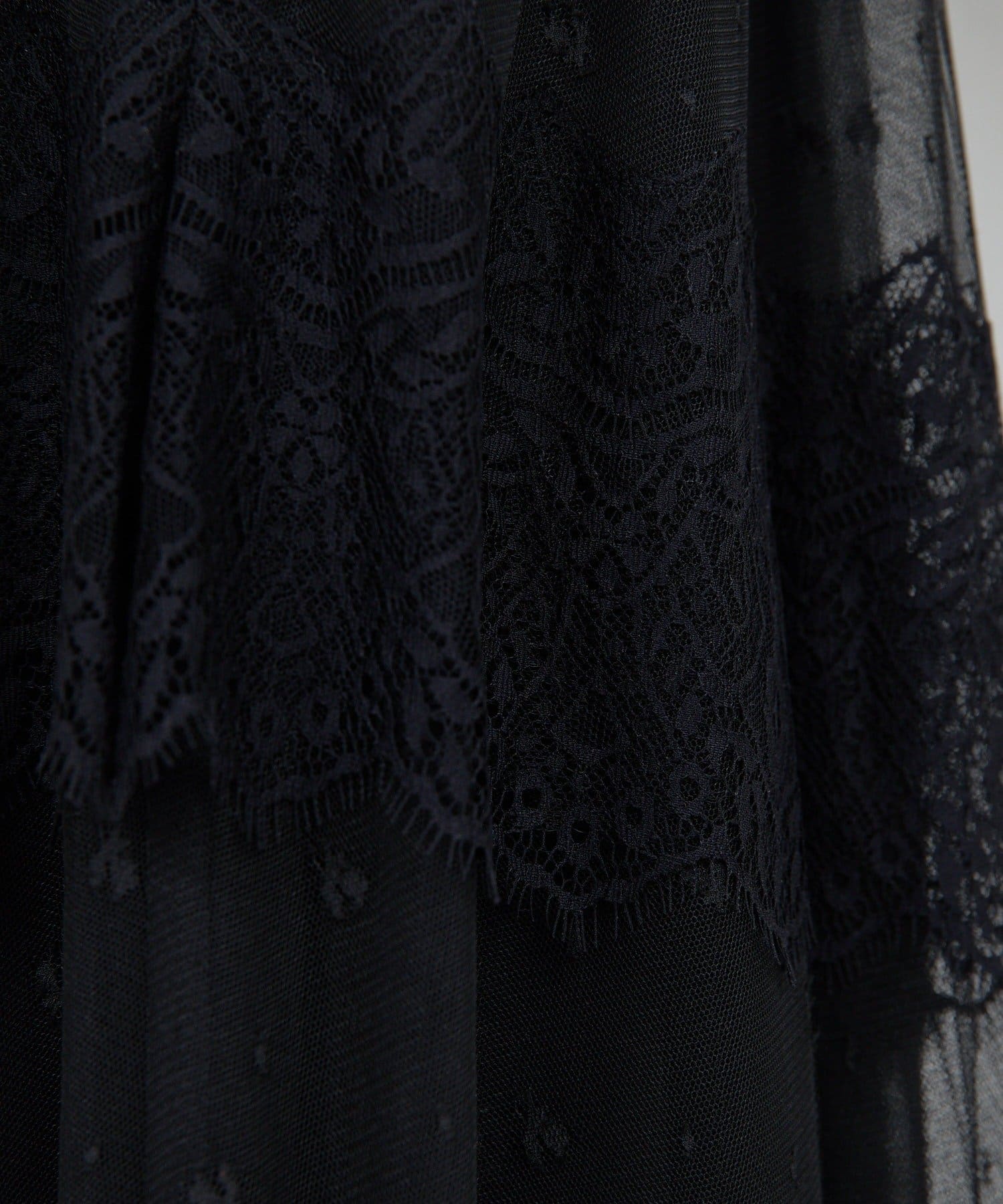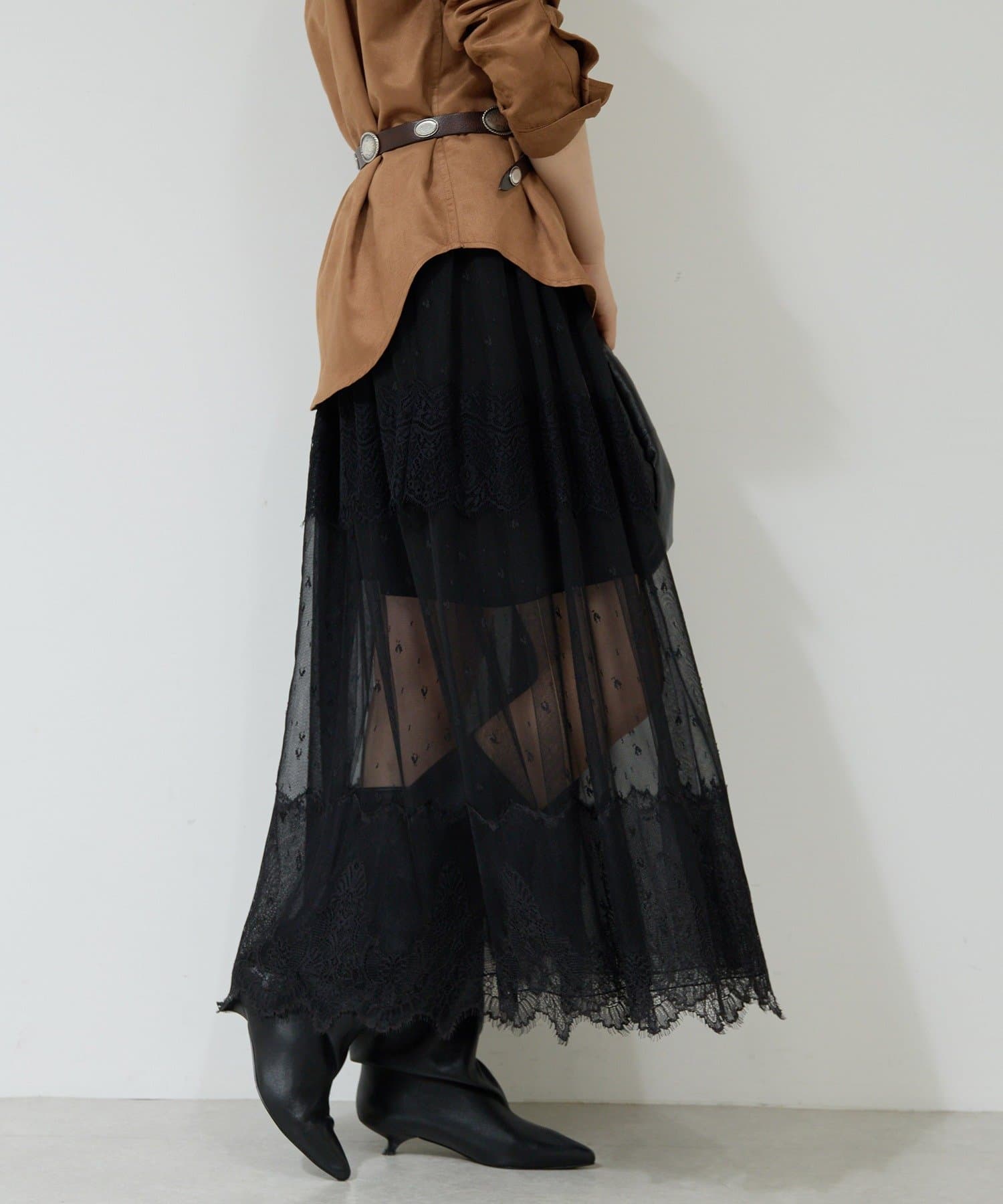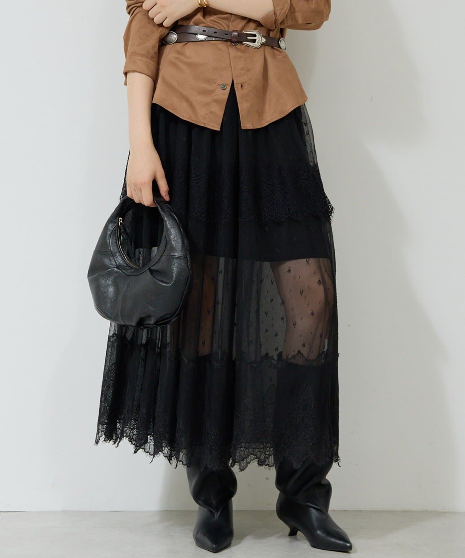 ●歩くたびにふわりとなびく柔らかなレースは、スタイリングを華やかな印象に。