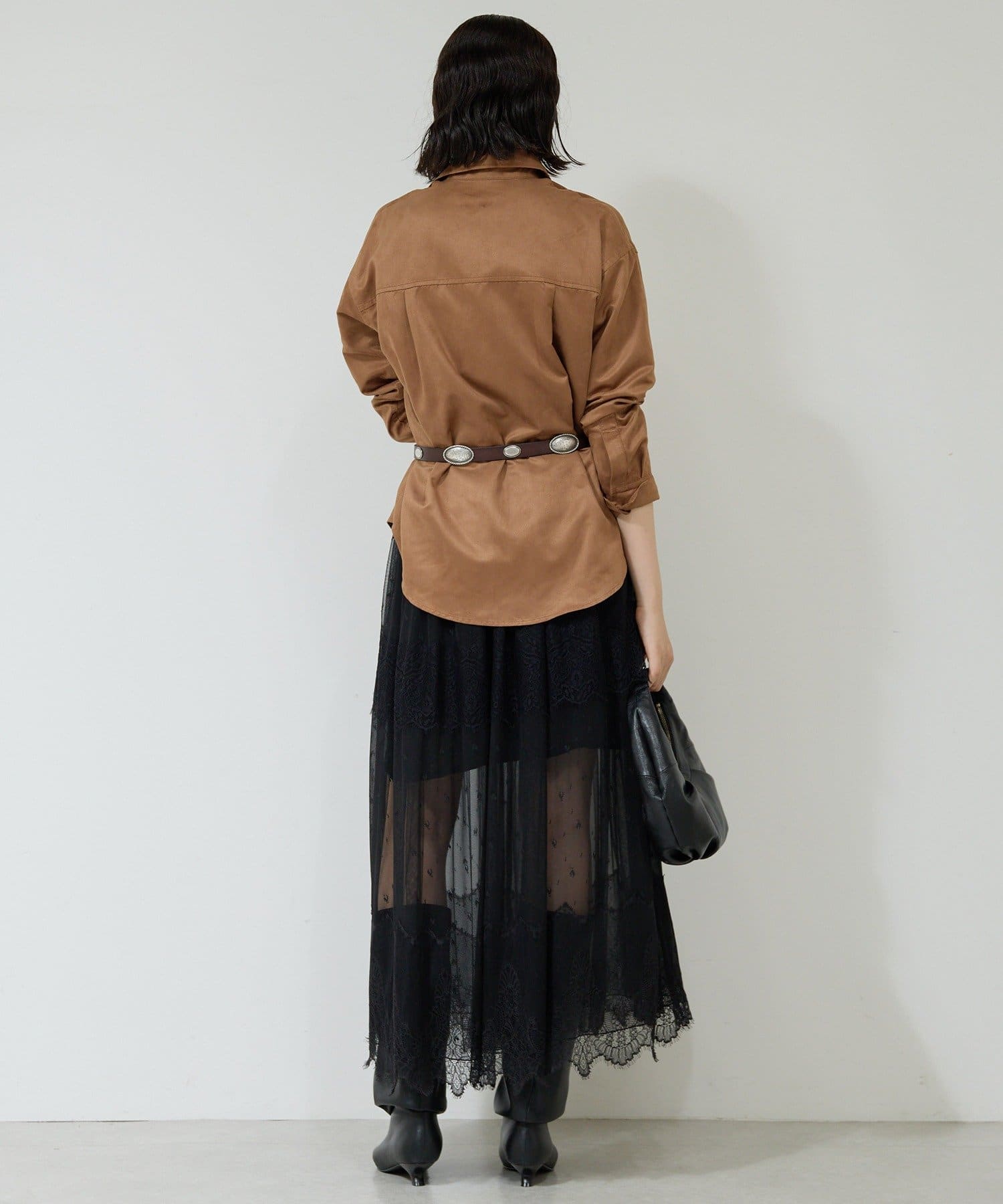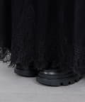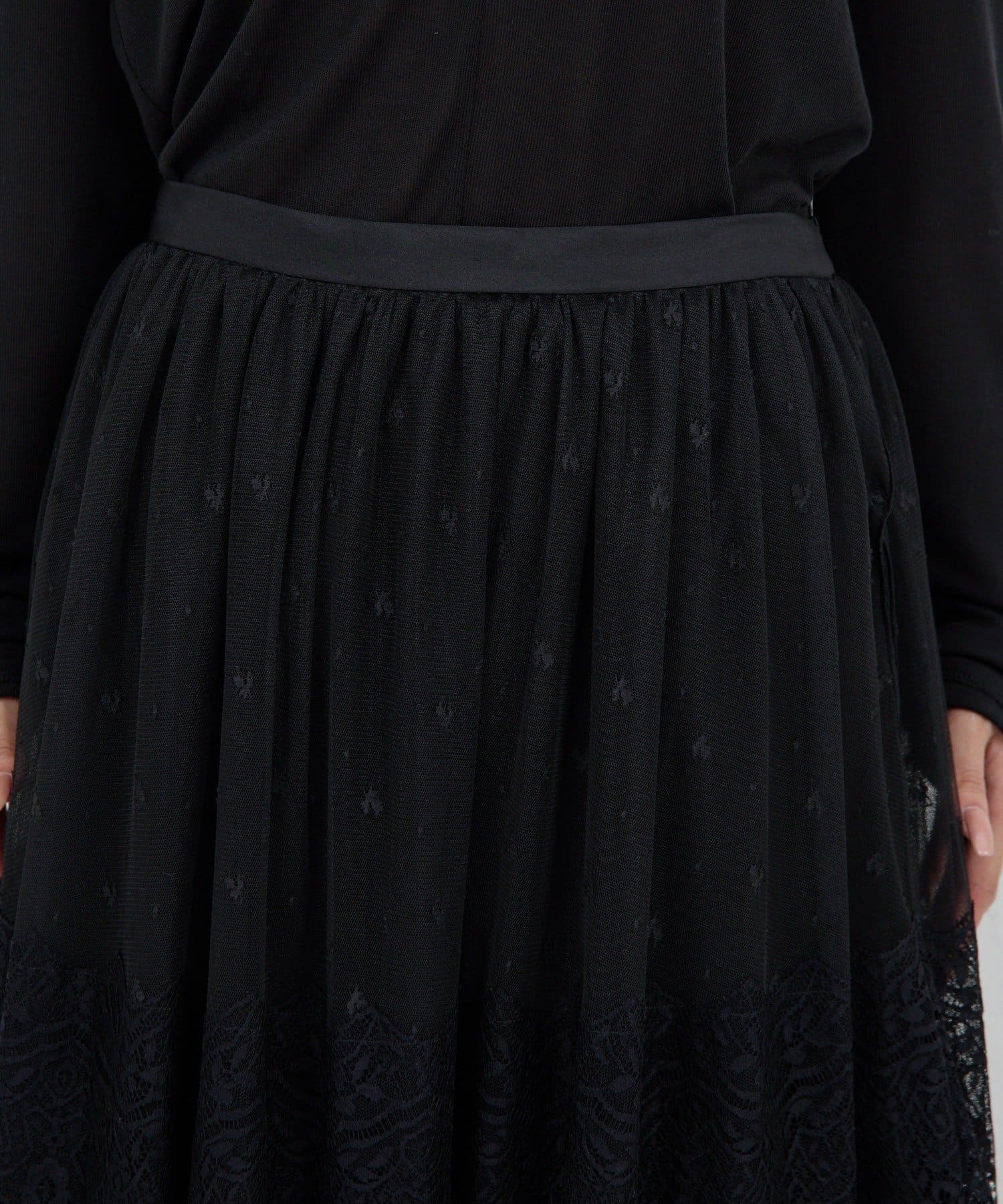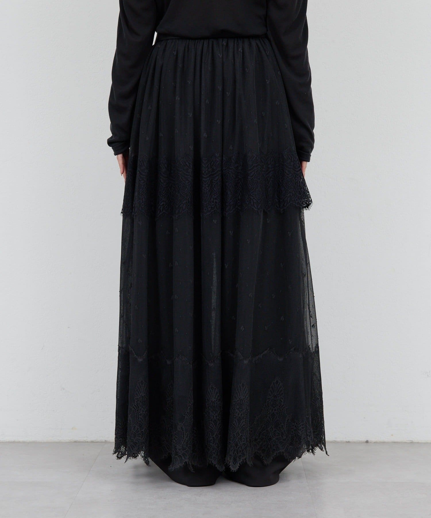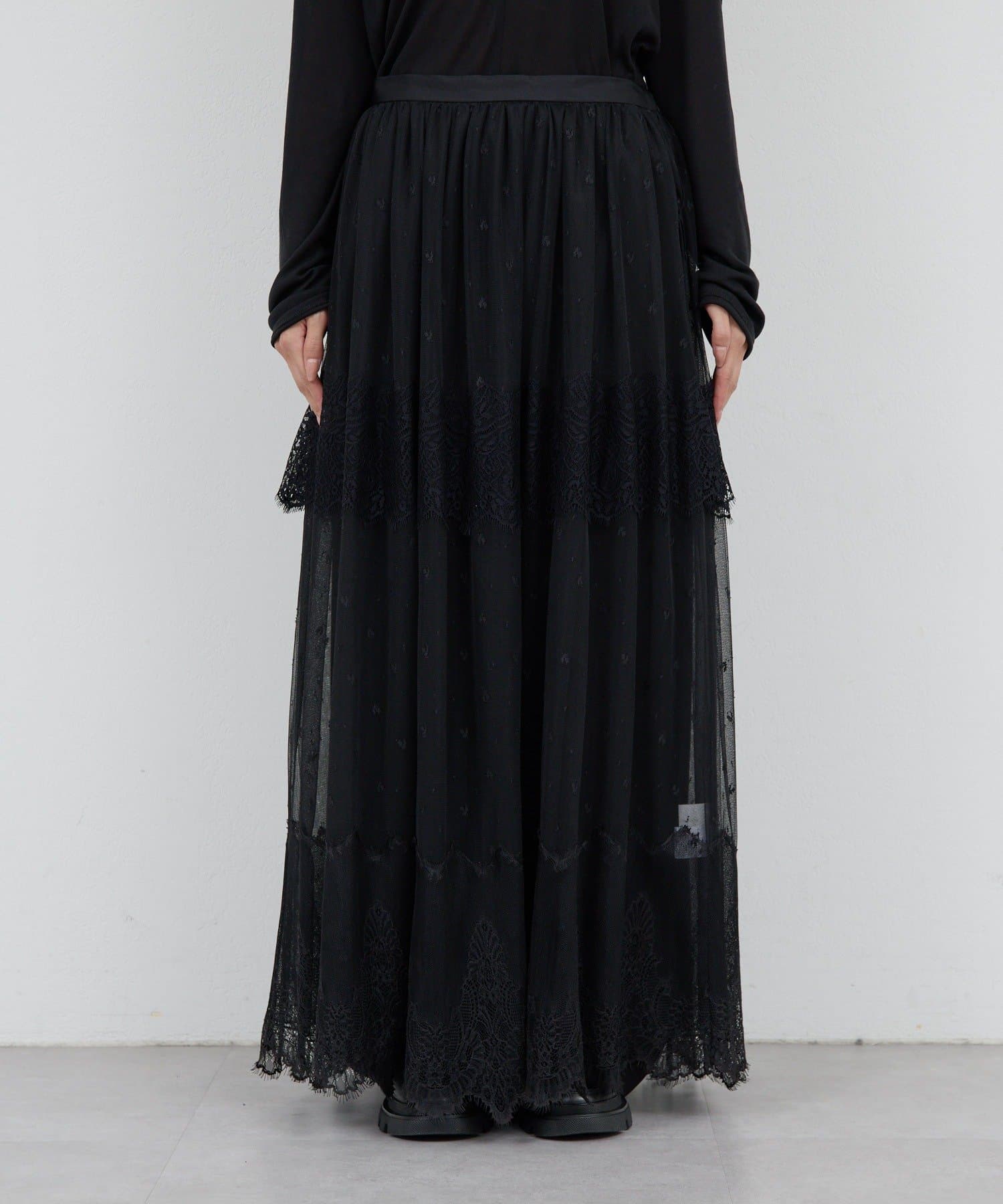 ●歩くたびにふわりとなびく柔らかなレースは、スタイリングを華やかな印象に。