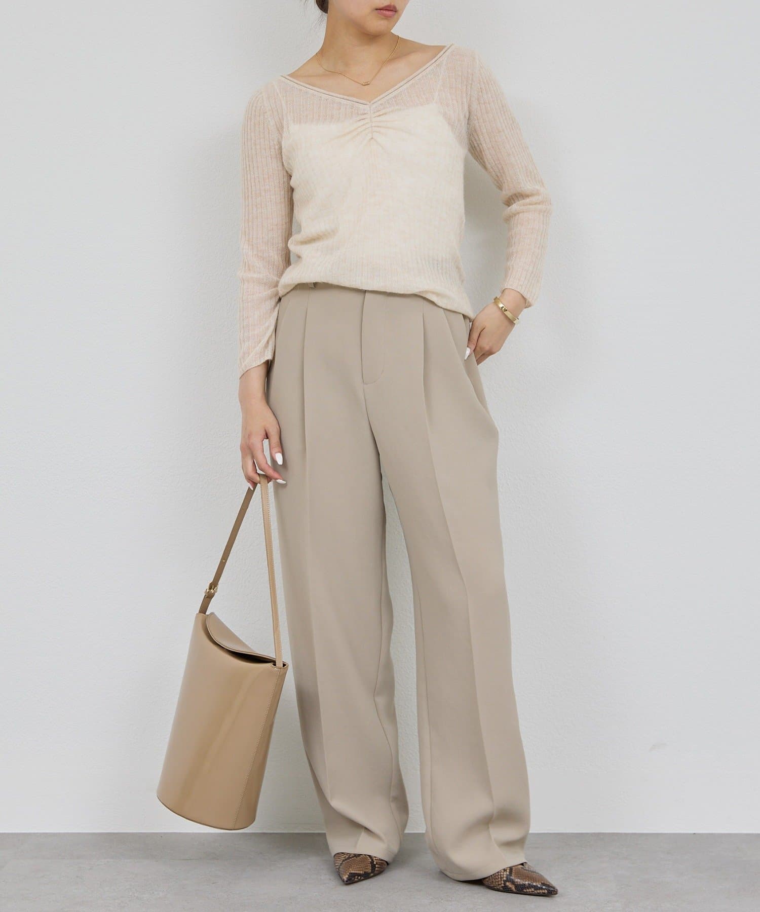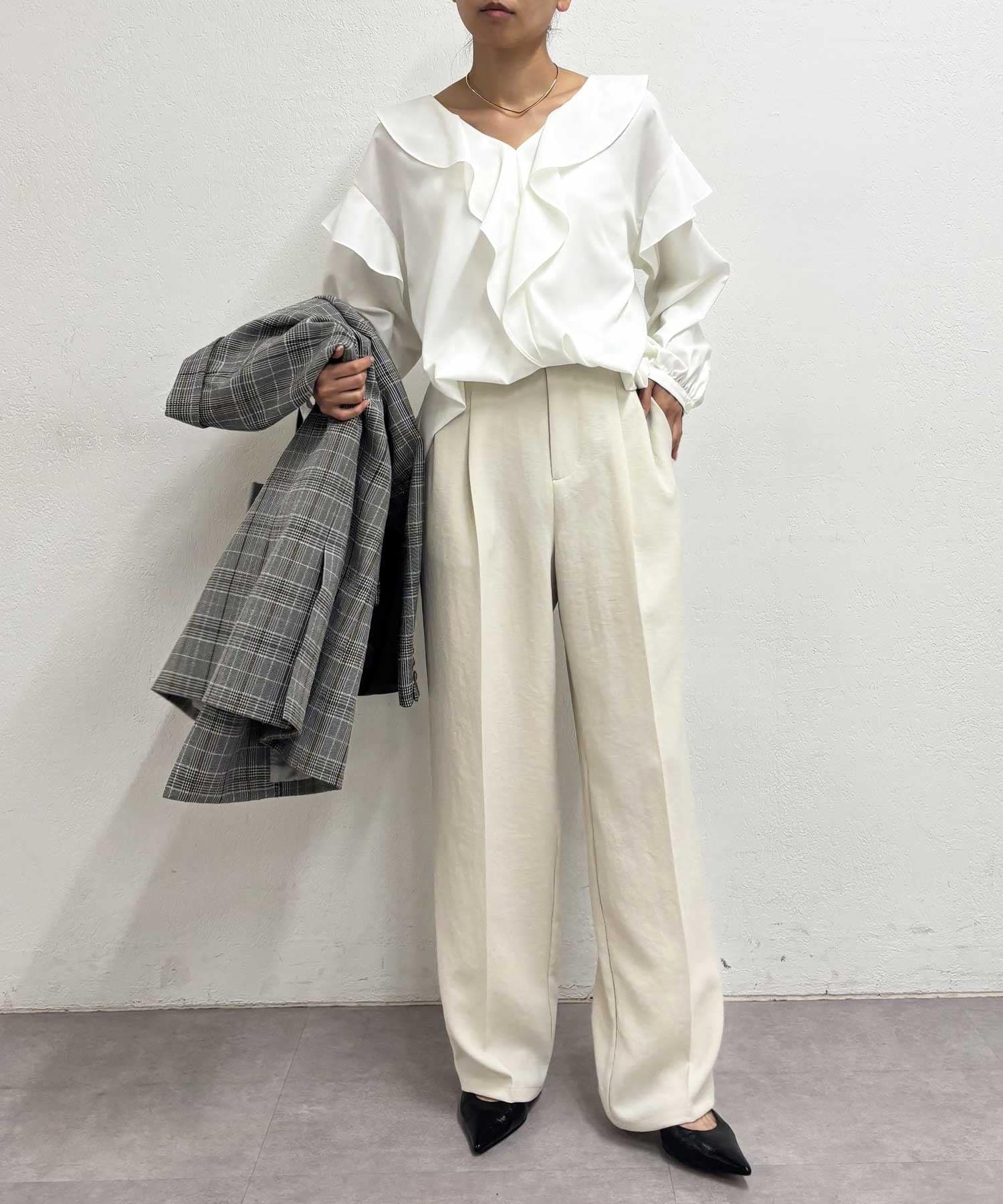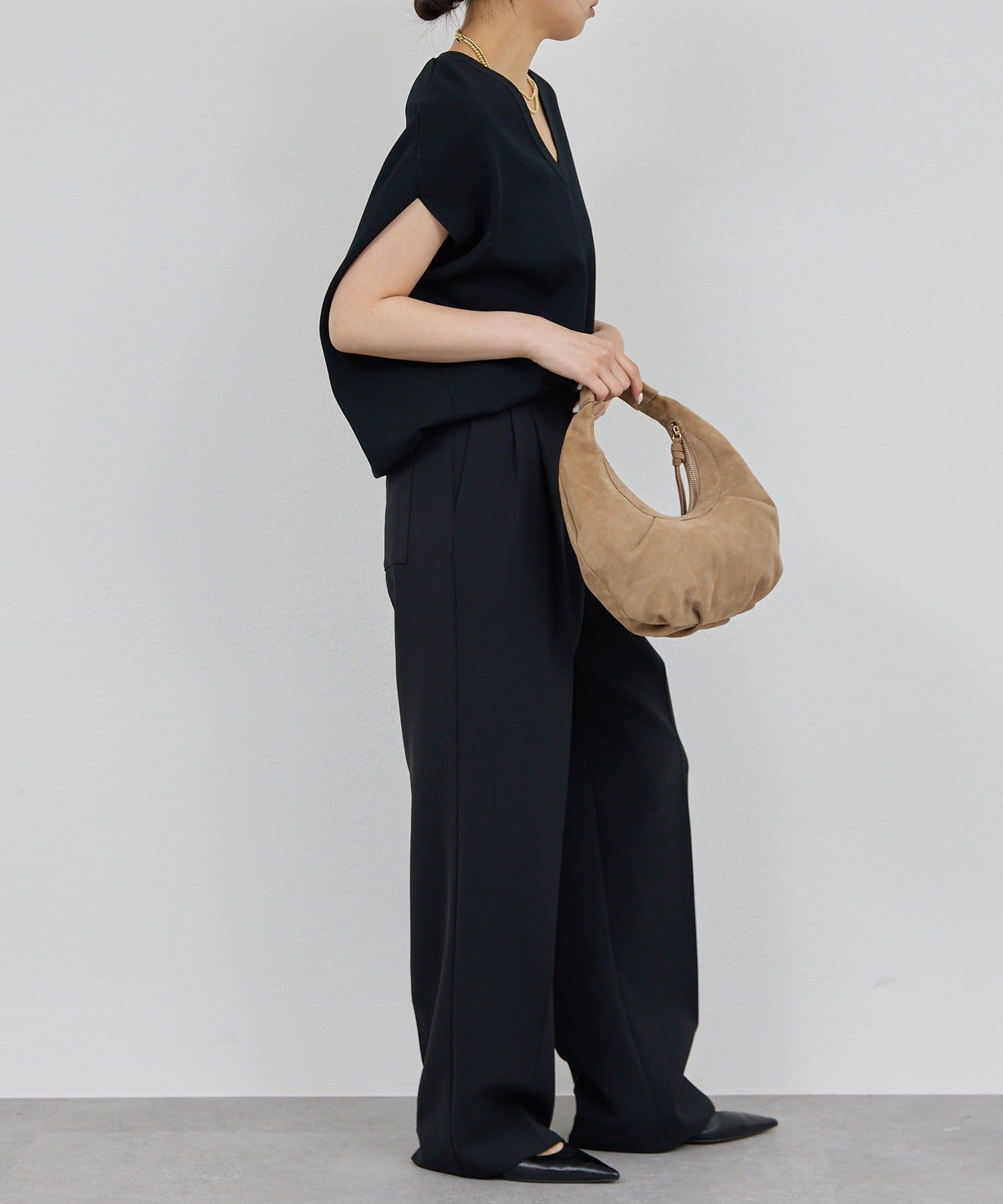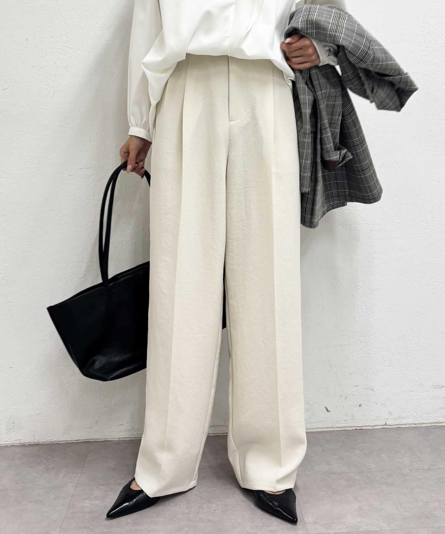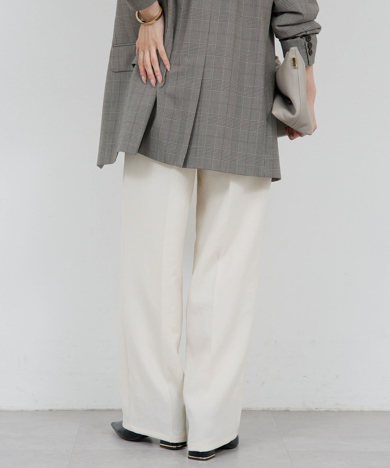 ●脚をすっきりと長く見せるセンタークリース入りで美脚効果。