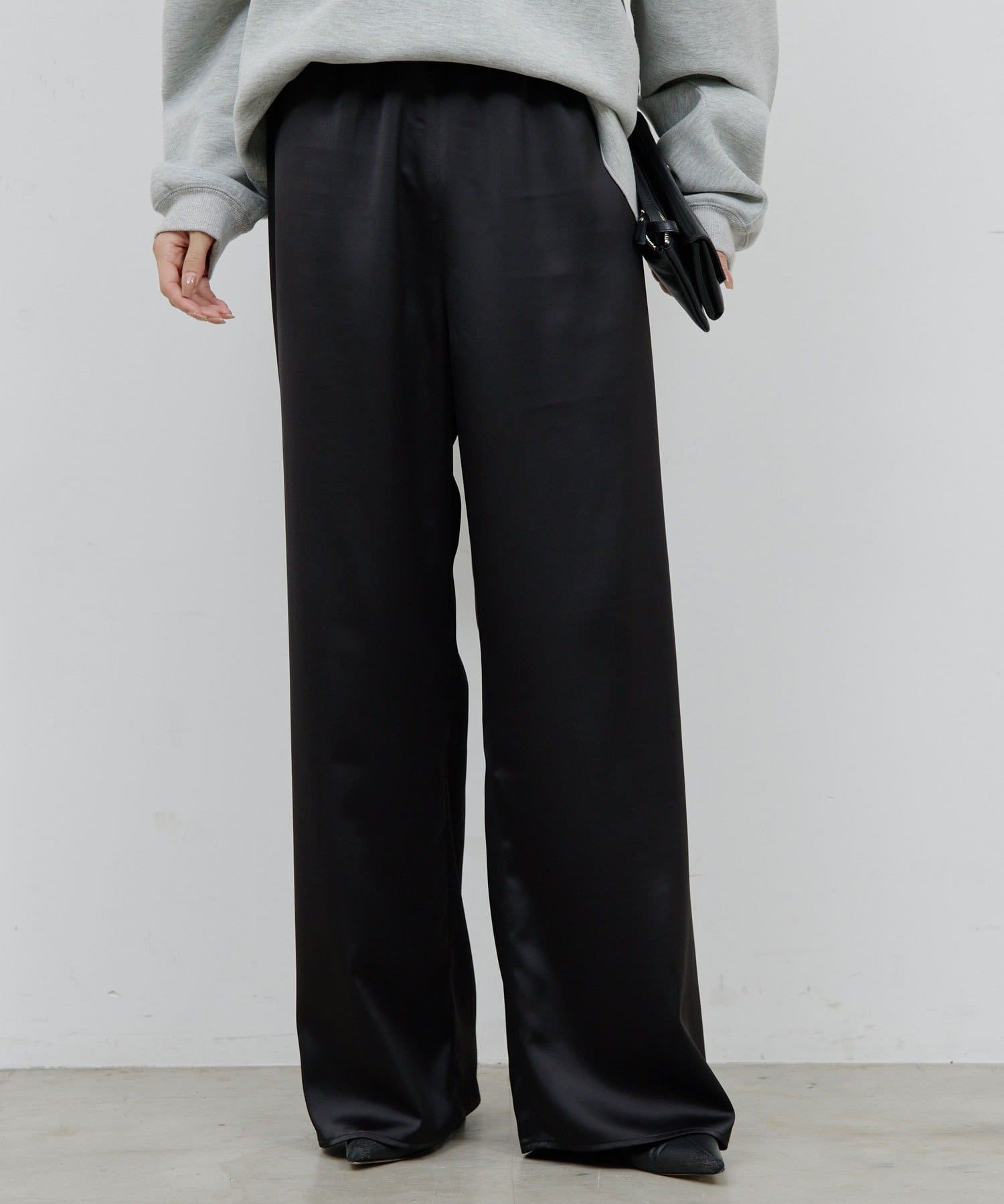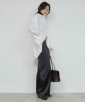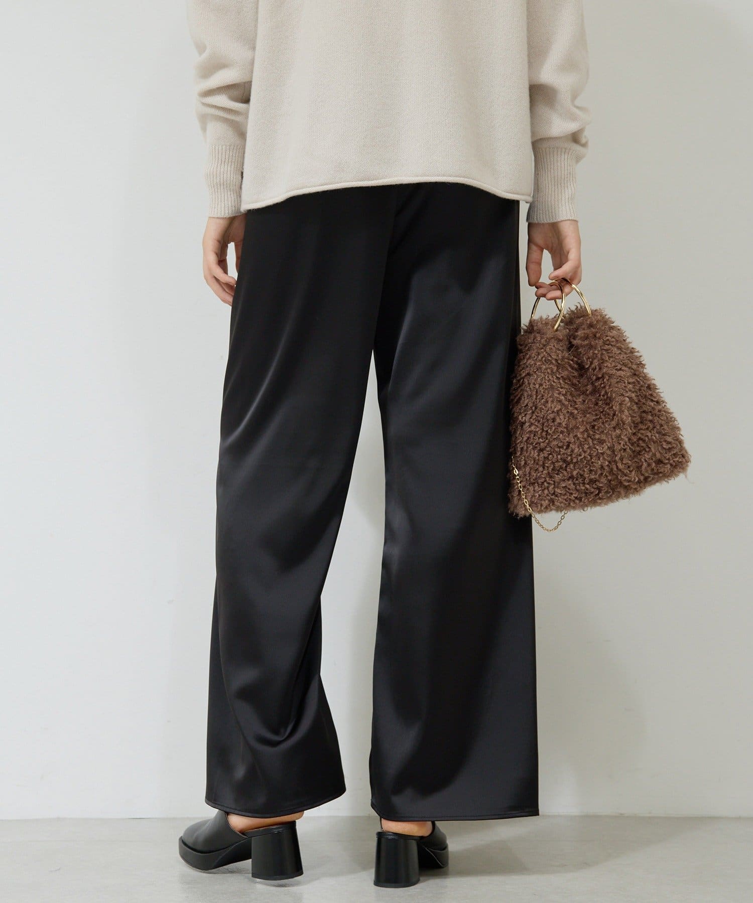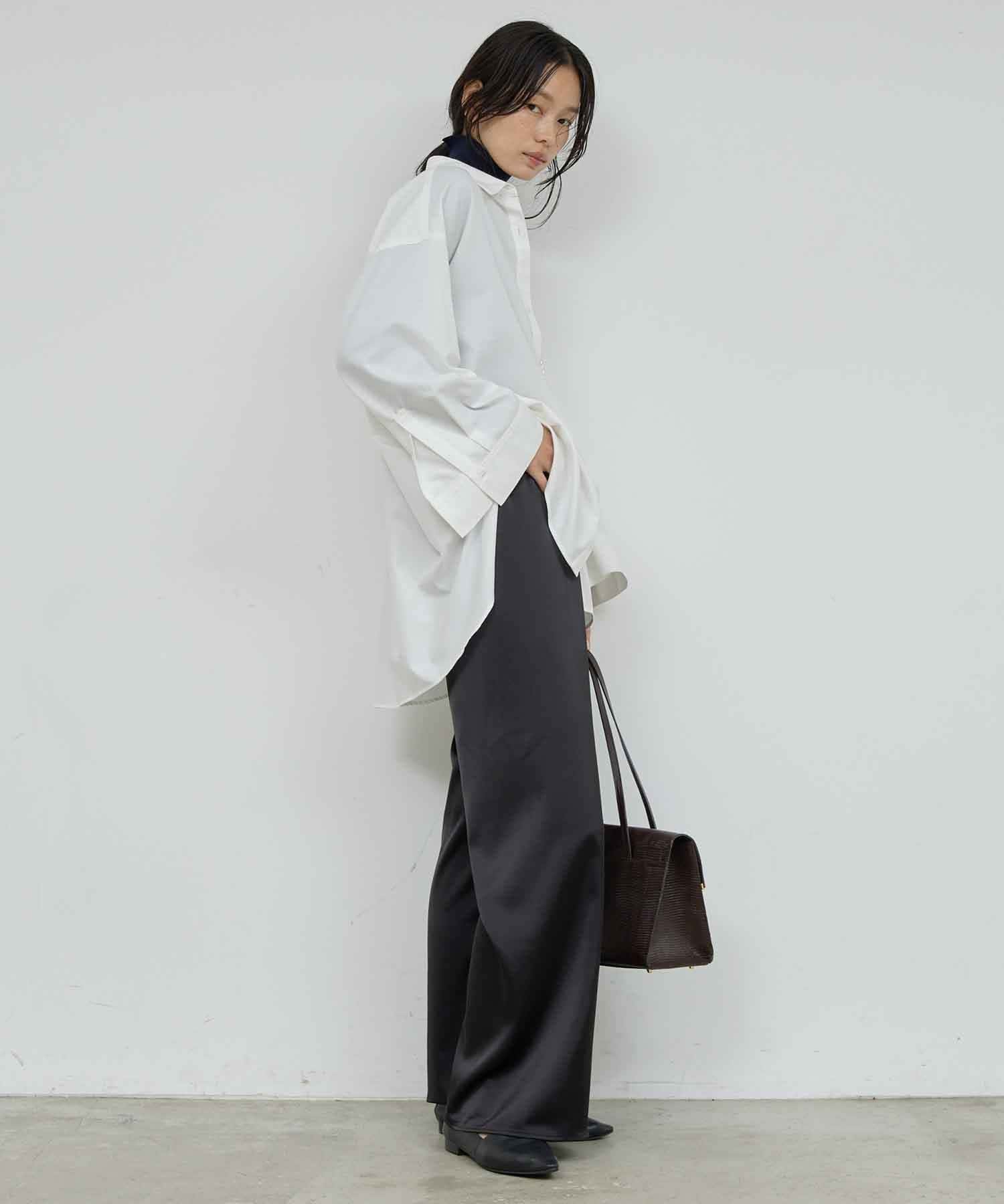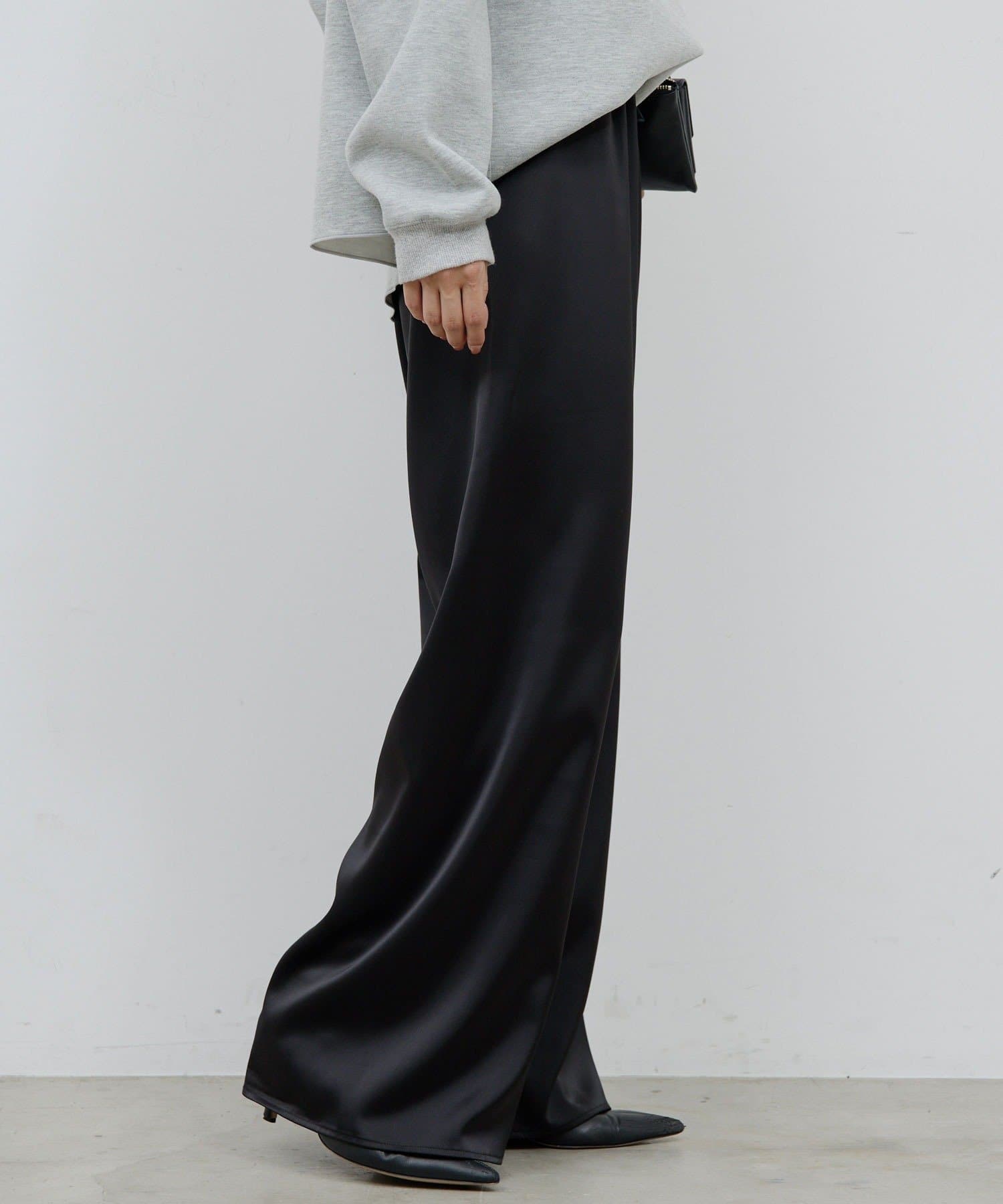 ●美脚パンツこと”ワイドドロストパンツ”と同型のサテンパンツ。