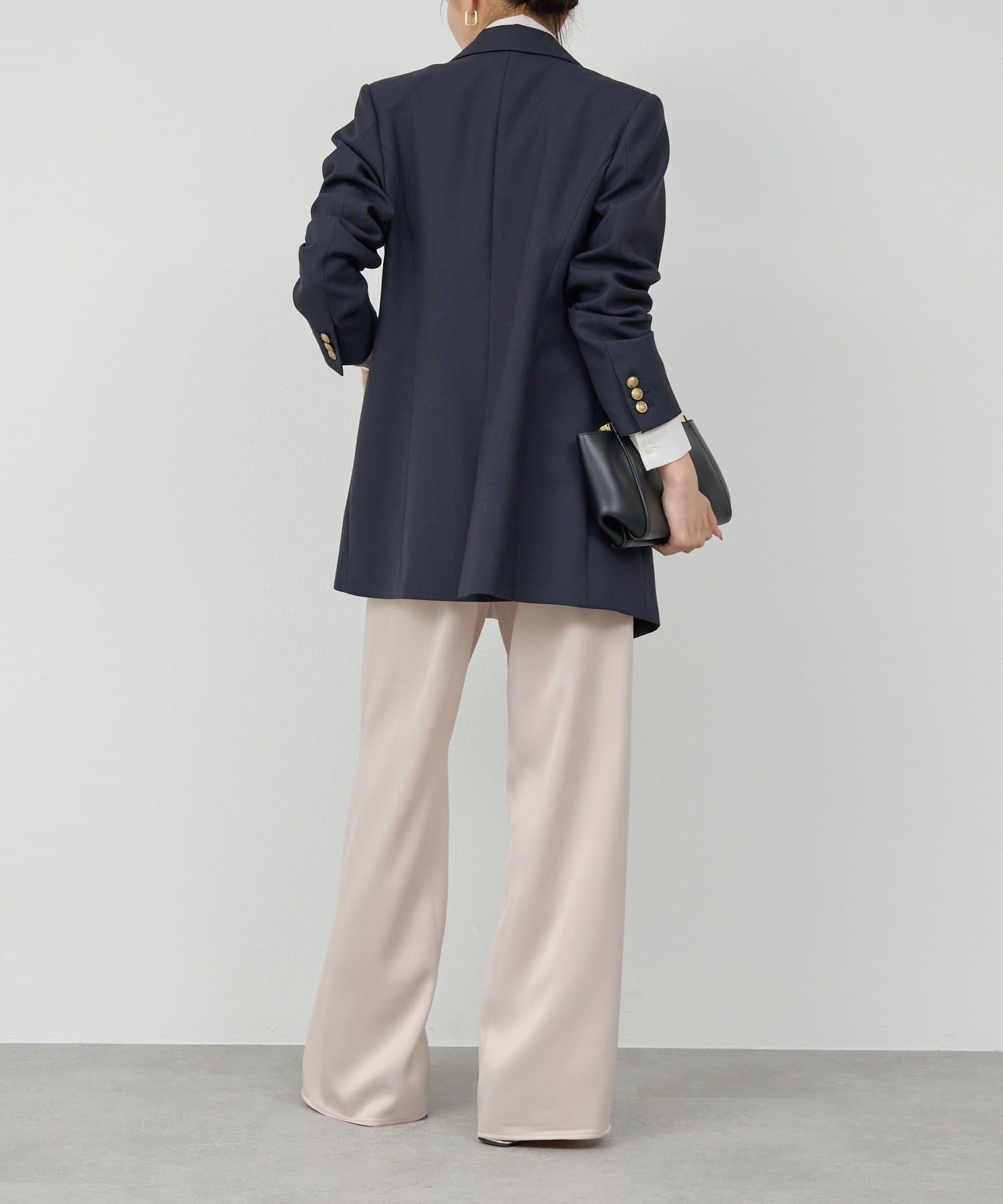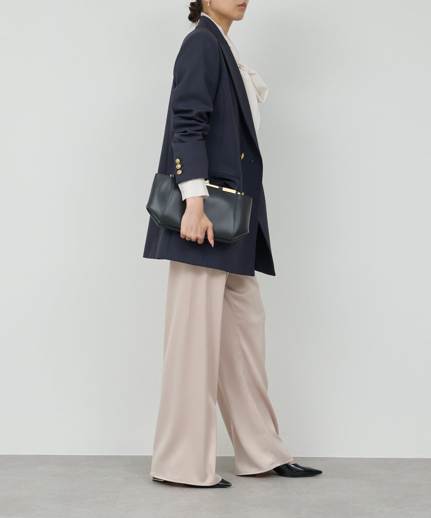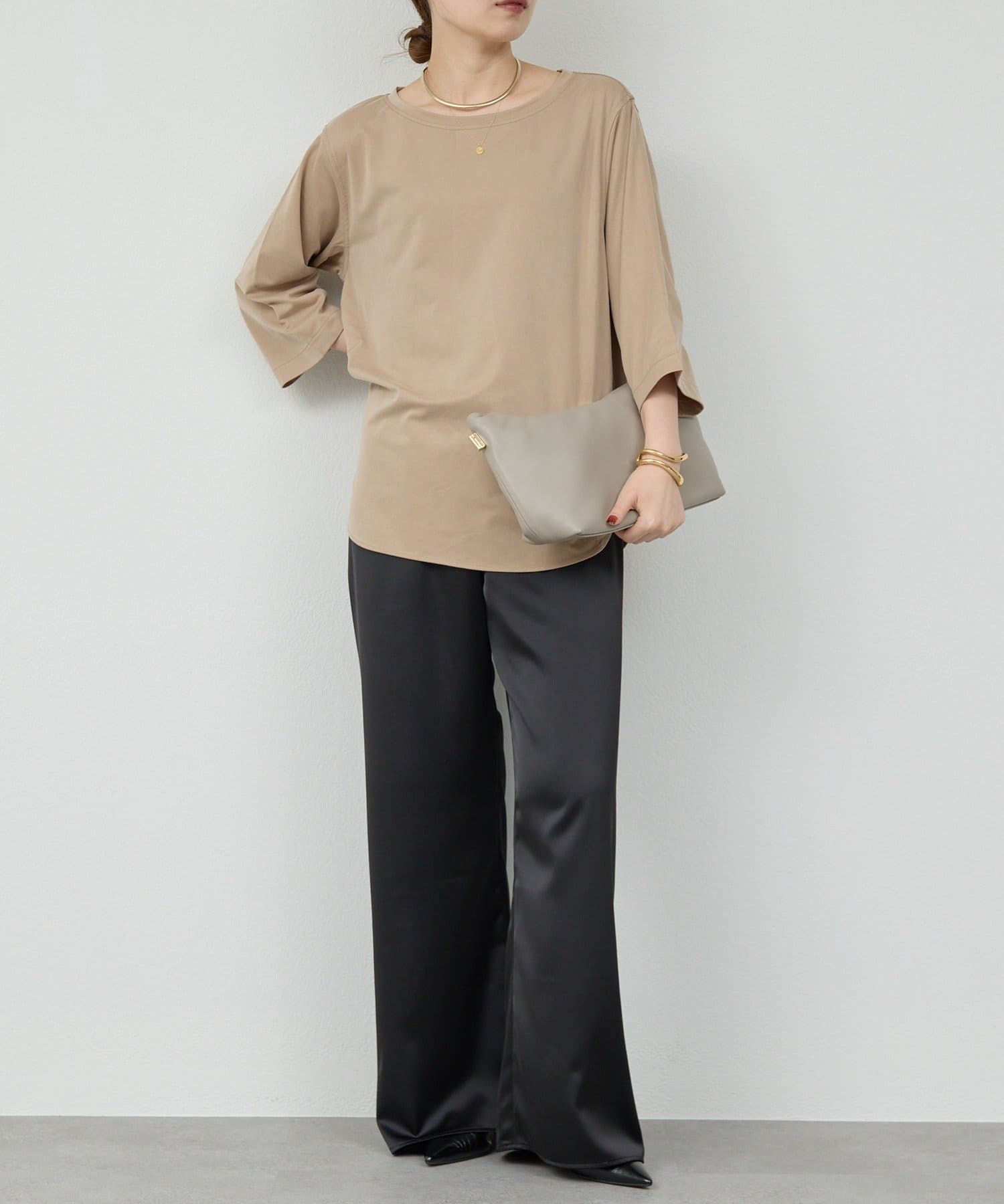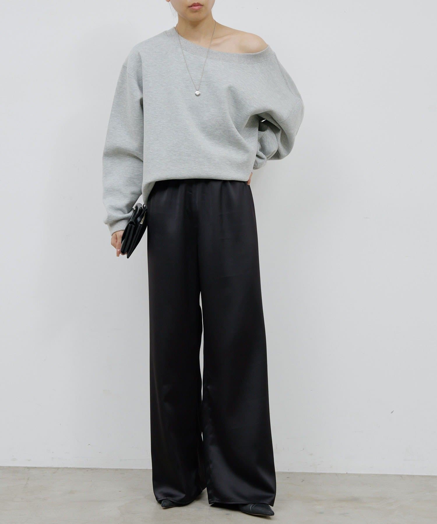 ●美脚パンツこと”ワイドドロストパンツ”と同型のサテンパンツ。