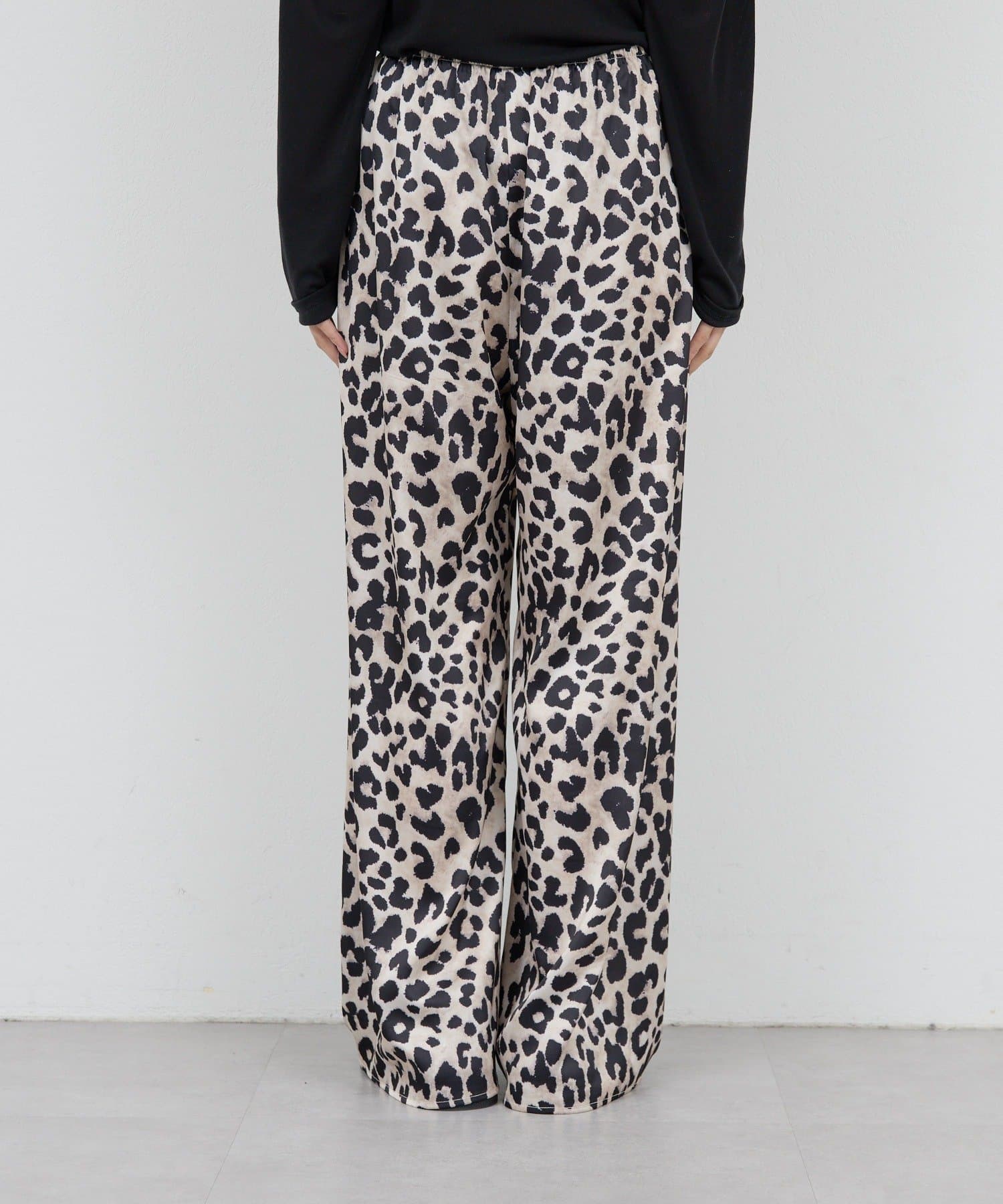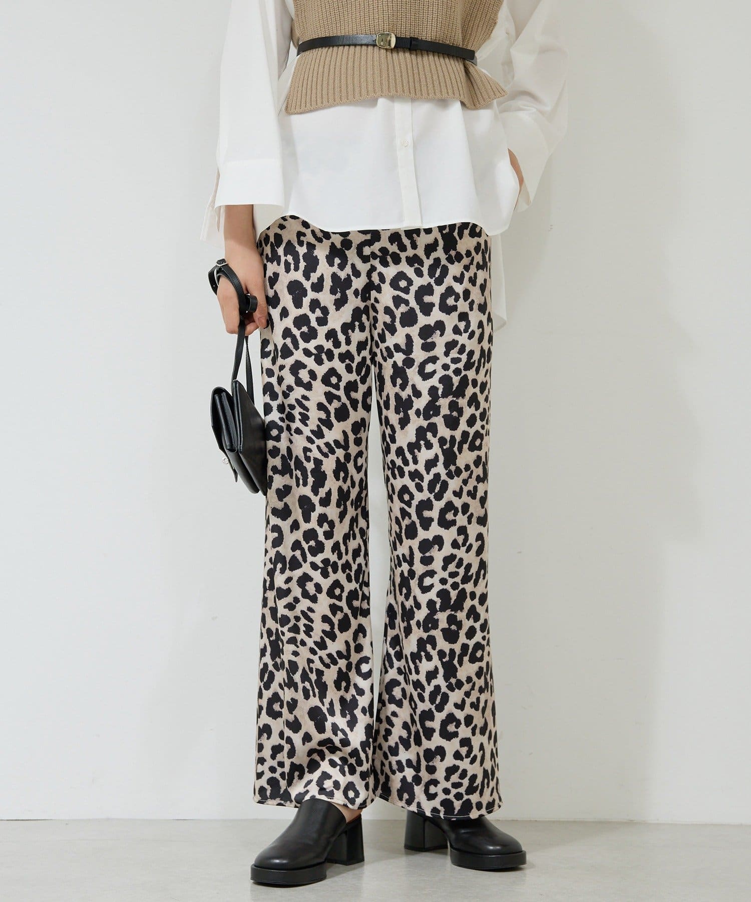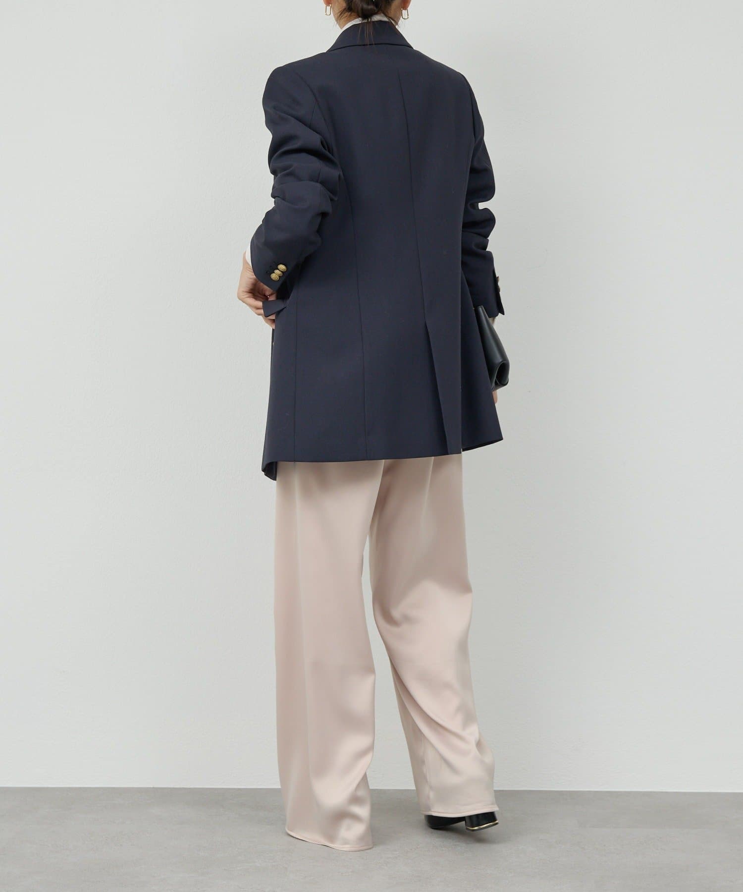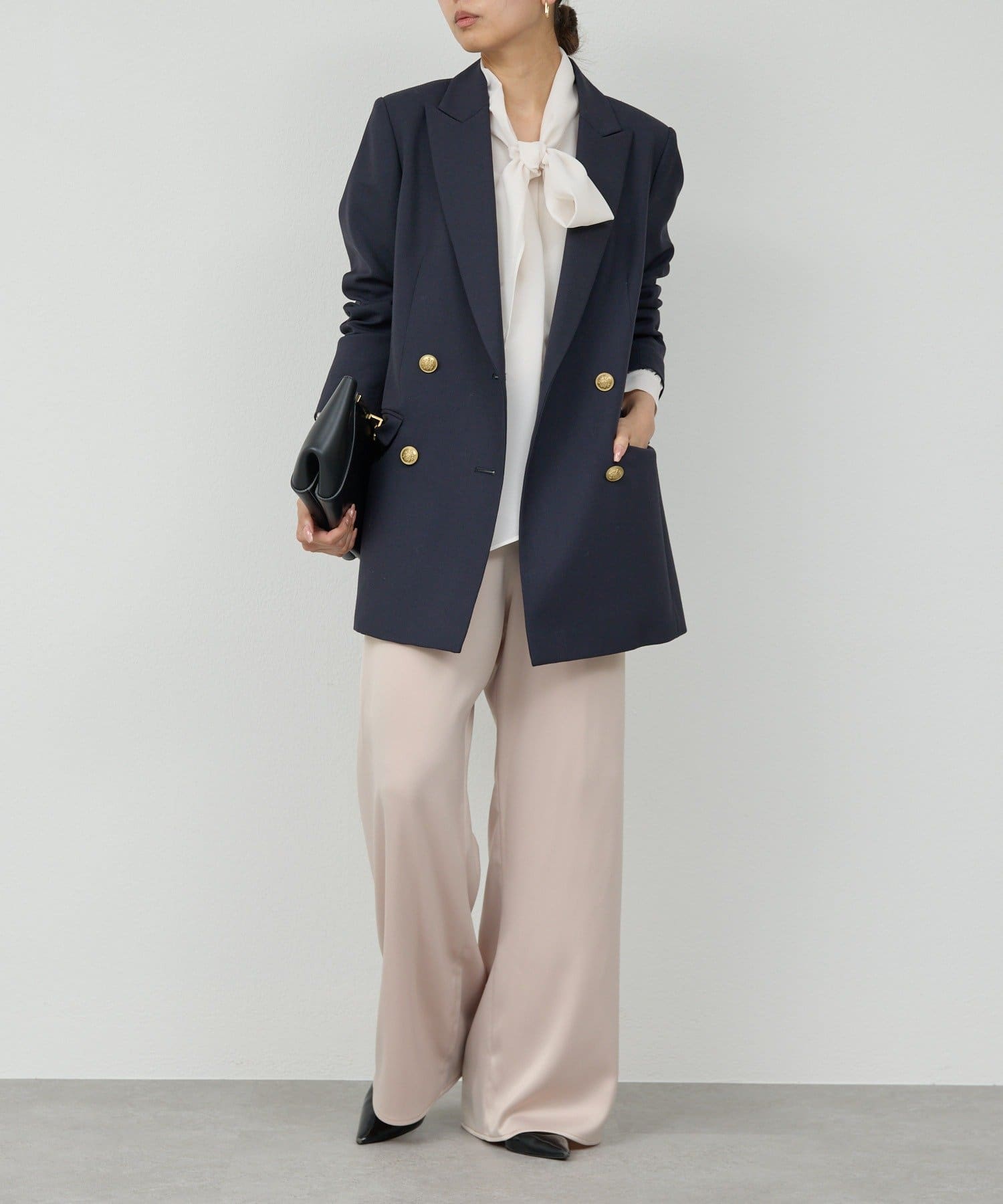 ●美脚パンツこと”ワイドドロストパンツ”と同型のサテンパンツ。