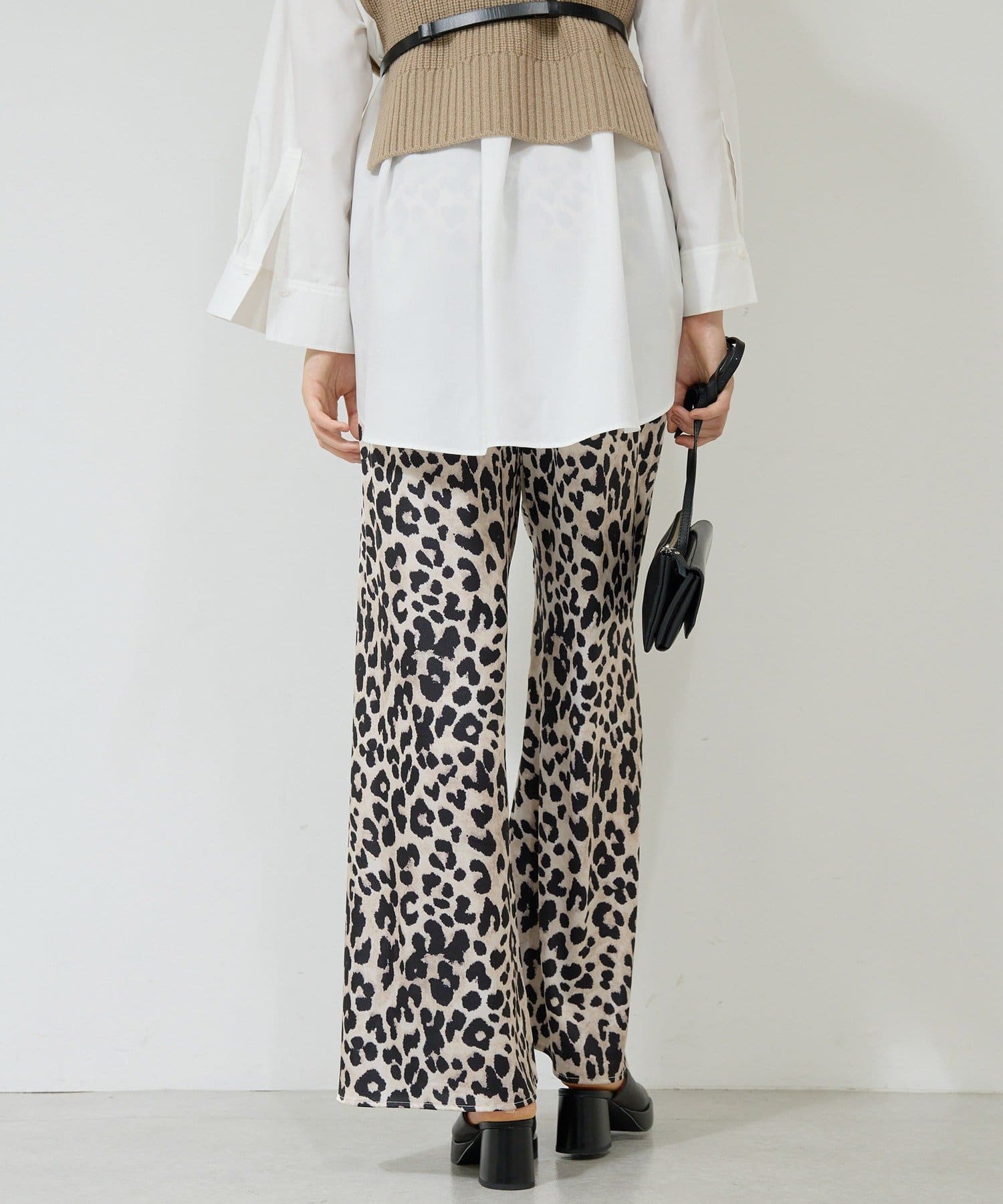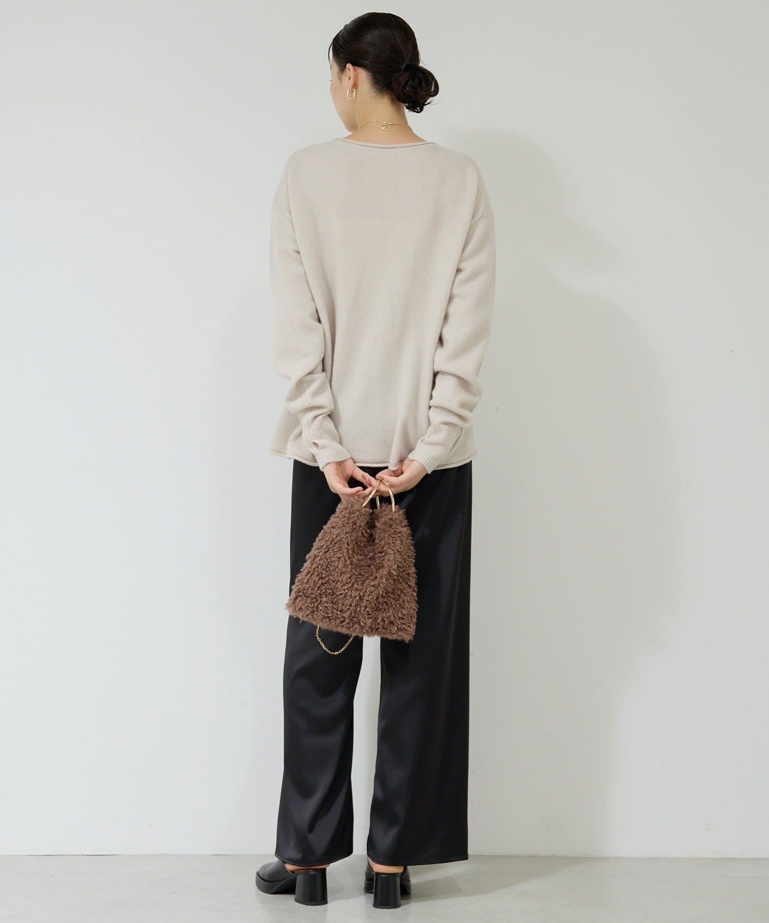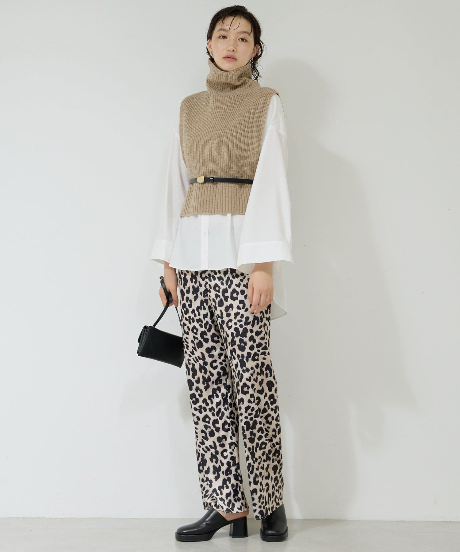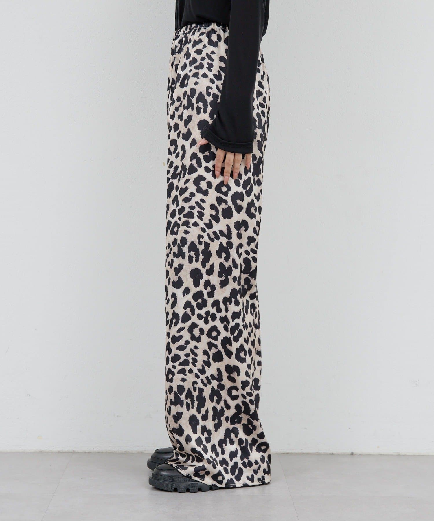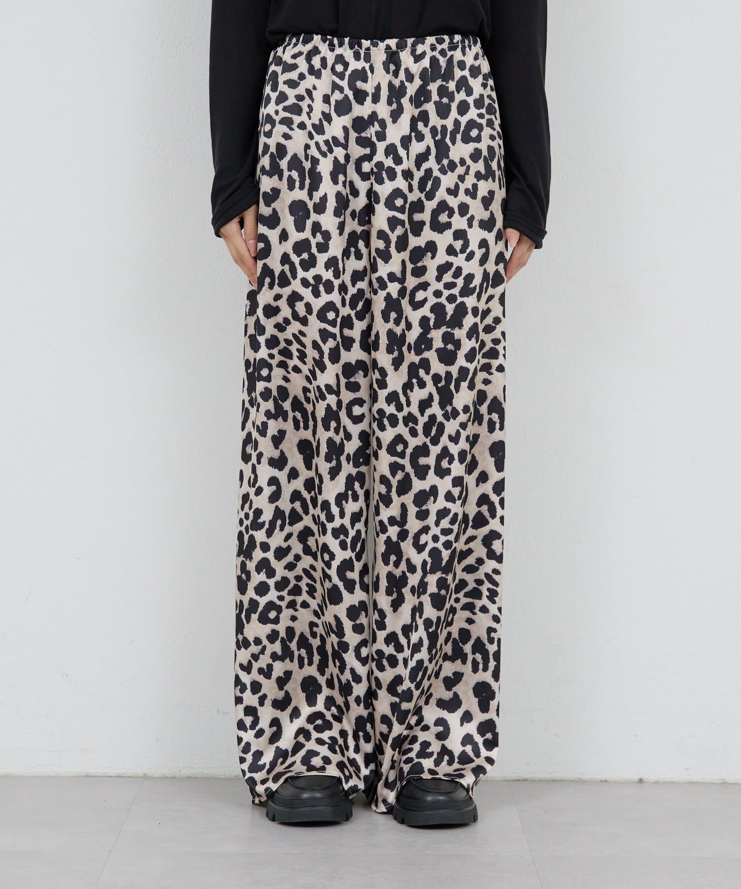 ●美脚パンツこと”ワイドドロストパンツ”と同型のサテンパンツ。