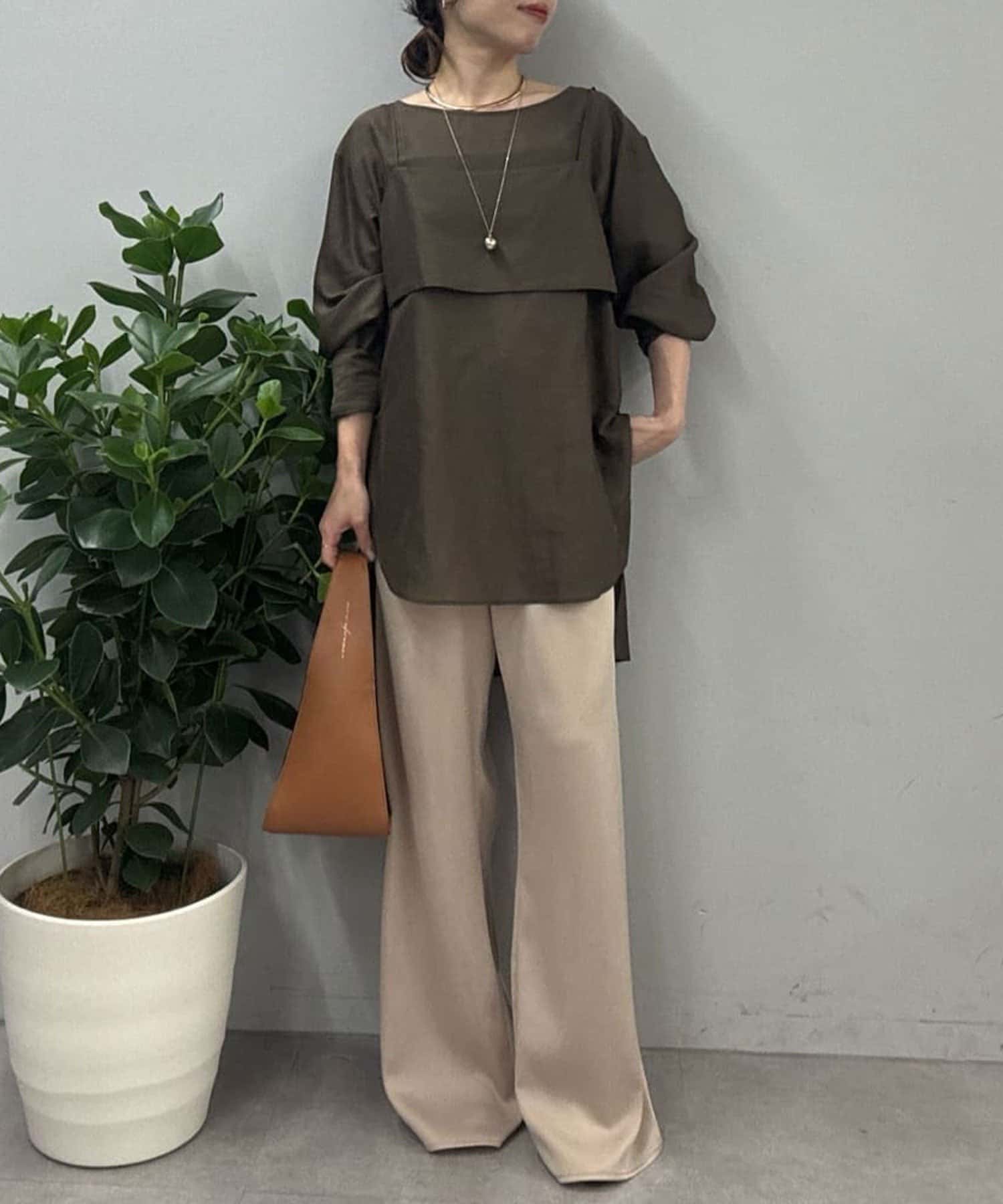 ●落ち感のあるドレープ素材はワイドシルエットながらにすっきりとした印象。