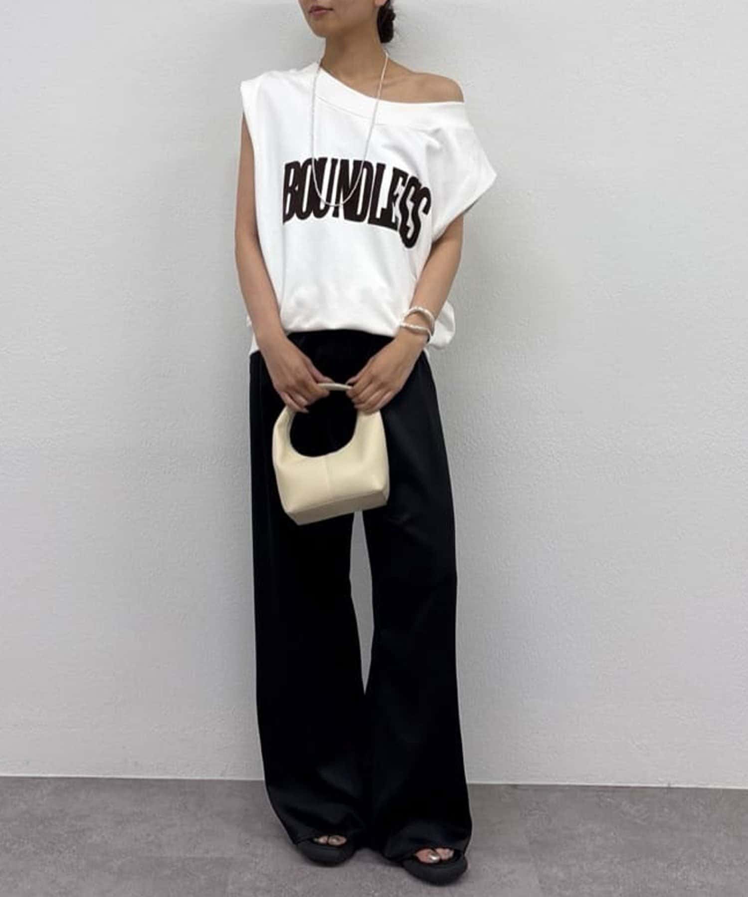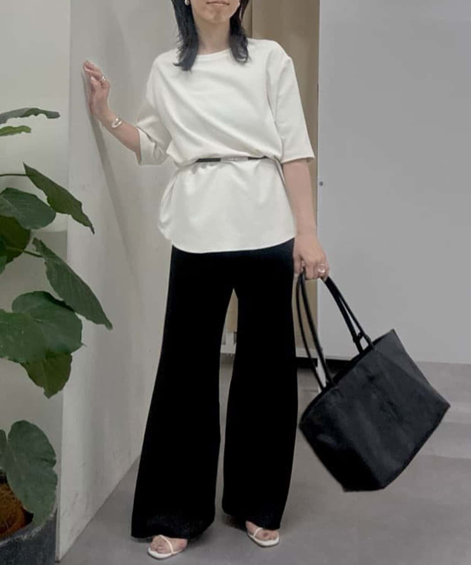 ●春夏はコットンやリネン、秋冬はニットとの異素材MIX合わせが着るだけでスタイリングを格上げする万能パンツ。