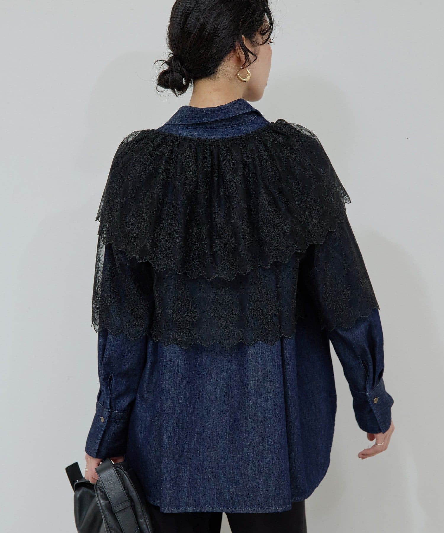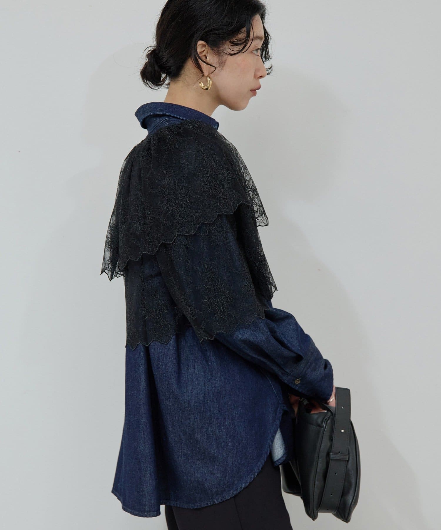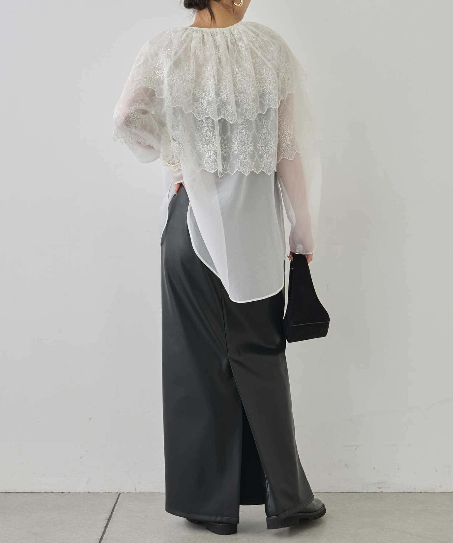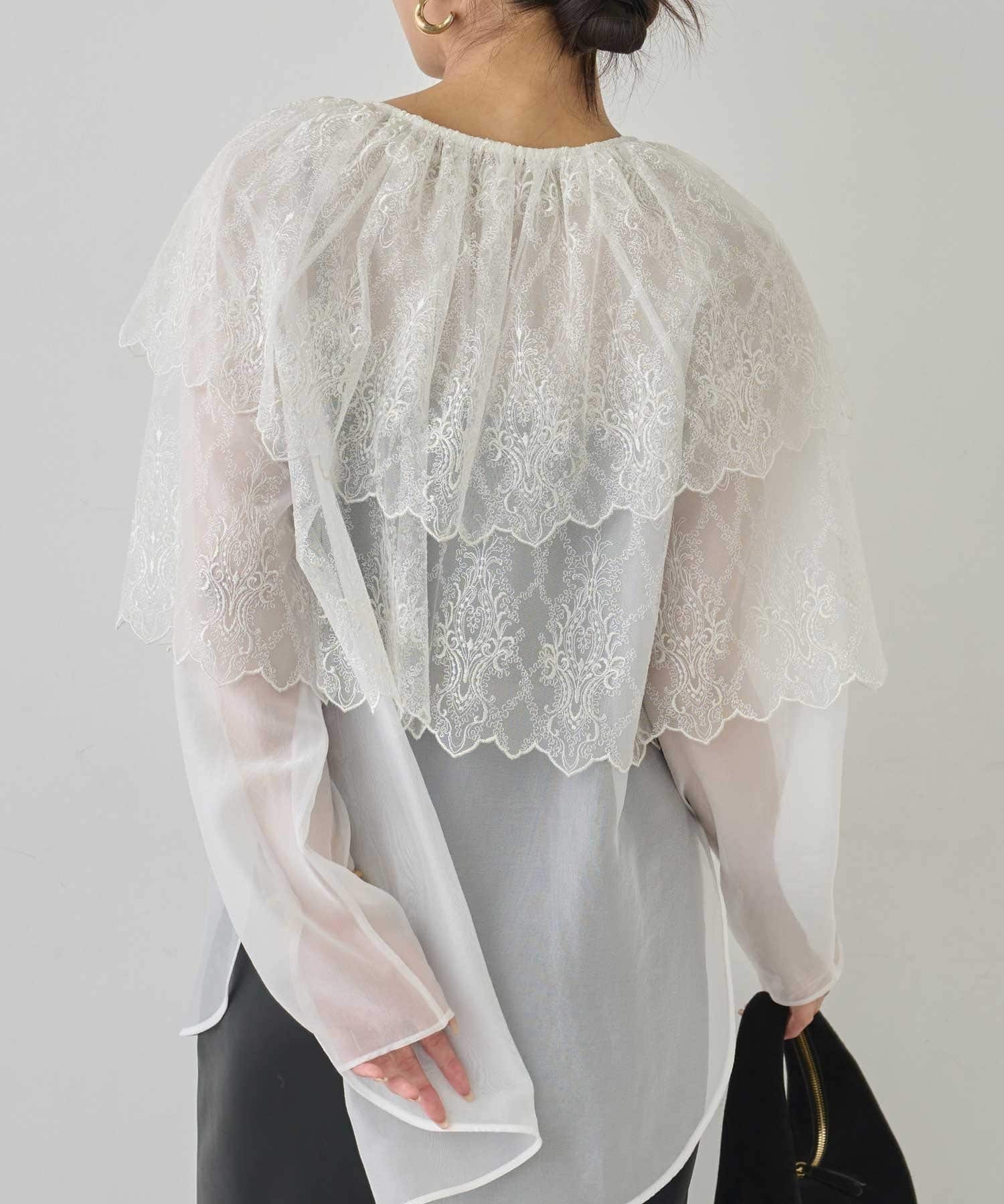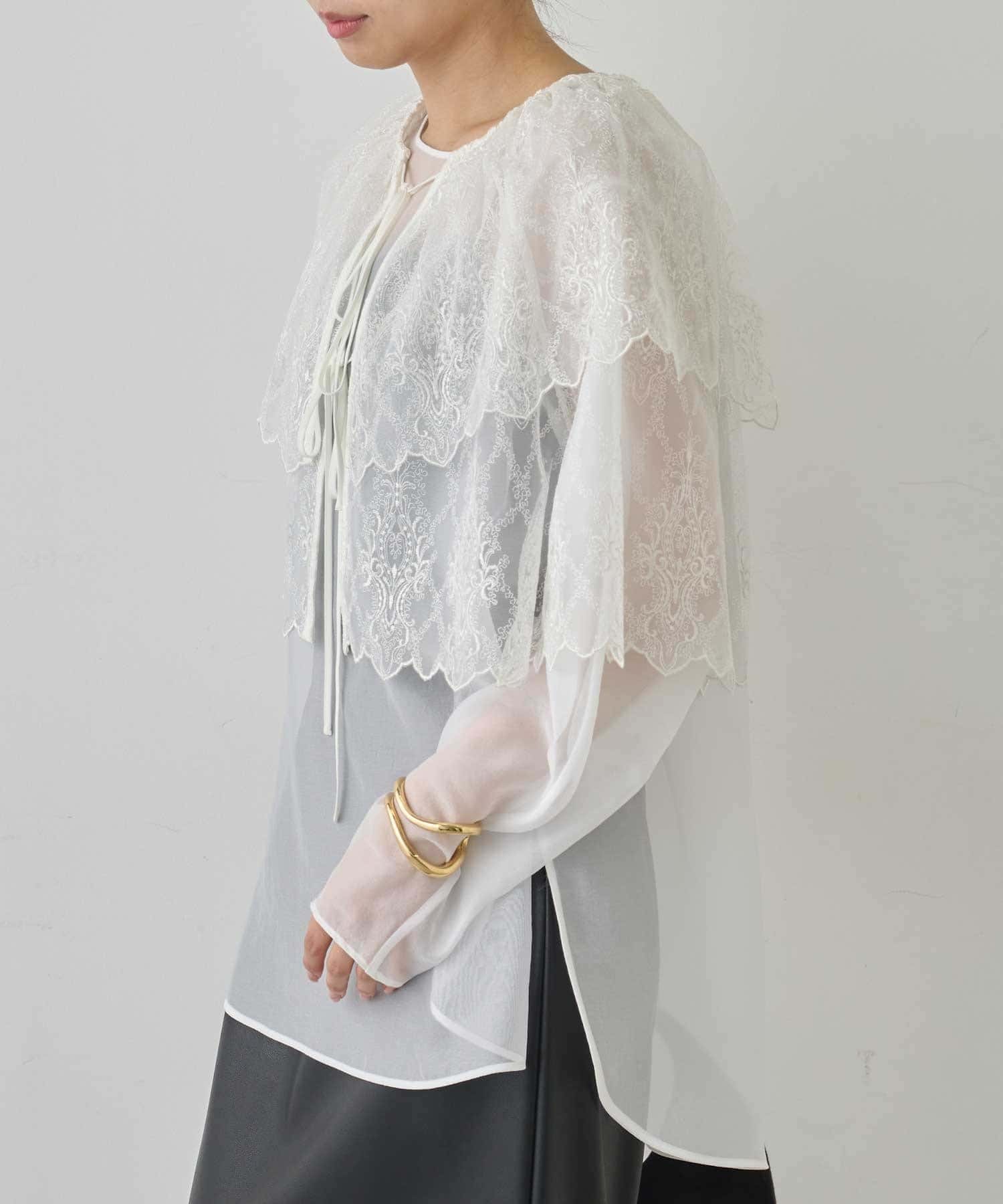 ●軽やかな素材感のレースは、スタイリングを華やかな印象に。