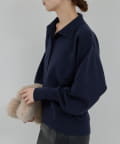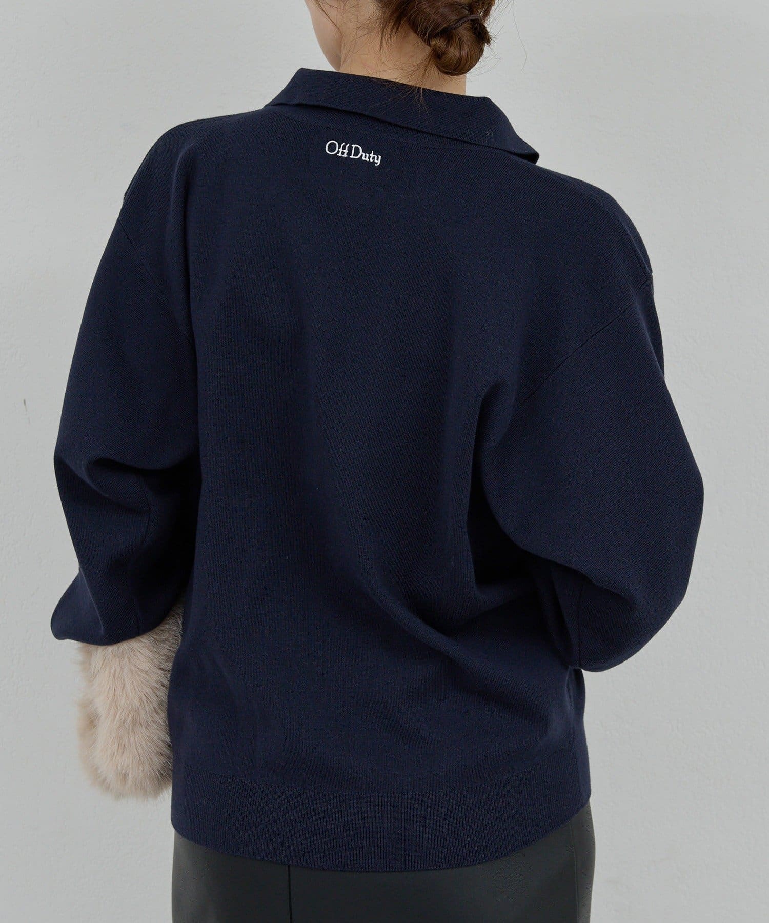 ●ネイビーカラーと首元の後ろに入ったさりげないロゴ刺繍が別注ポイント。