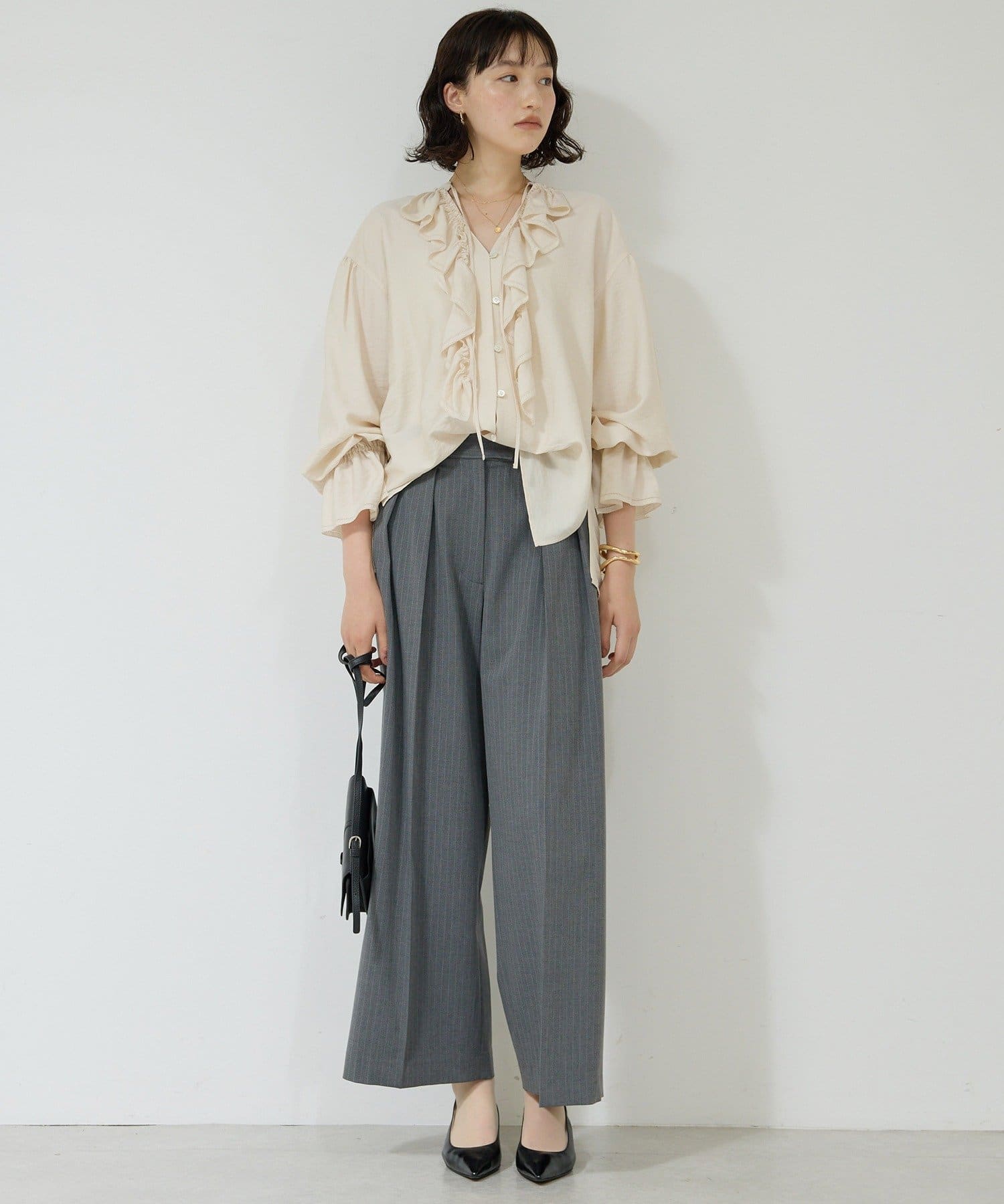 優しげなニュアンスをプラスするラッフルフリルブラウス