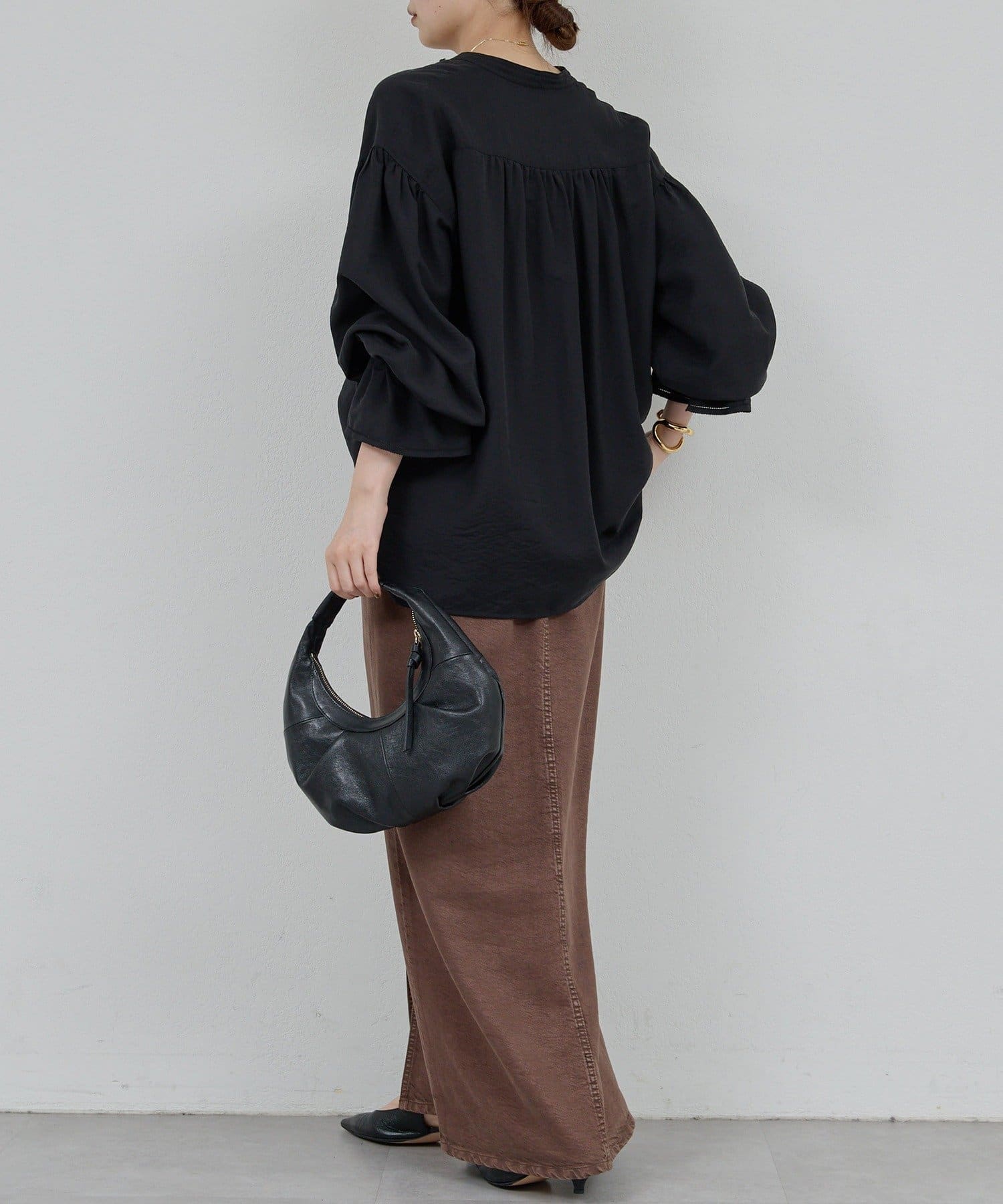 ●ふんわりとしたボリュームスリーブで腕まわりも安心。