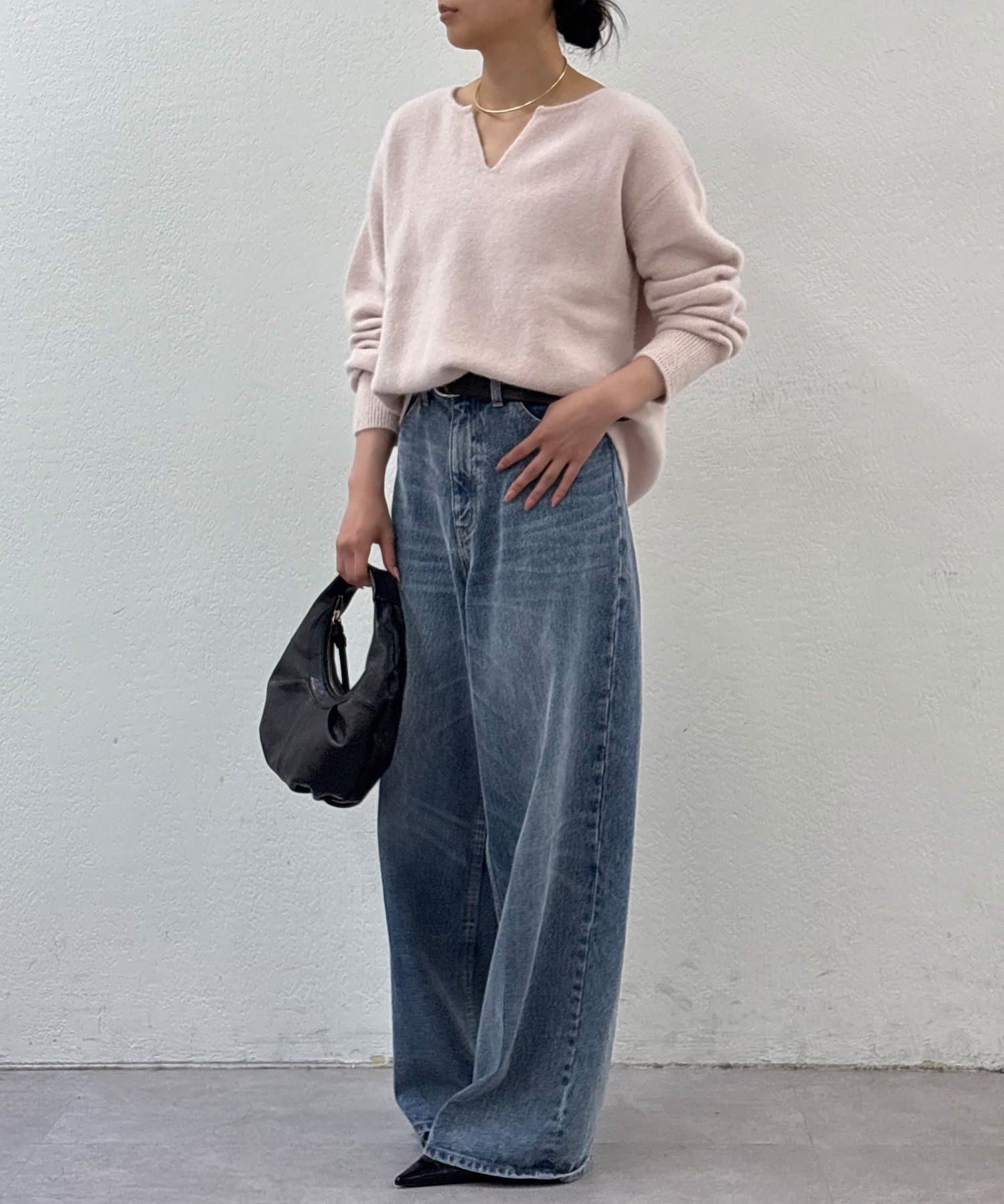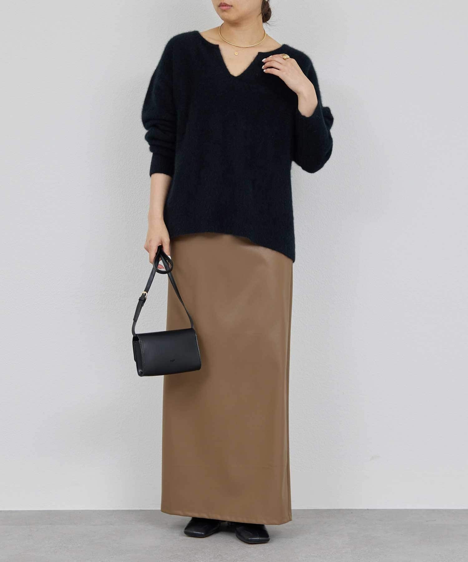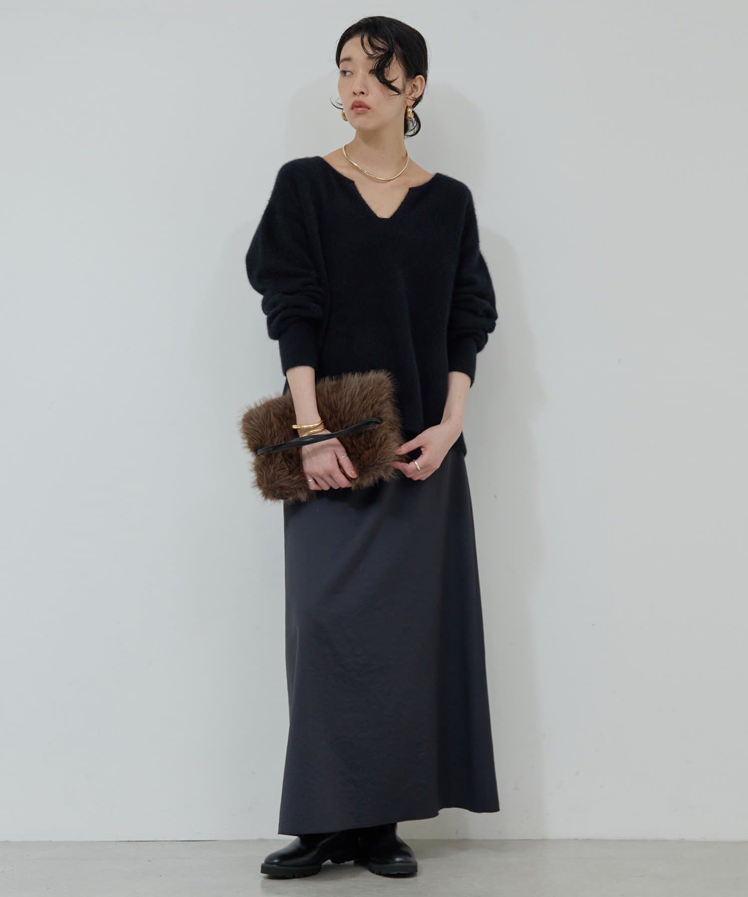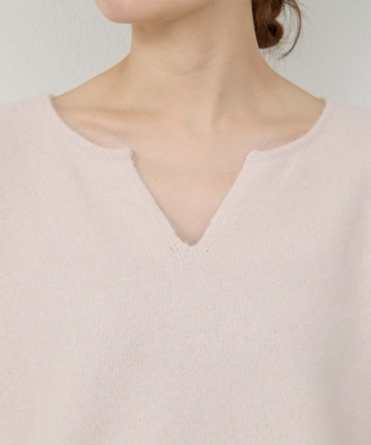 ●襟元は鎖骨が美しく見えるキーネック仕様。