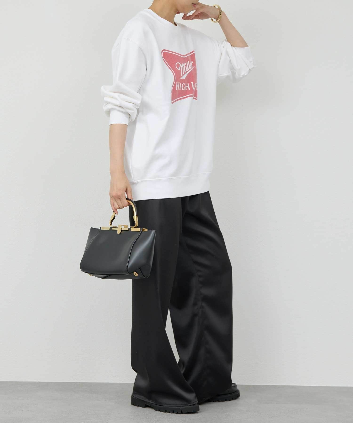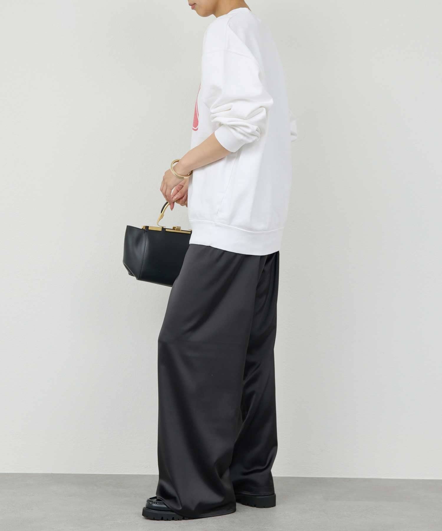 ●艶のあるボトム合わせで女性らしいバランスがおすすめ◎
