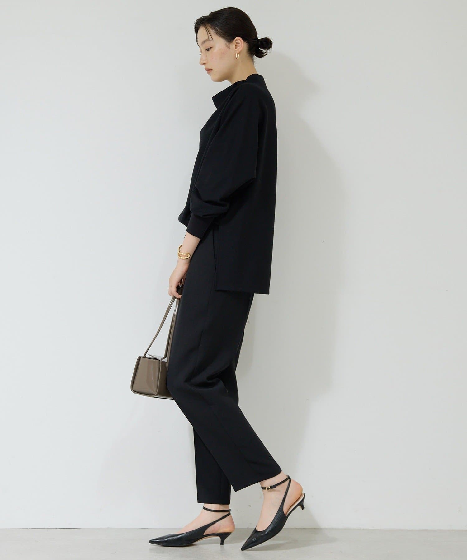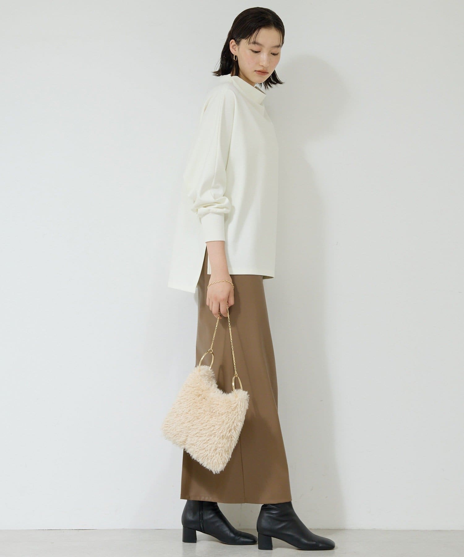 ●首元が綺麗に見えるボトルネックで、品のある大人スタイルに。
