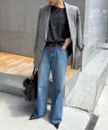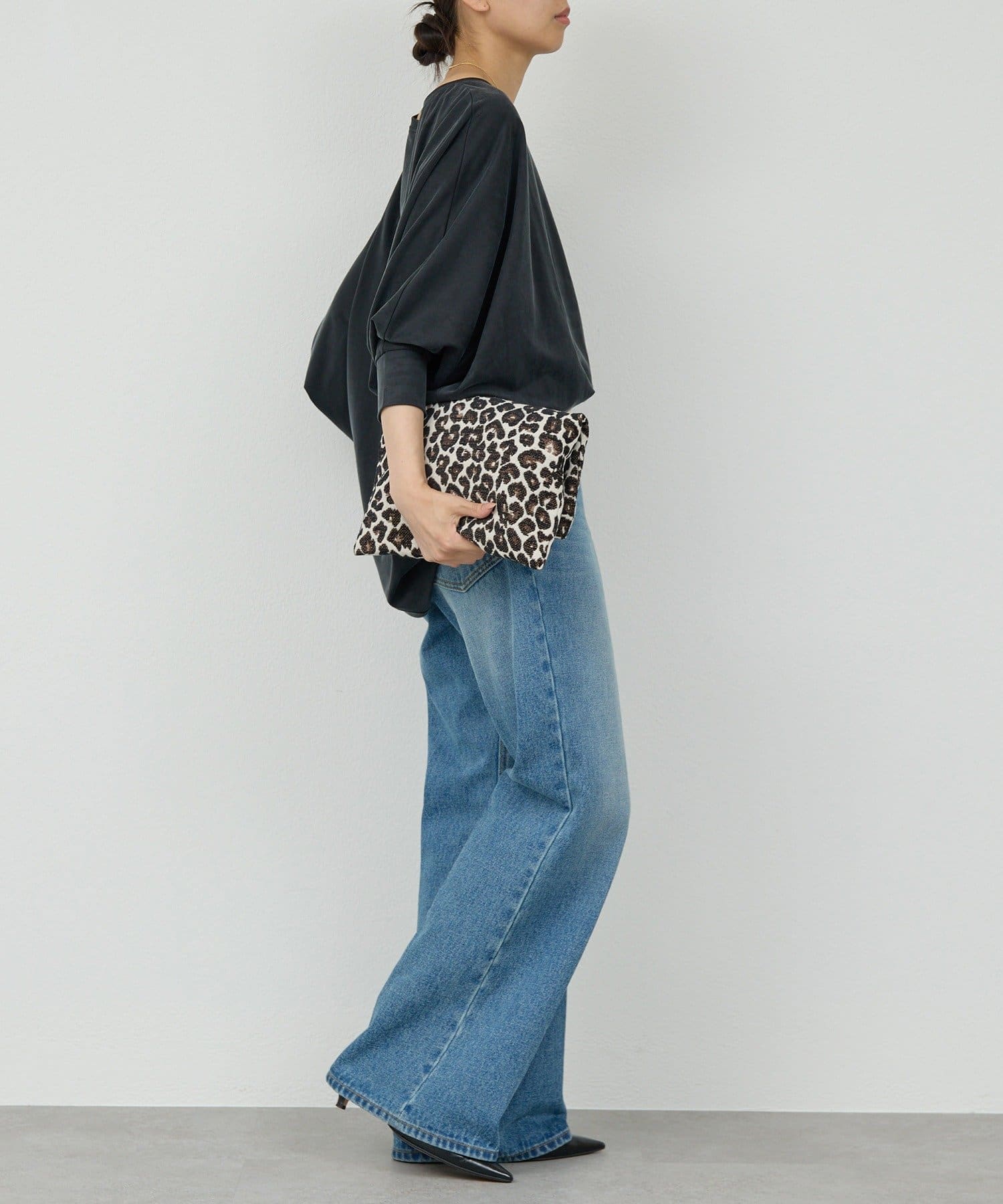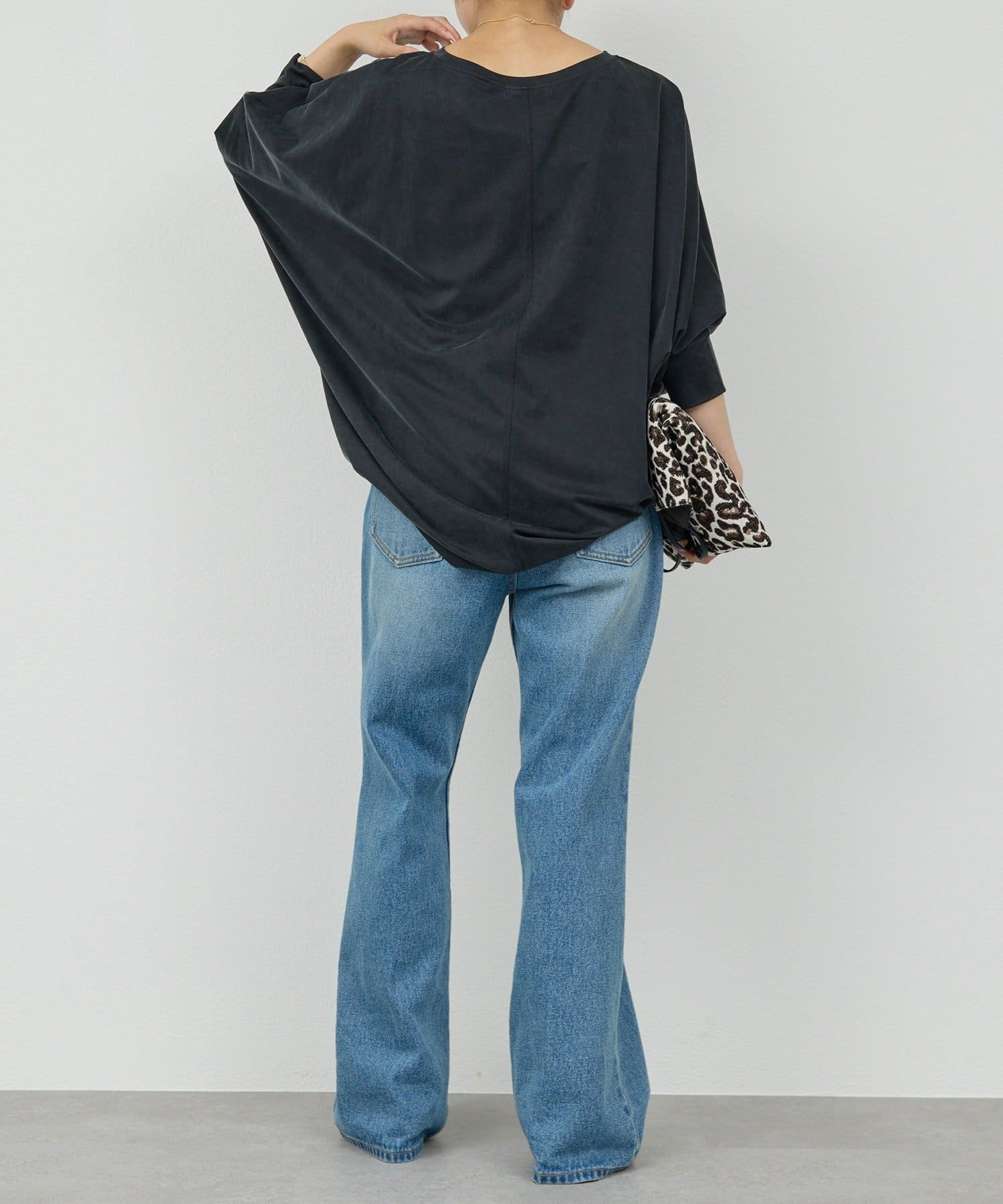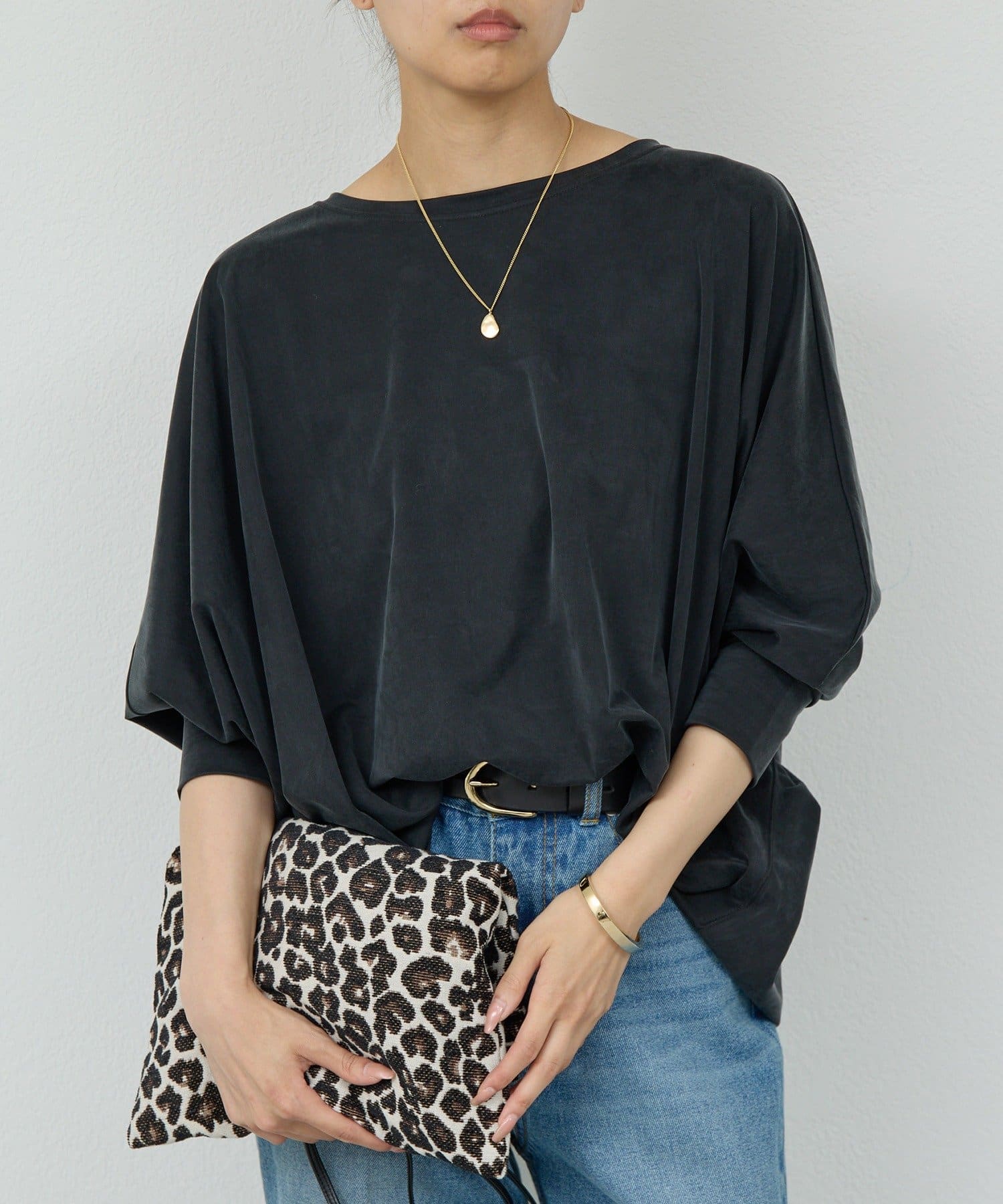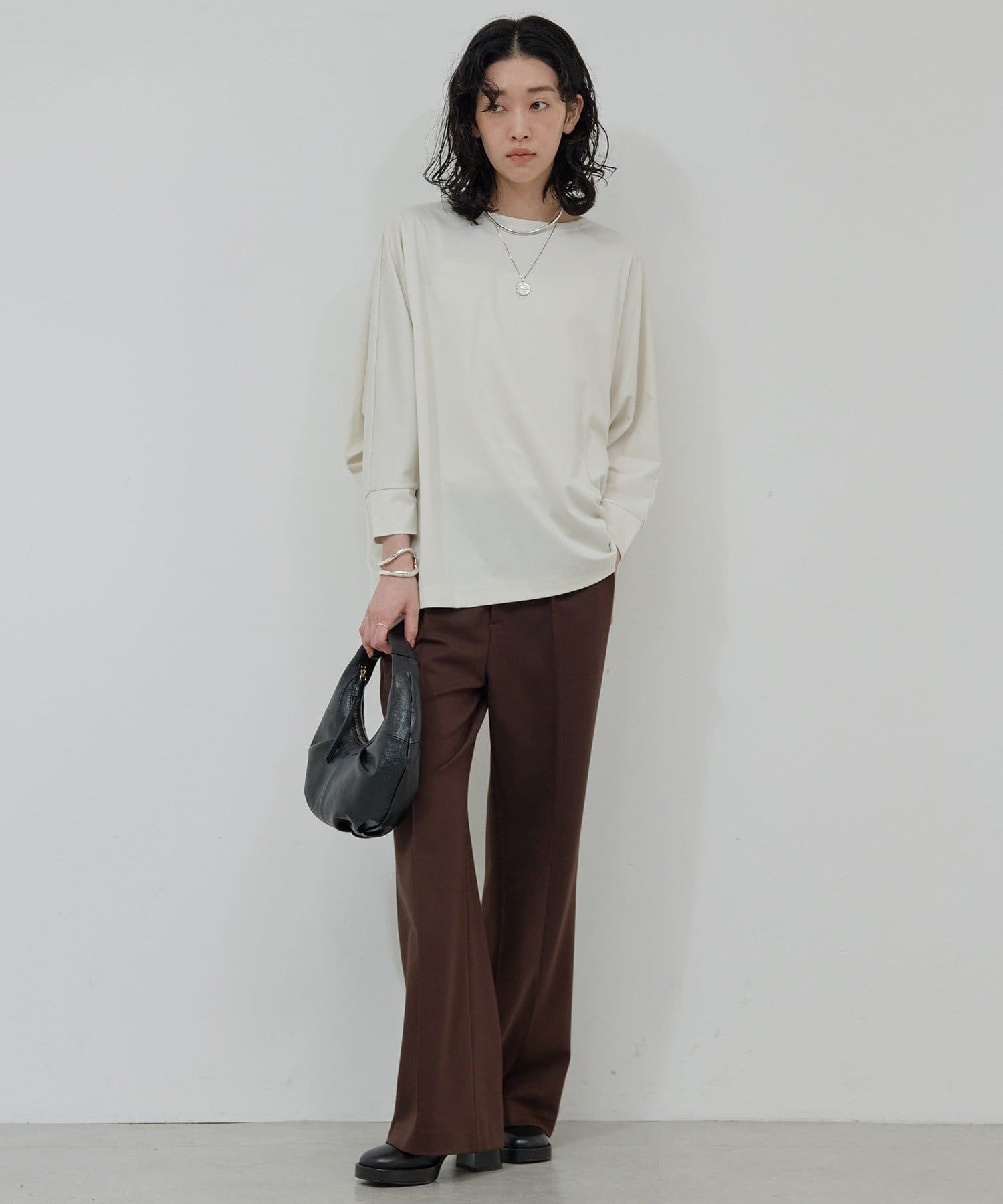 ●落ち感のある素材感で、ゆったりシルエットながらもすっきりとした印象に。