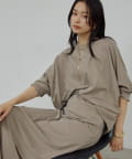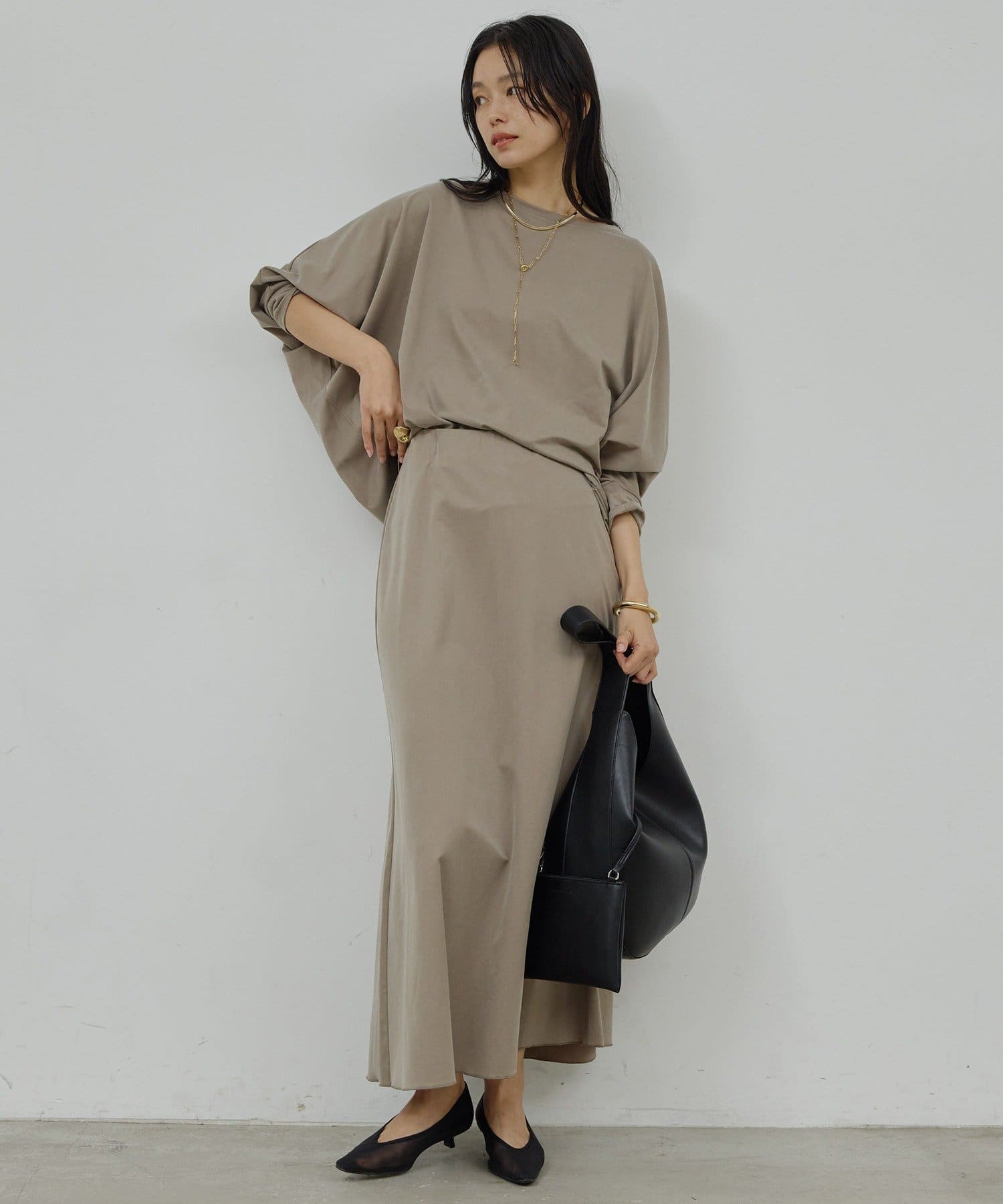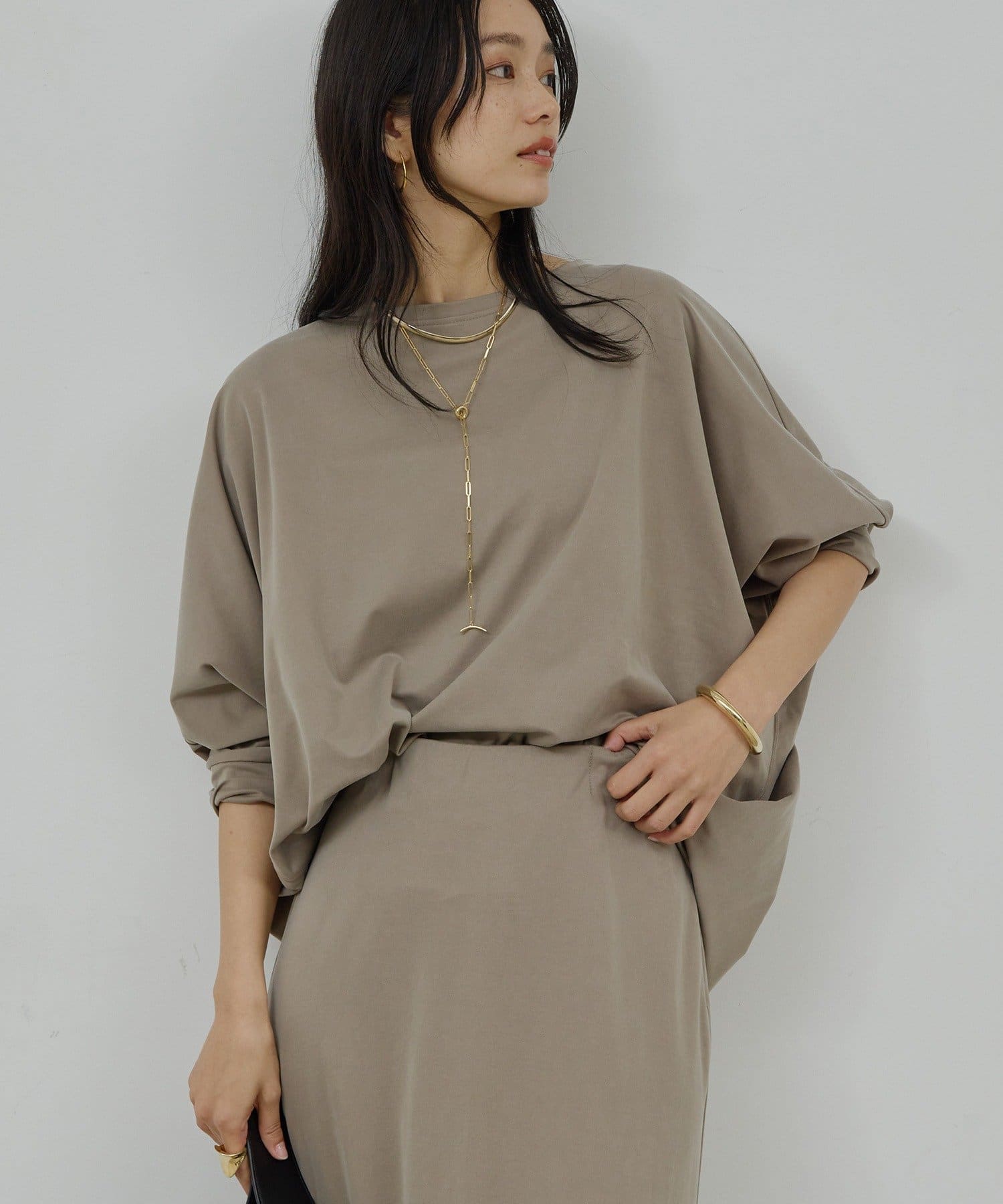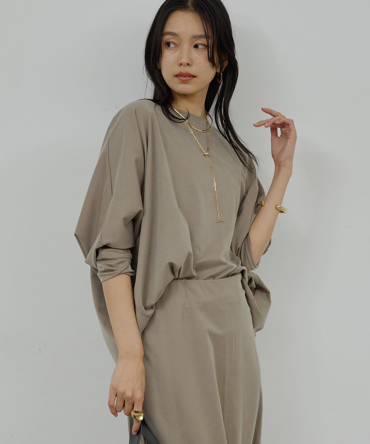 ●ゆったりシルエットながらも、落ち感のある素材ですっきりとした印象に。