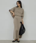 ●同素材のスカートと合わせたセットアップスタイルもおすすめ。